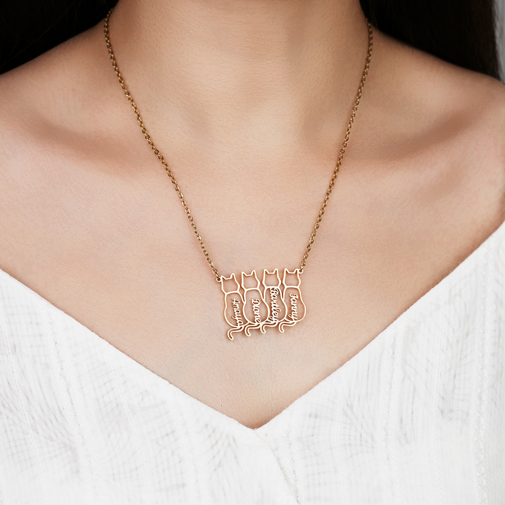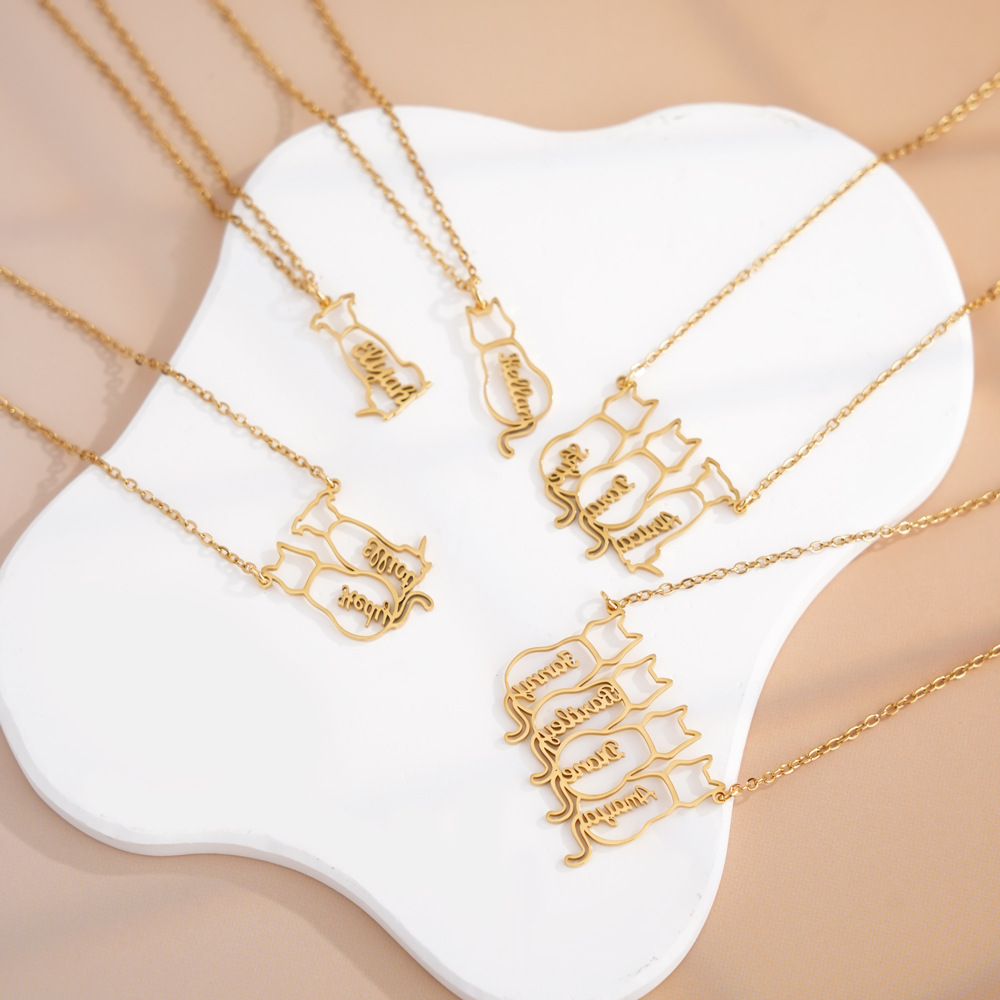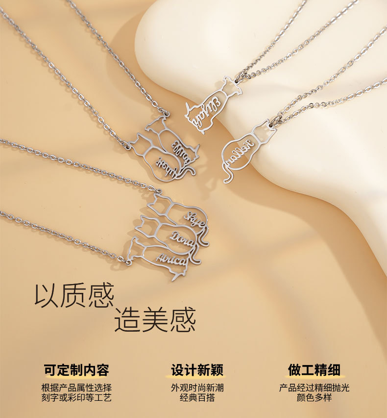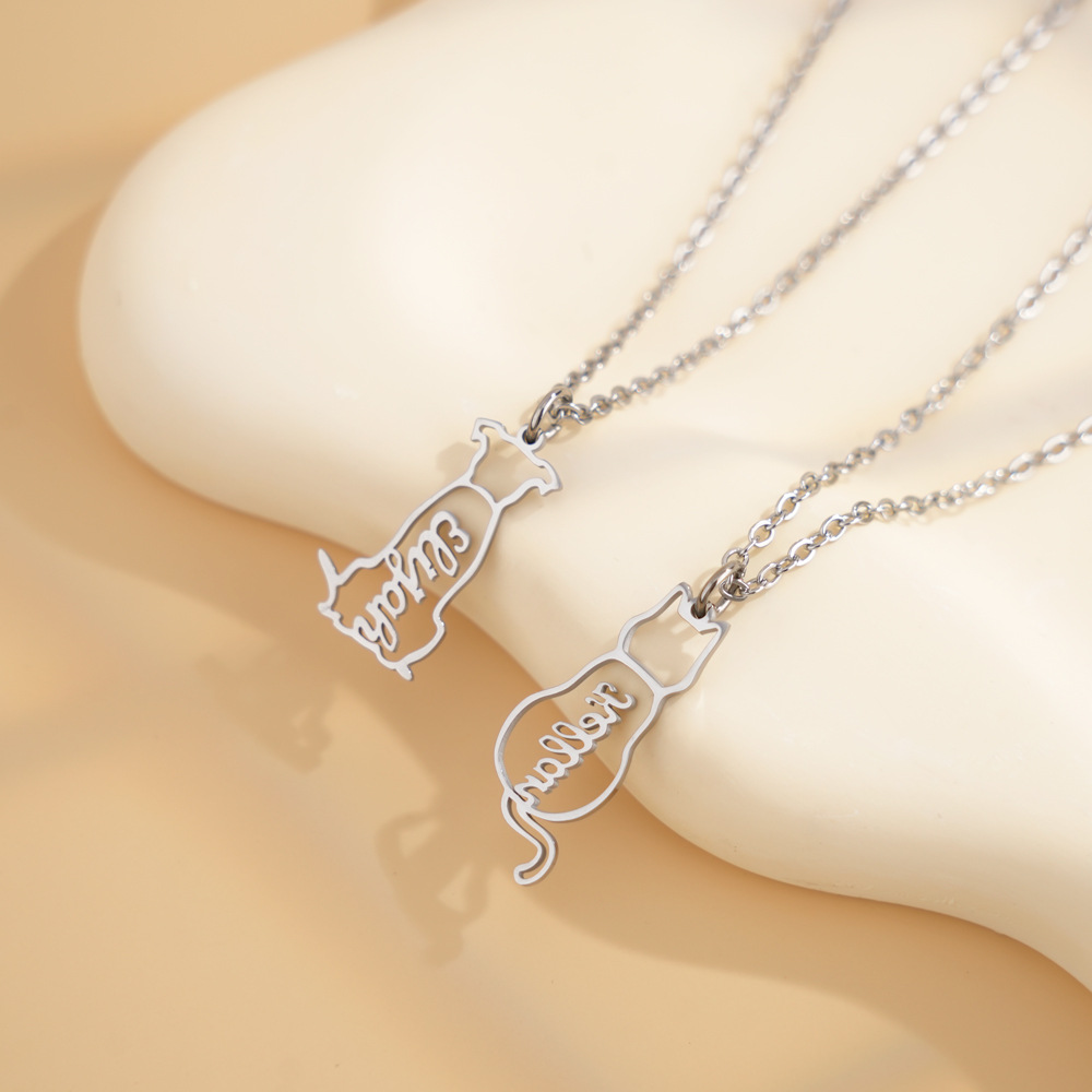 AliExpress 새로운 맞춤형 고양이와 개 애완 동물 이름 목걸이 국경 간 스테인레스 스틸 컷 중공 쇄골 체인 쥬얼리