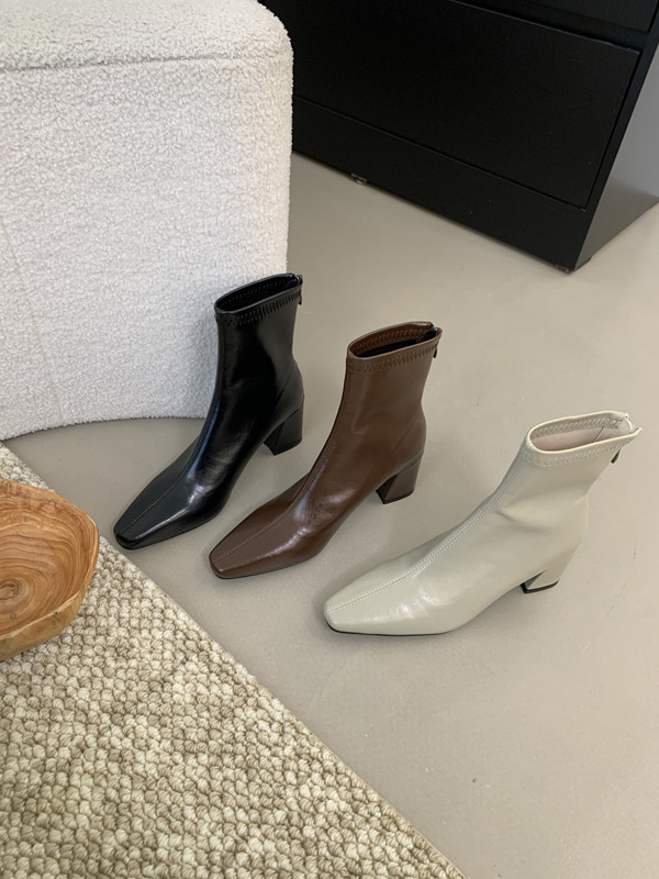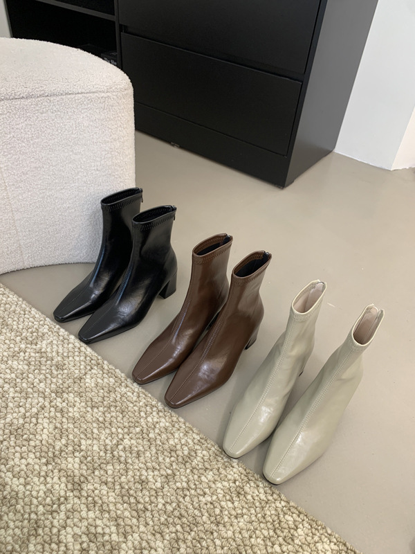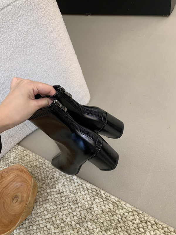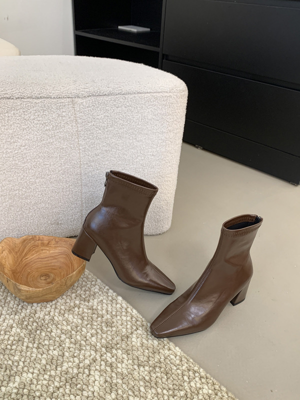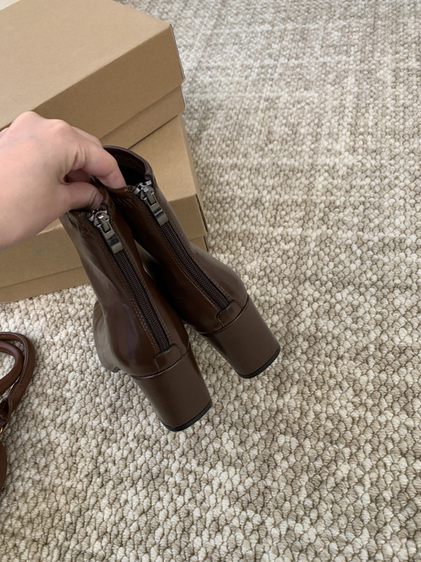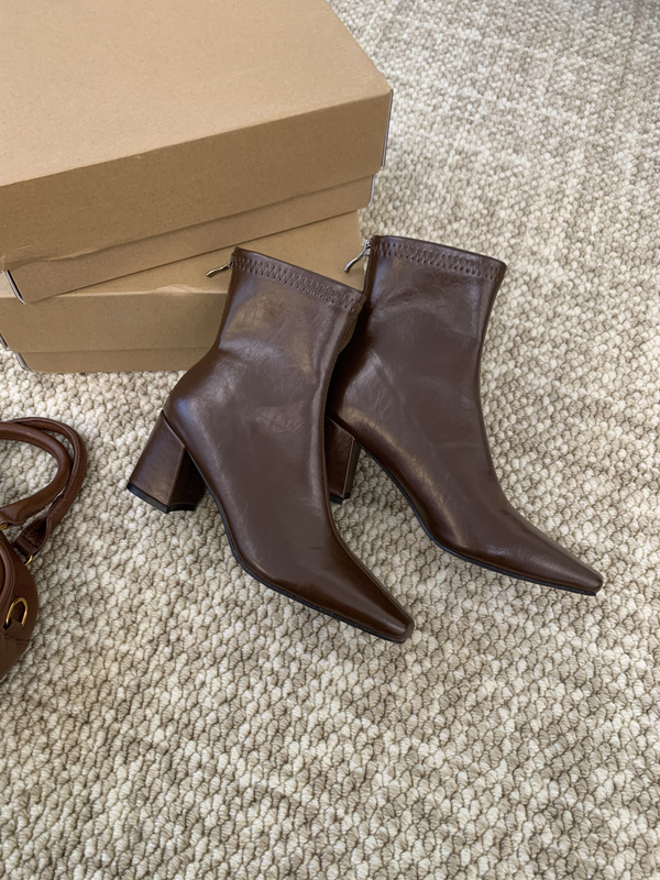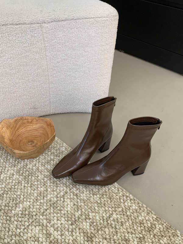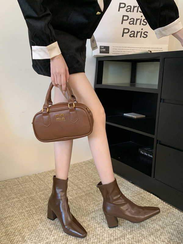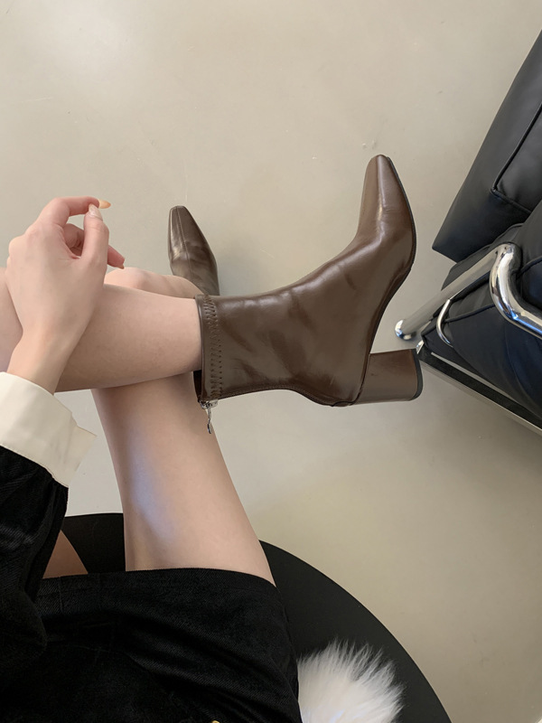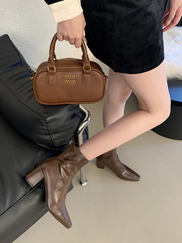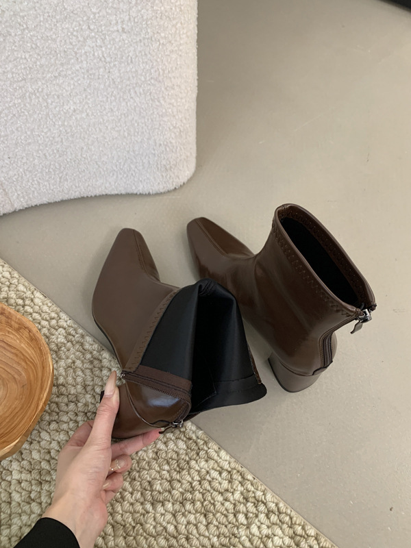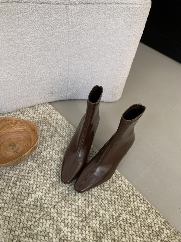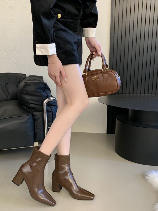 하이힐 스퀘어 헤드 다크 브라운 마틴 부츠 여성 신발 2024 스커트 프랑스 작은 알몸 부츠 짧은 부츠