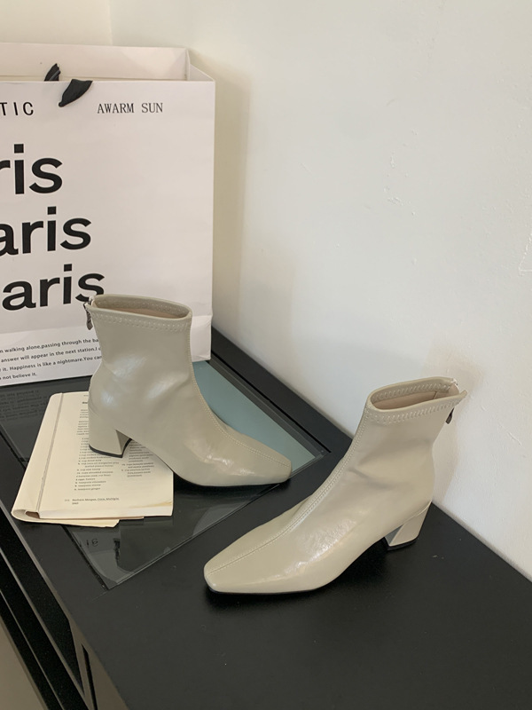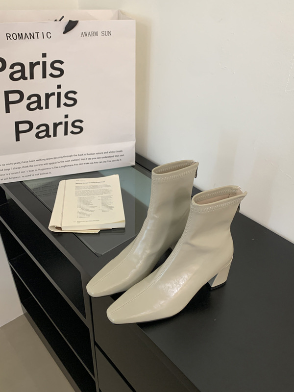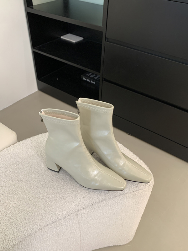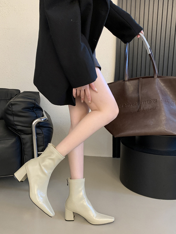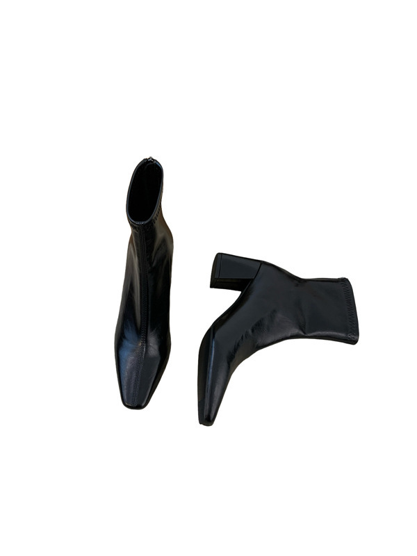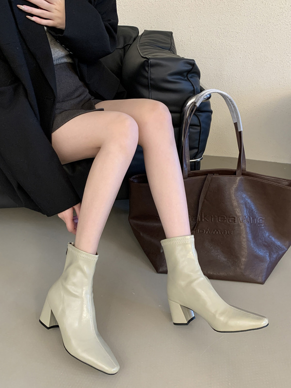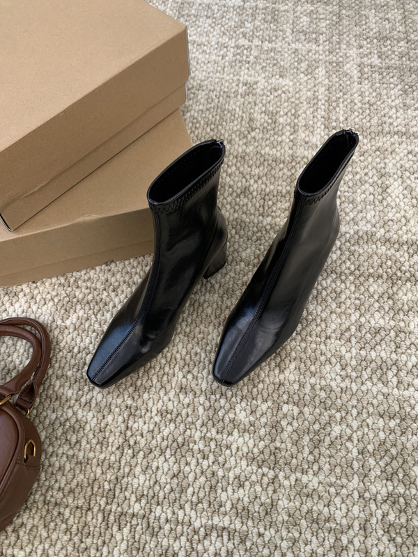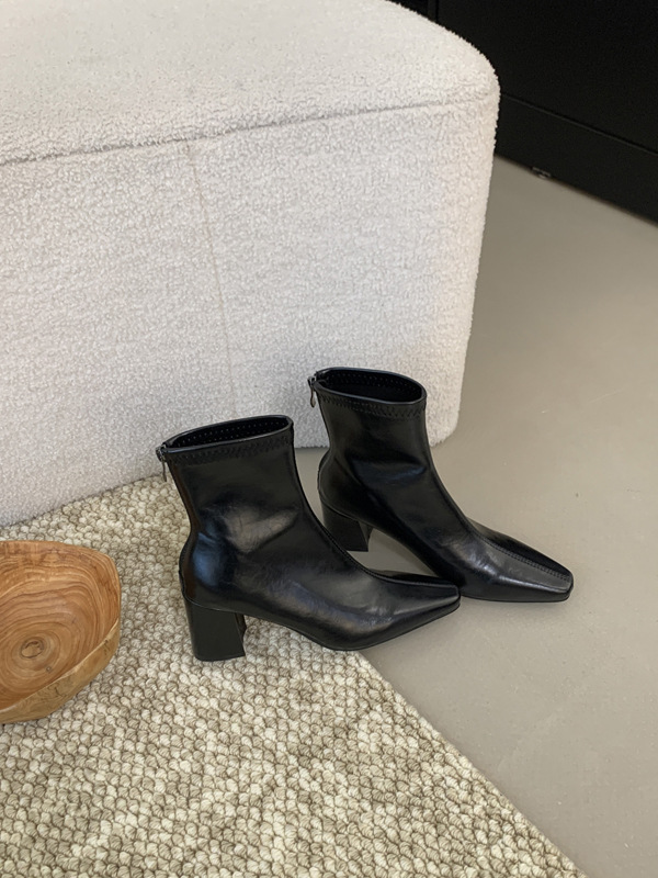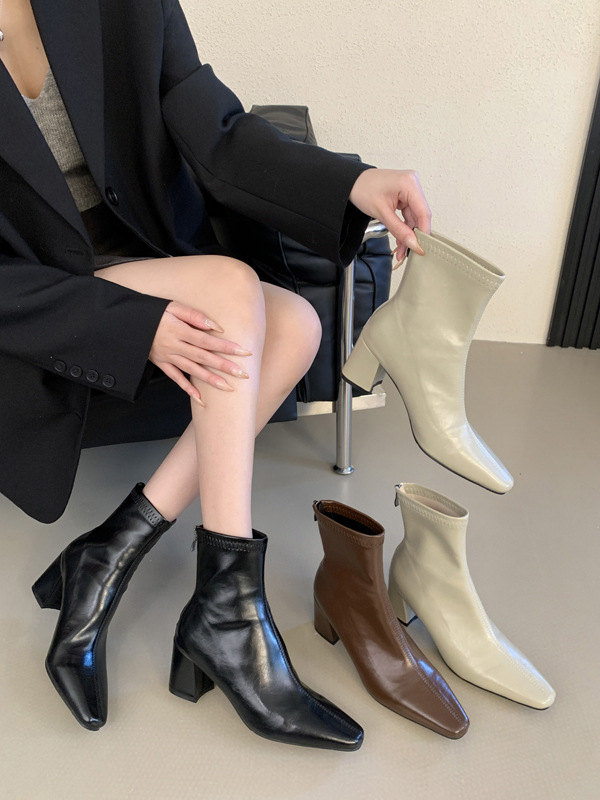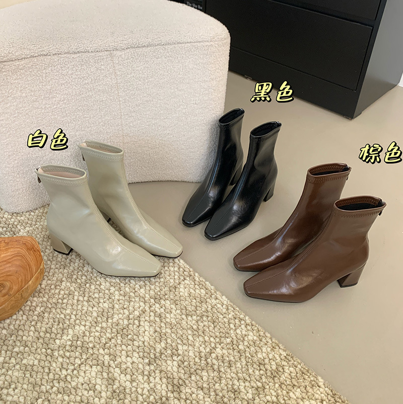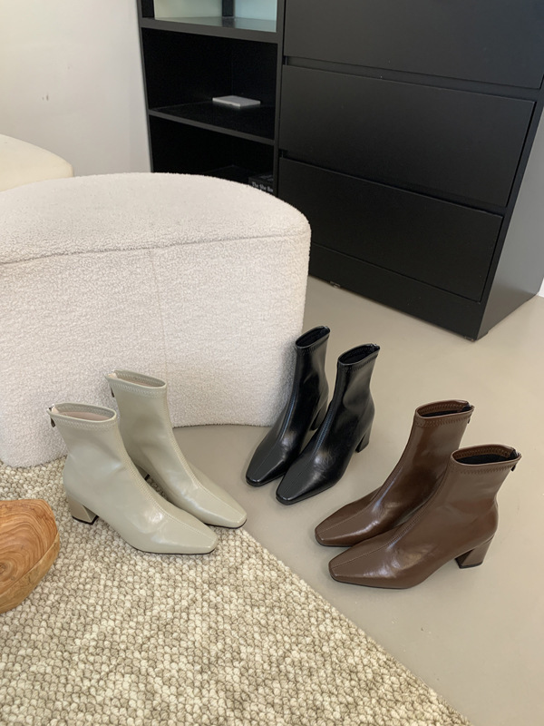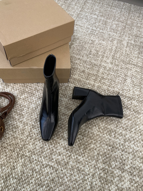 하이힐 스퀘어 헤드 다크 브라운 마틴 부츠 여성 신발 2024 스커트 프랑스 작은 알몸 부츠 짧은 부츠