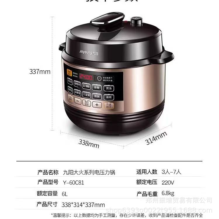 Jiuyang 전기 압력 밥솥 Y-60C81 가정용 다기능 6 리터 대용량 이중 담낭 압력 밥솥 쌀밥솥에 적합
