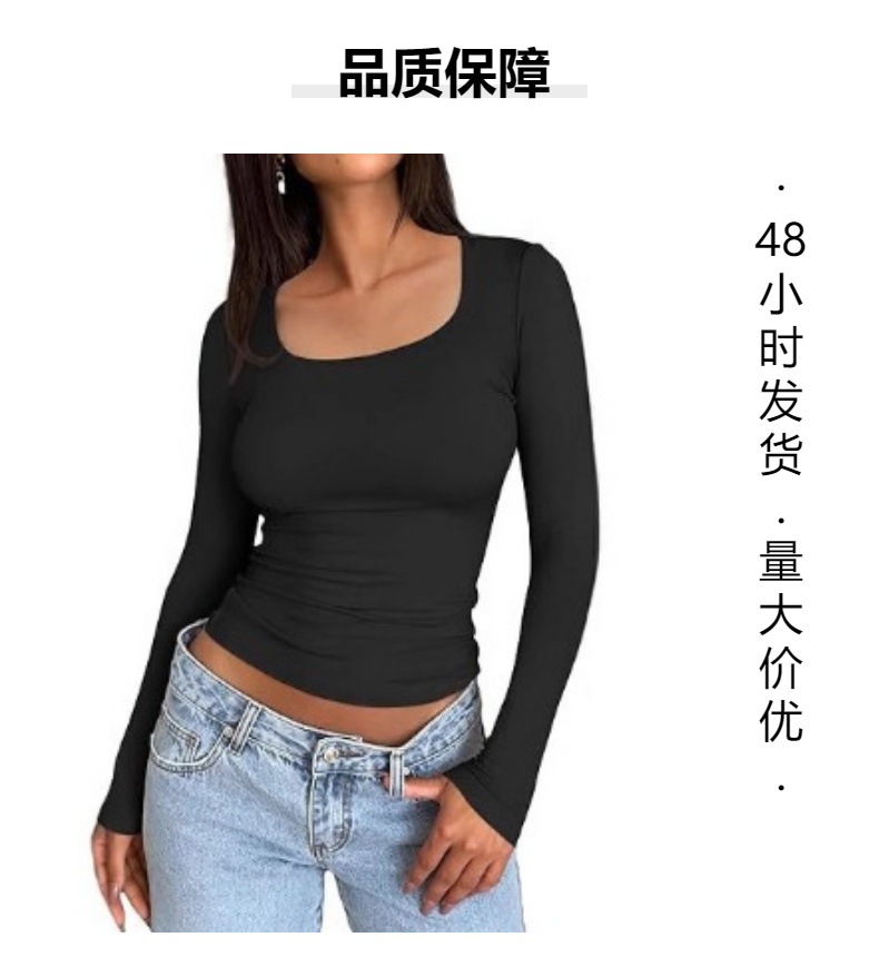 2025년 봄 신상 여성용 U넥 풀오버 긴팔 슬림핏 탑 여성 셔츠