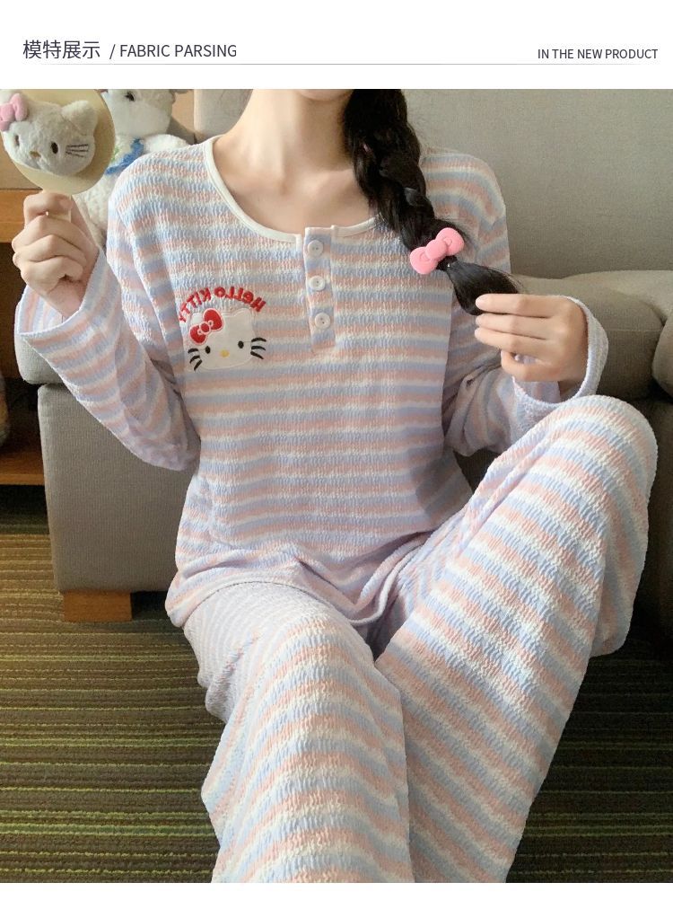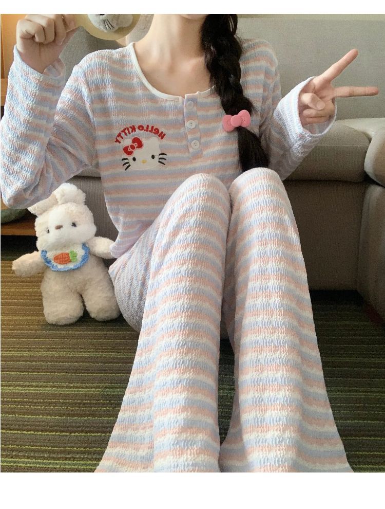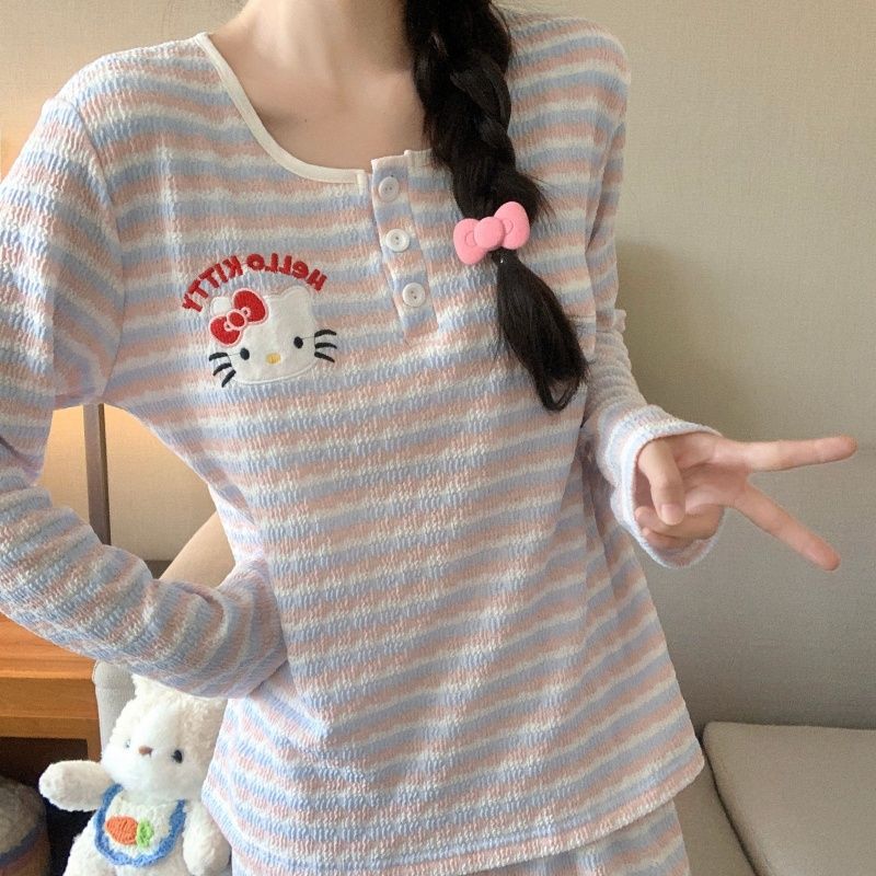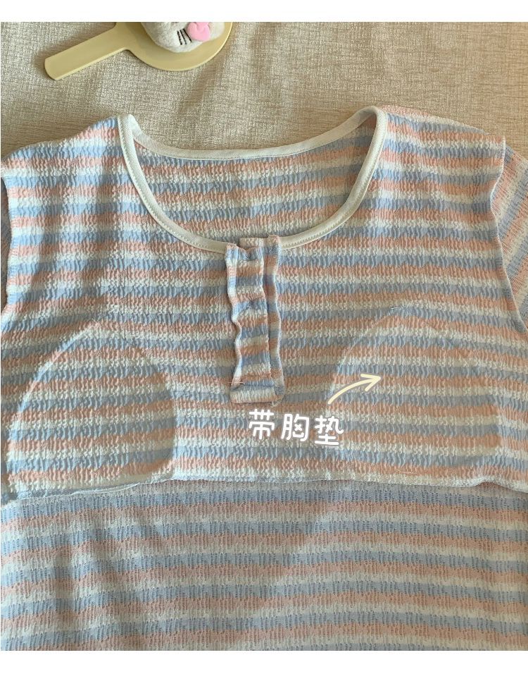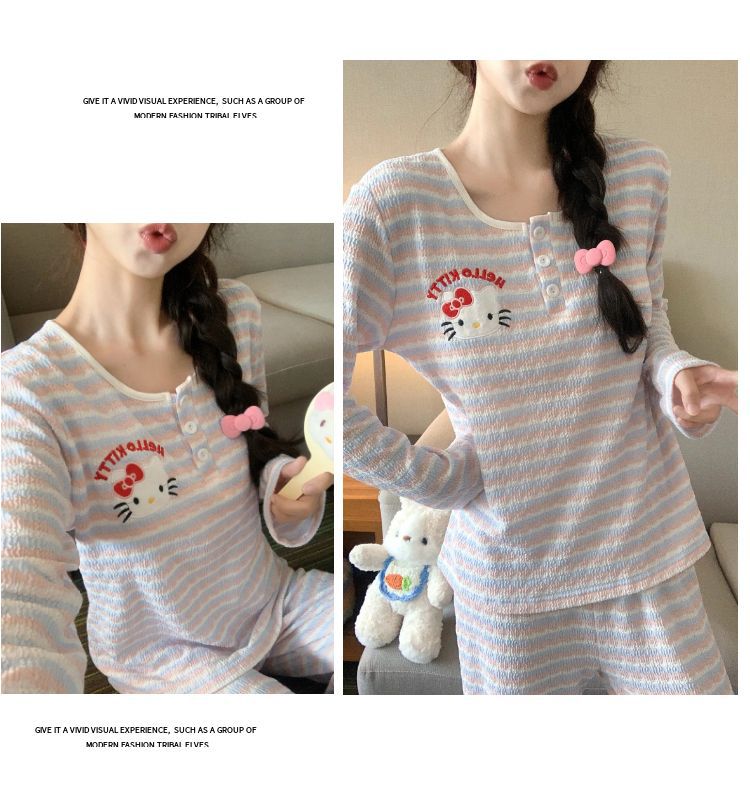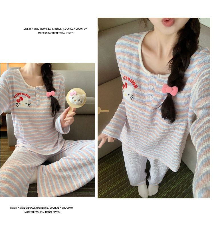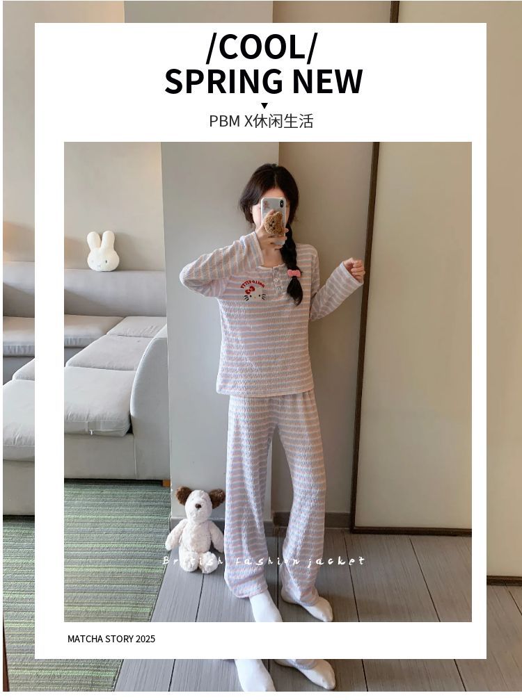 2025년 신상 컬러 직조 스트라이프 잠옷 여성용 봄 가을 긴팔 심플 캐주얼 고정형 가슴 패드 홈웨어 세트