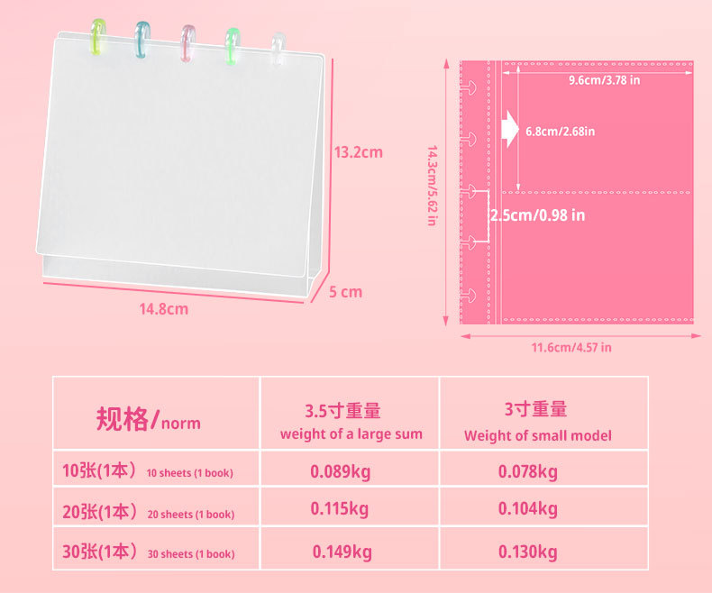 3.5inch 버섯구멍 탁상 달력 사진 앨범 10장