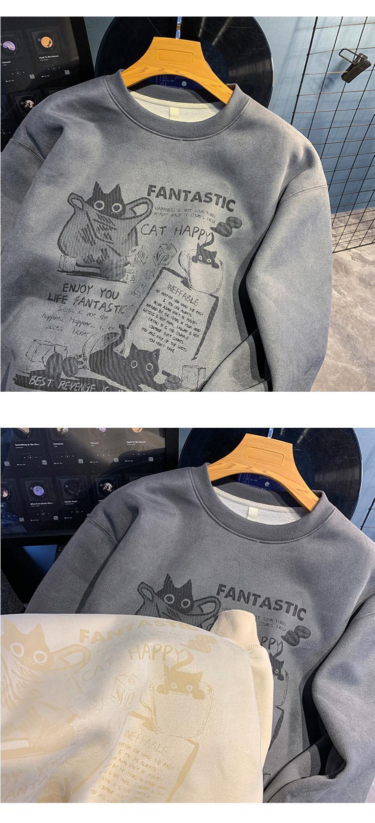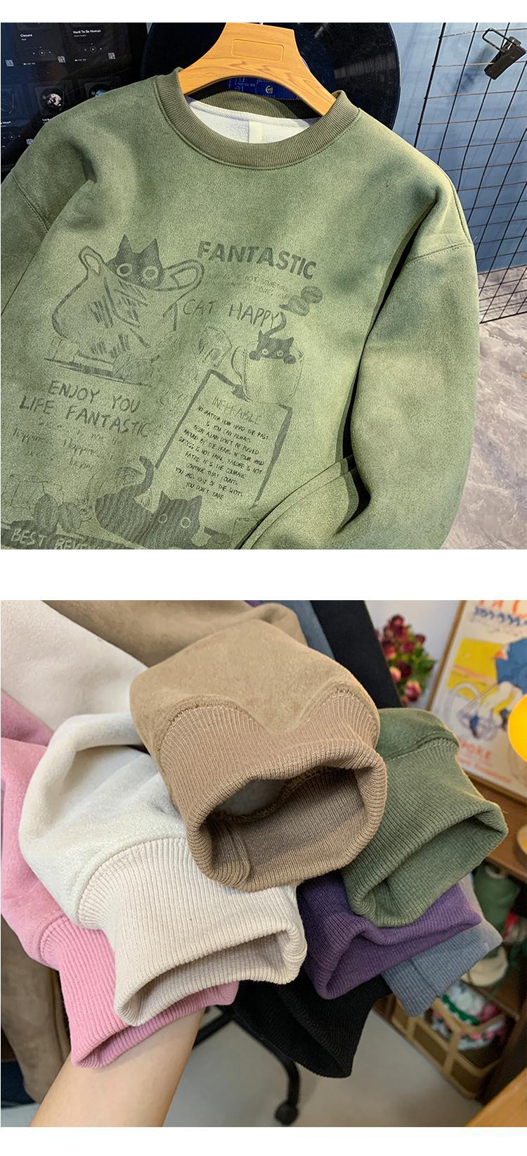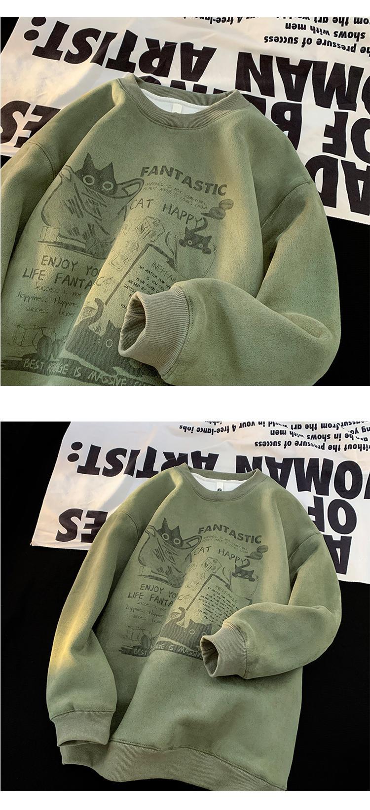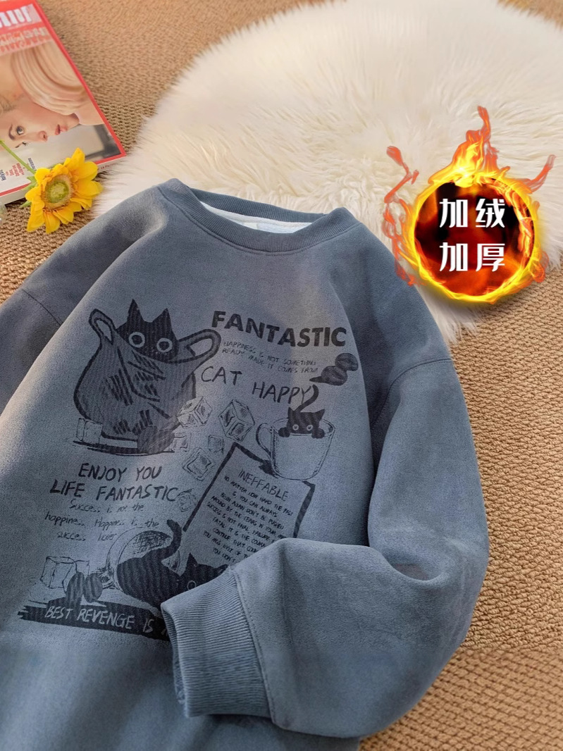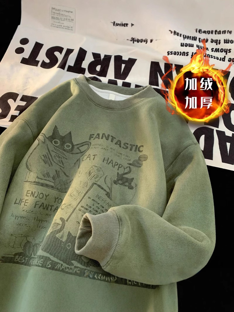 2024 가을과 겨울 기모 크루 넥 스웨트 셔츠 남자의 가을과 겨울 느슨한 패션 브랜드 긴 소매 티셔츠 남성 미국 패션 브랜드 웨이