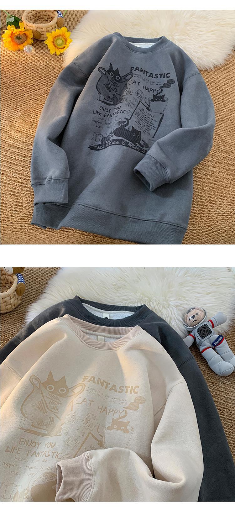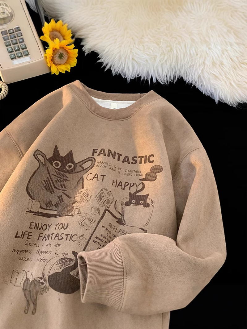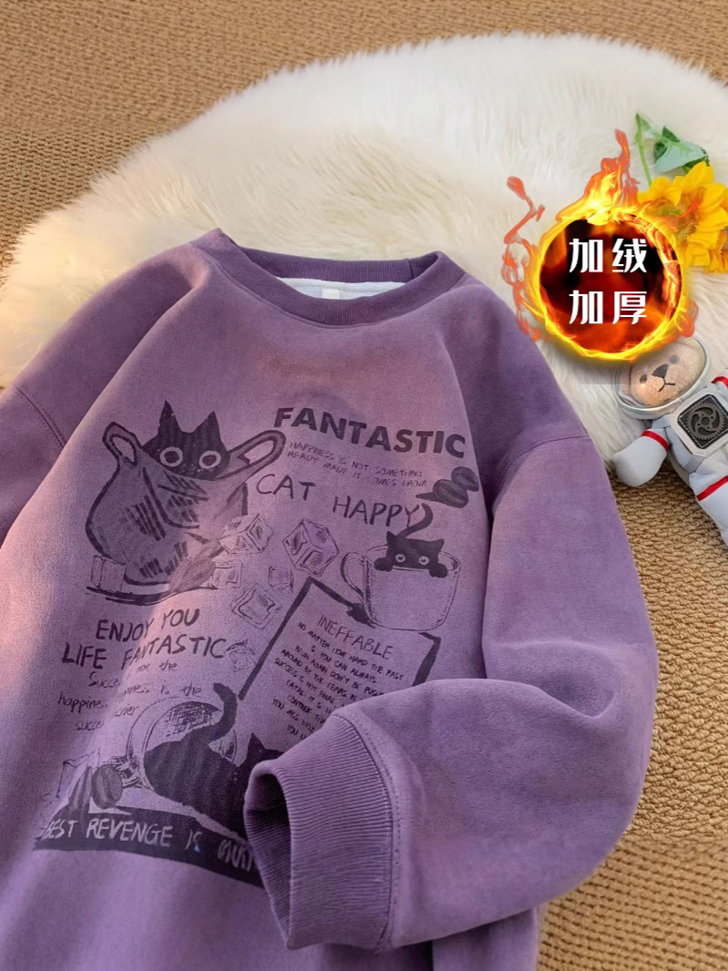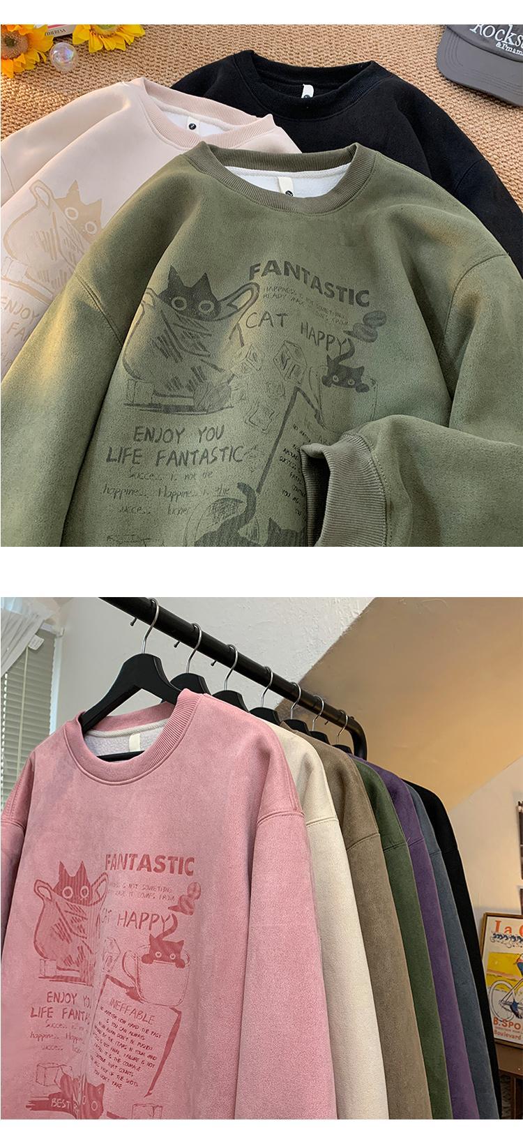 2024 가을과 겨울 기모 크루 넥 스웨트 셔츠 남자의 가을과 겨울 느슨한 패션 브랜드 긴 소매 티셔츠 남성 미국 패션 브랜드 웨이