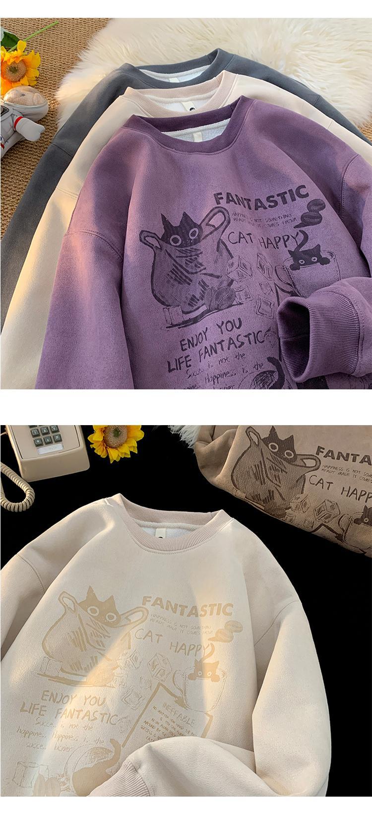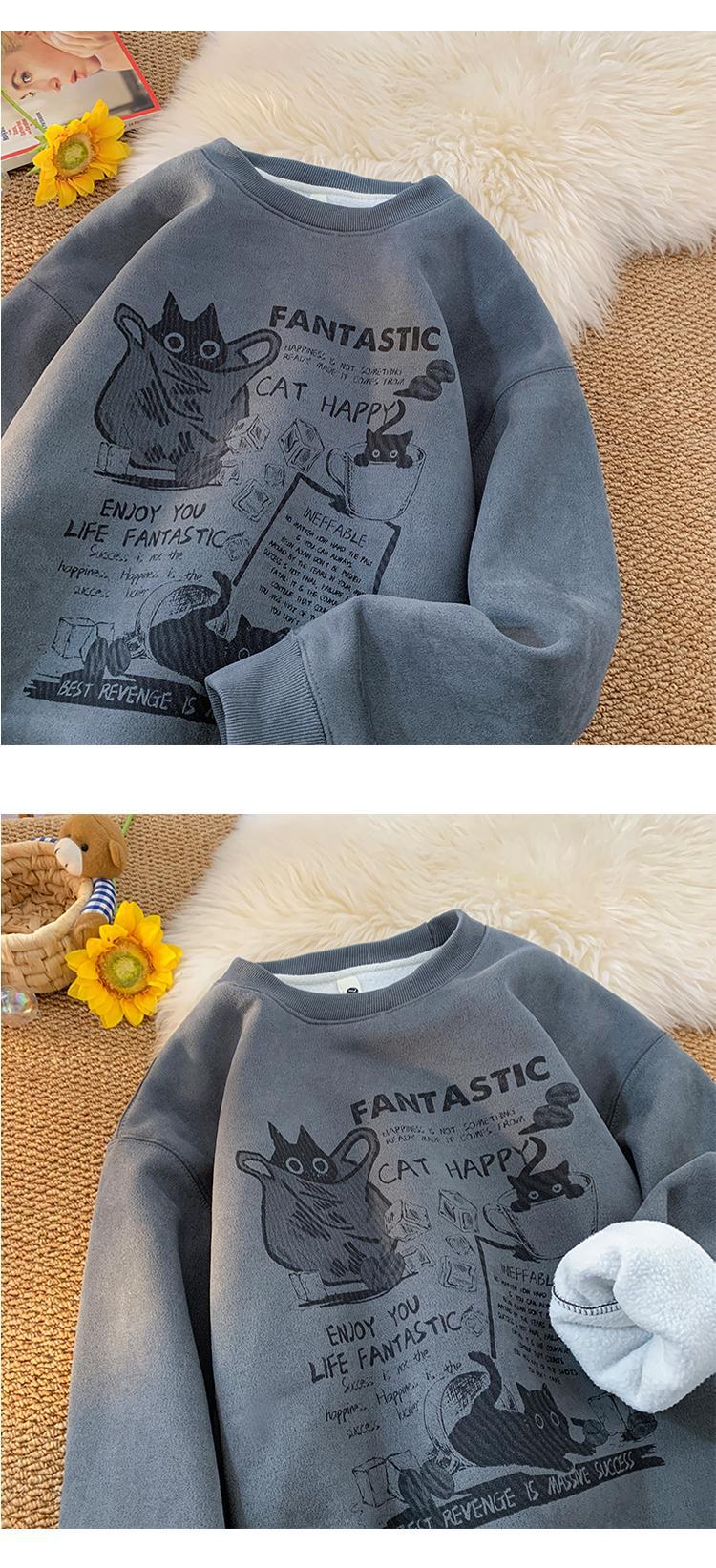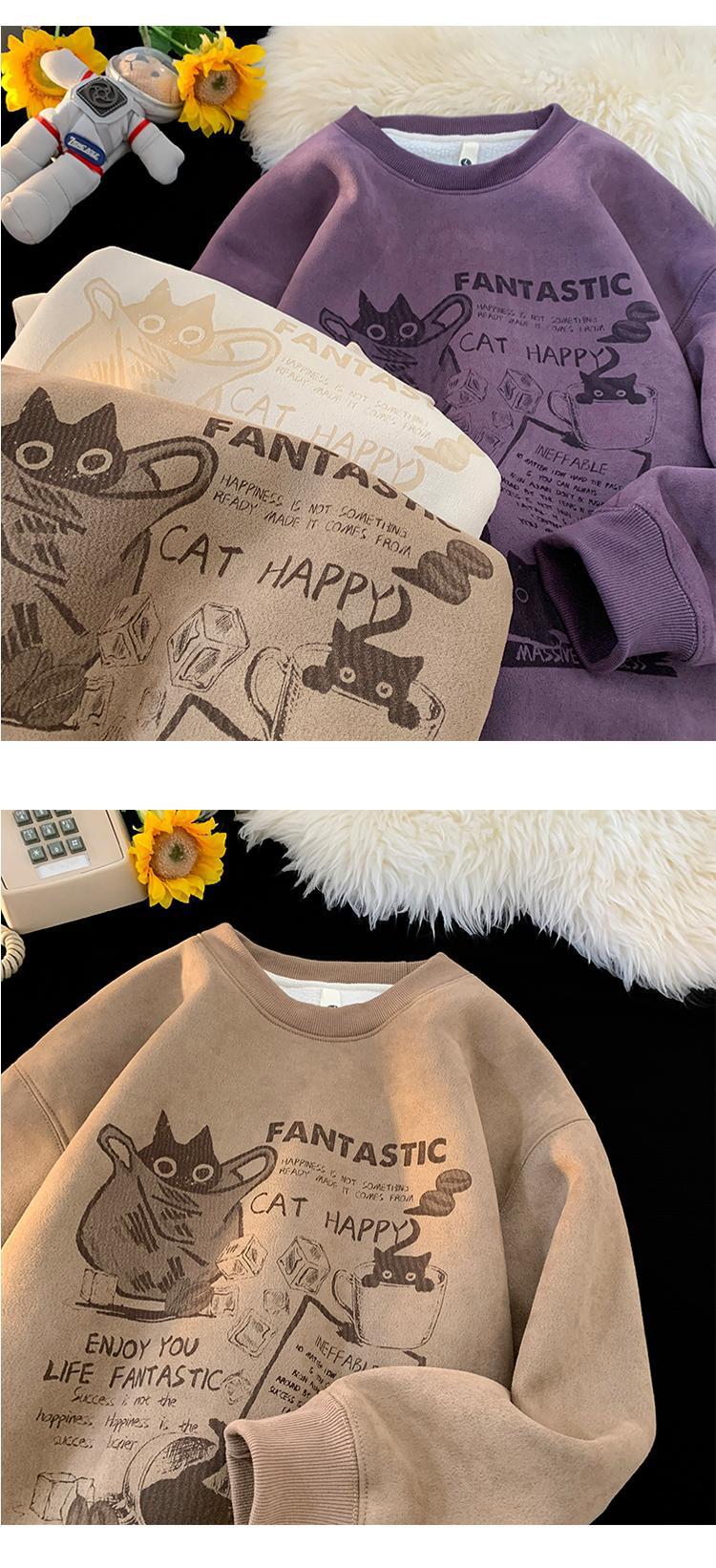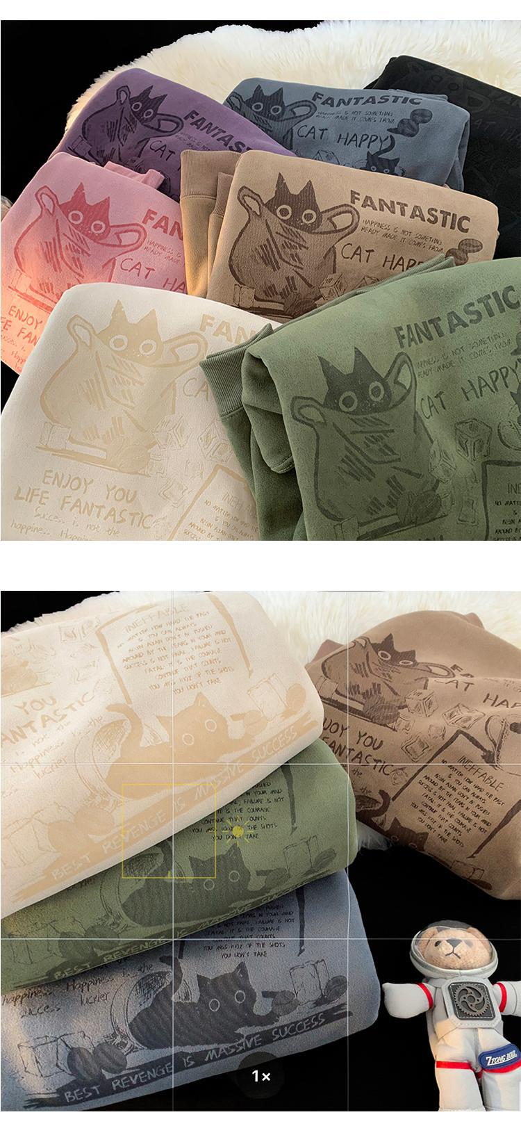 2024 가을과 겨울 기모 크루 넥 스웨트 셔츠 남자의 가을과 겨울 느슨한 패션 브랜드 긴 소매 티셔츠 남성 미국 패션 브랜드 웨이