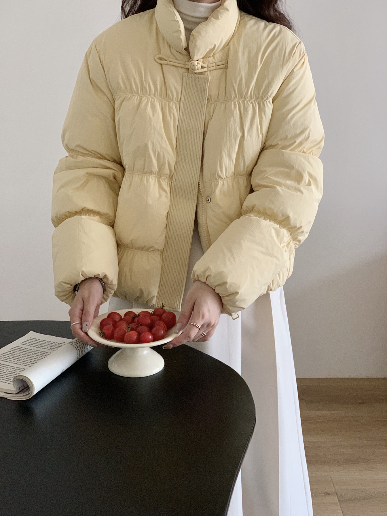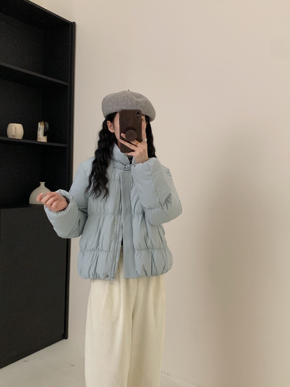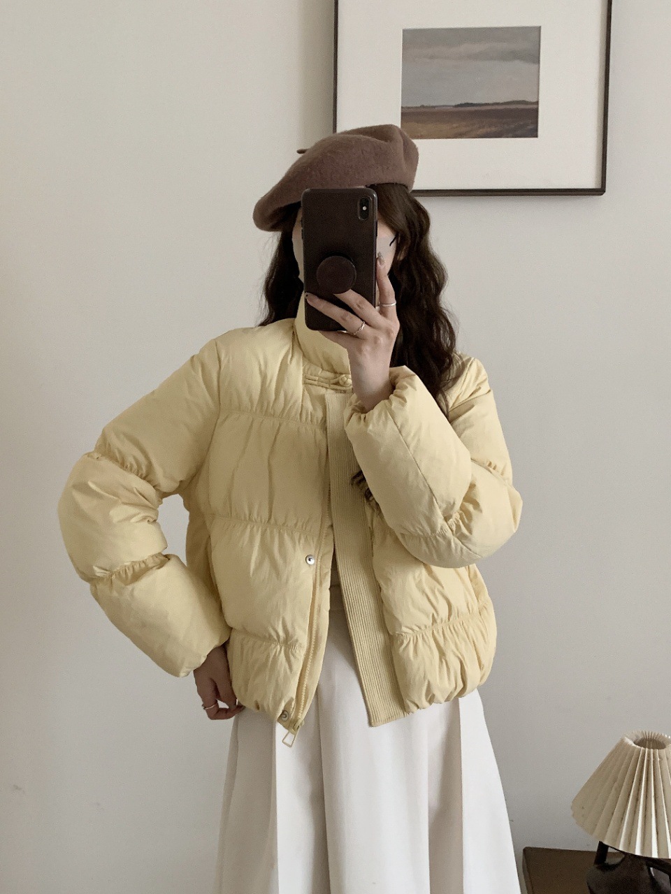 2024 새로운 짧은 스탠드 칼라 빵 재킷 다운 재킷 여성의 작은 흰 오리 다운 따뜻한 빵 의류 겨울 코트