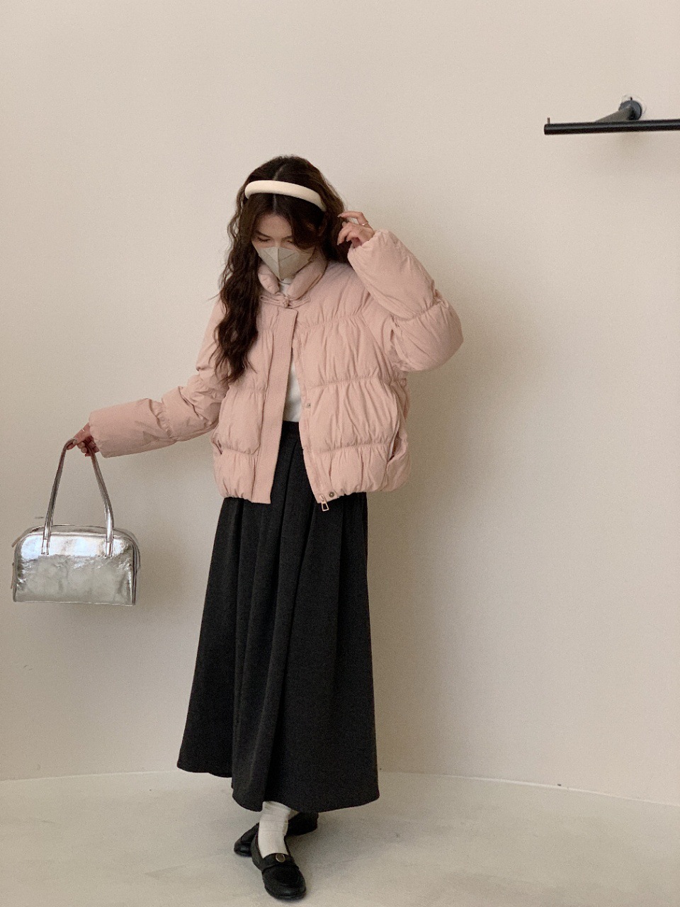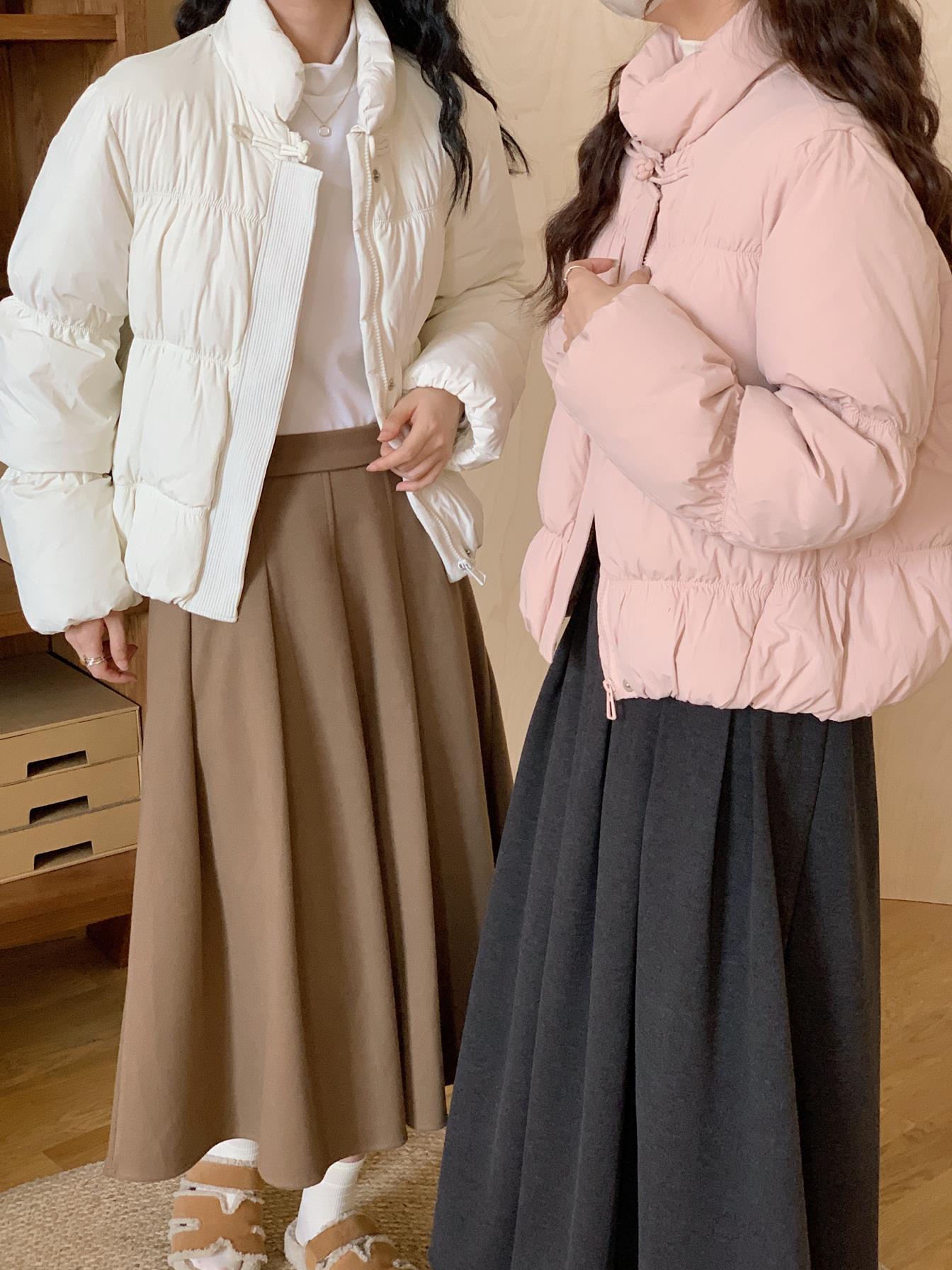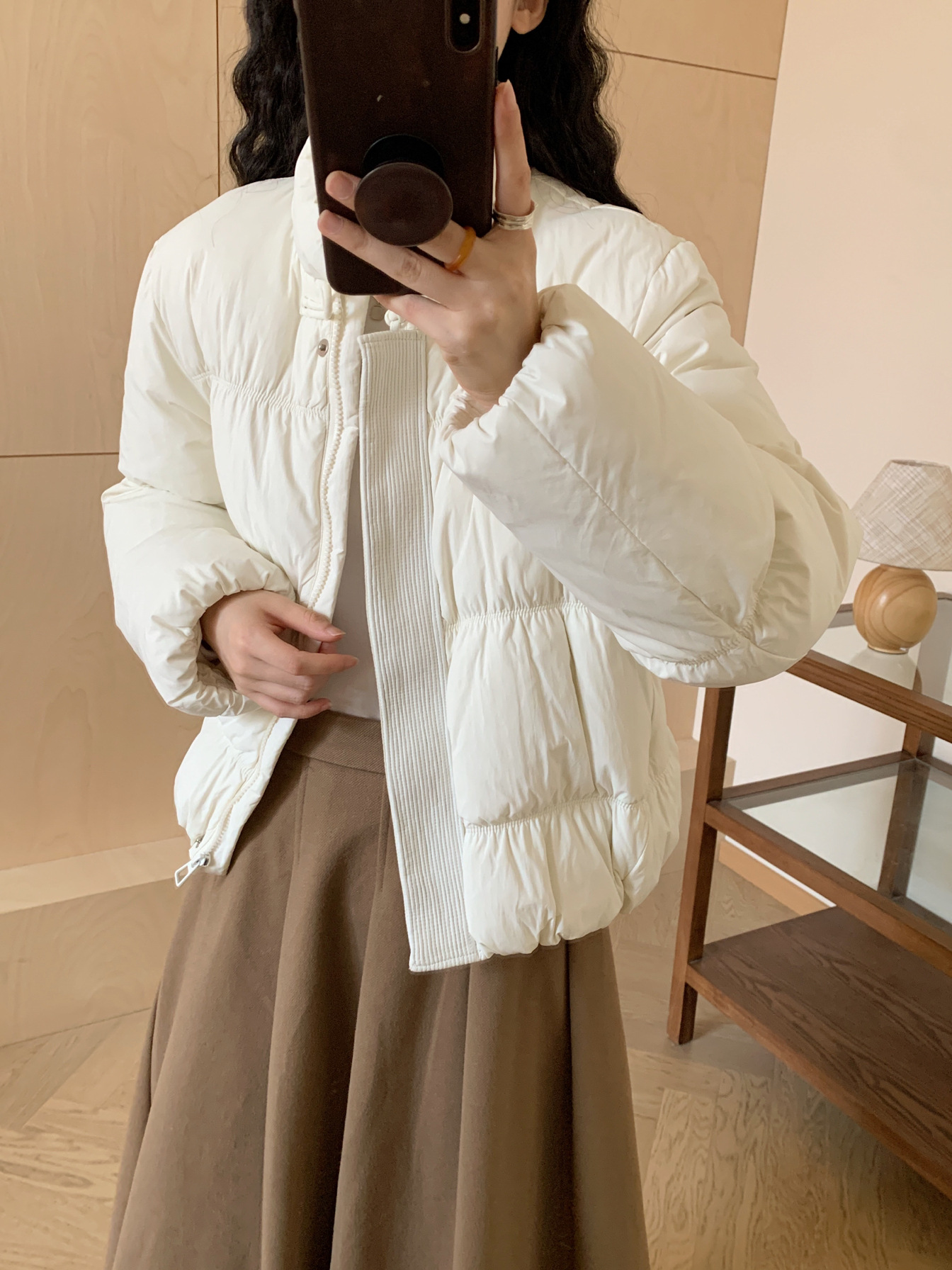 2024 새로운 짧은 스탠드 칼라 빵 재킷 다운 재킷 여성의 작은 흰 오리 다운 따뜻한 빵 의류 겨울 코트