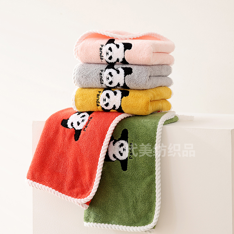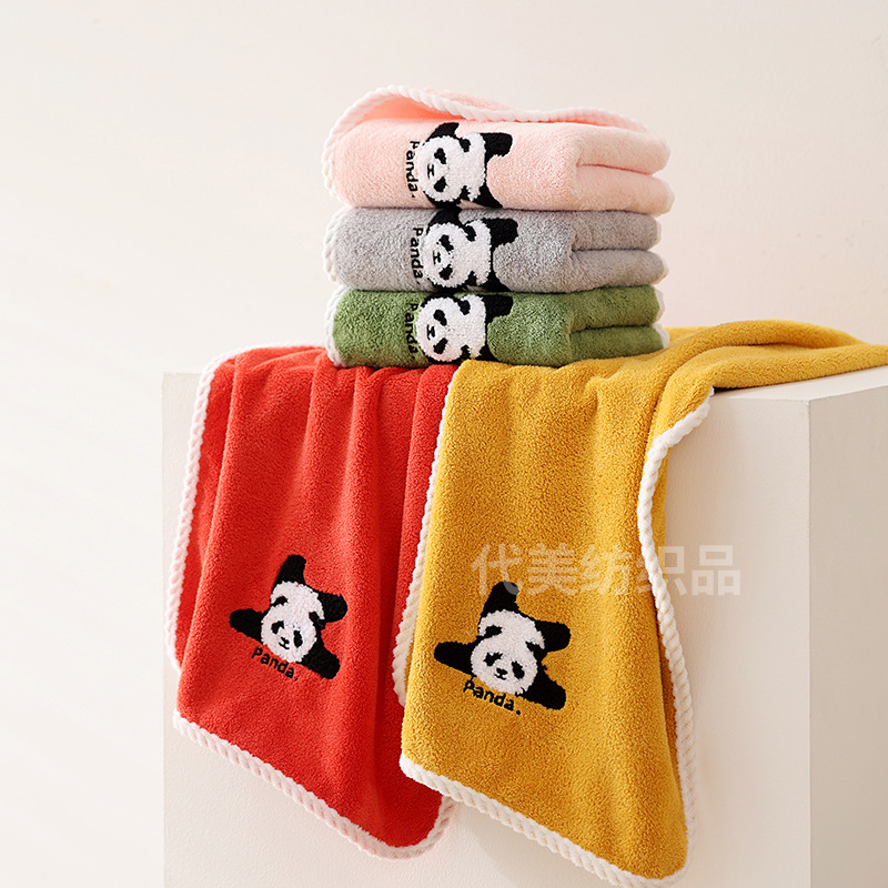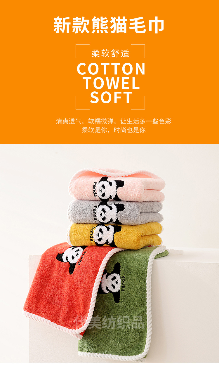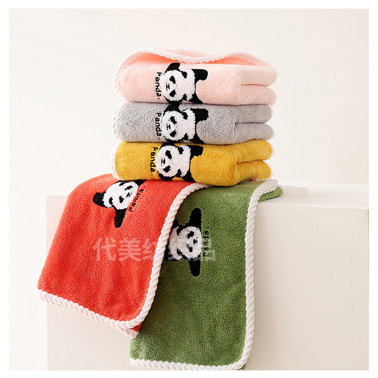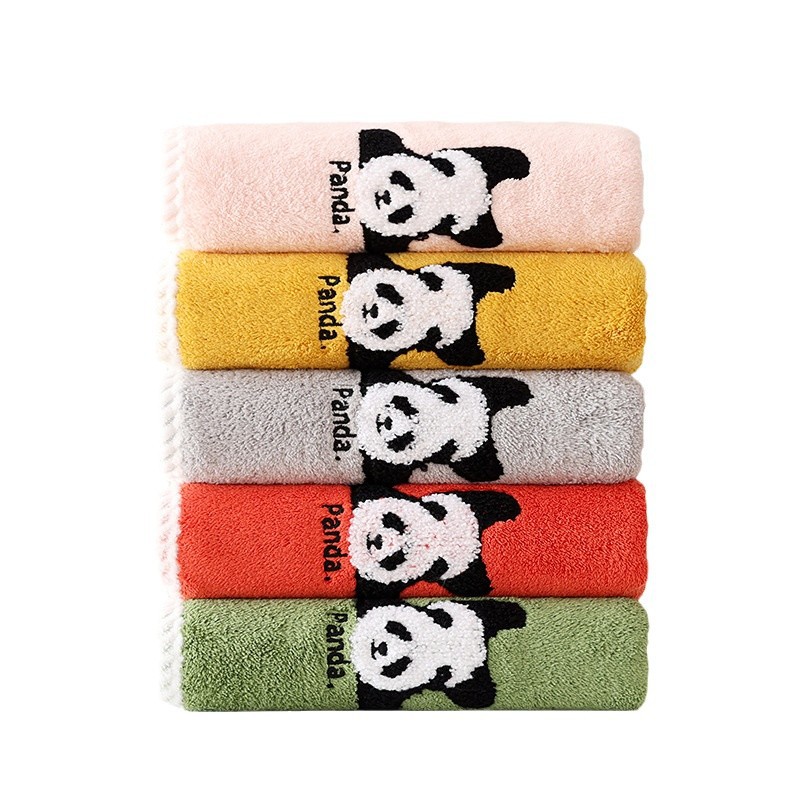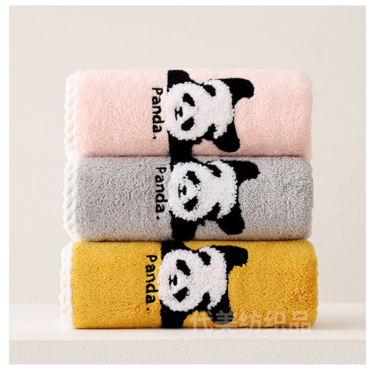 얼굴 수건 도매 새로운 만화 팬더 얼굴 수건 가정 성인 어린이 두꺼운 흡수성 산호 양털 수건