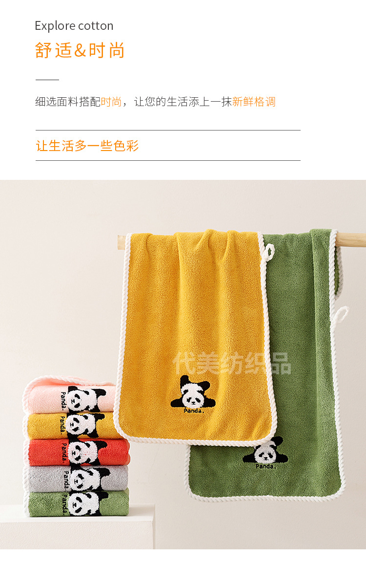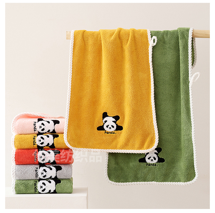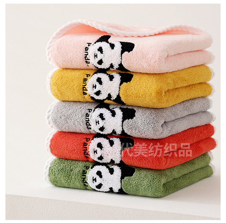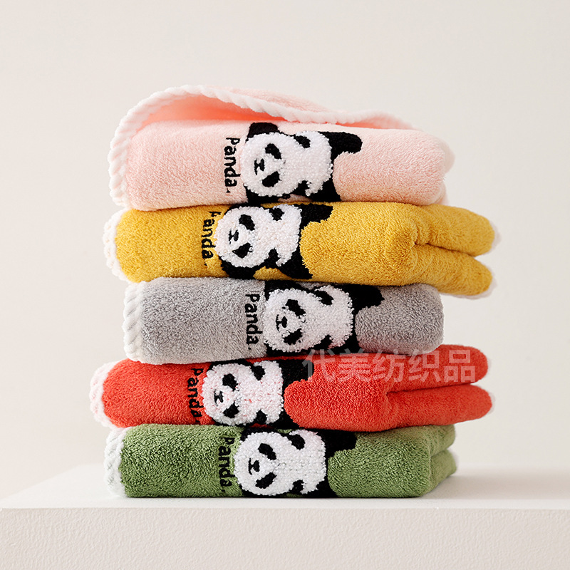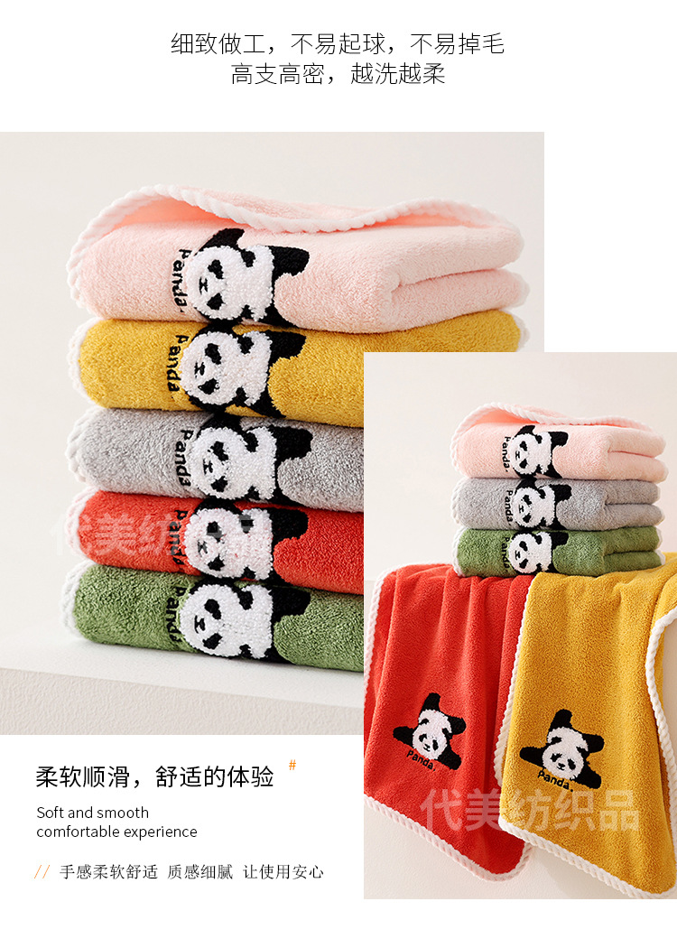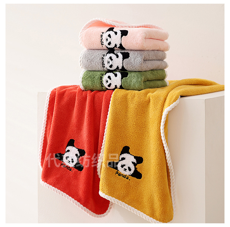 얼굴 수건 도매 새로운 만화 팬더 얼굴 수건 가정 성인 어린이 두꺼운 흡수성 산호 양털 수건