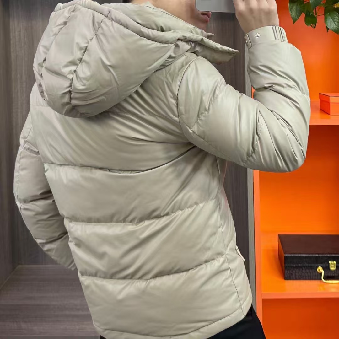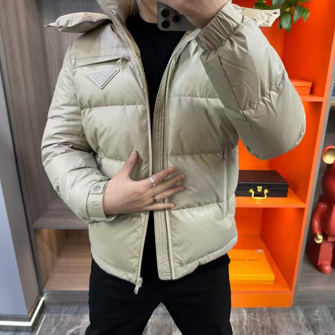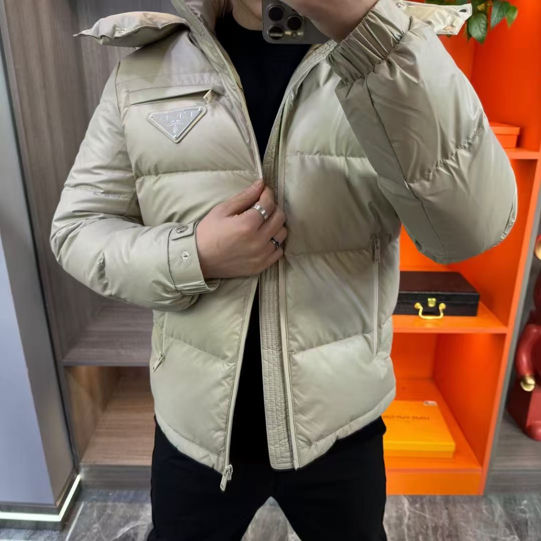 하이 엔드 클래식 다운 재킷 트렌디 브랜드 삼각형 로고 겨울 새 후드 남성 한국 스타일 따뜻한 재킷 2024 두꺼운