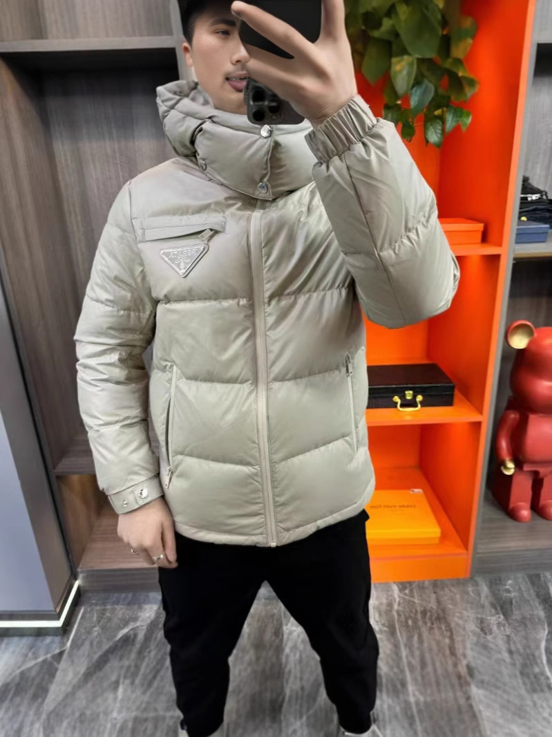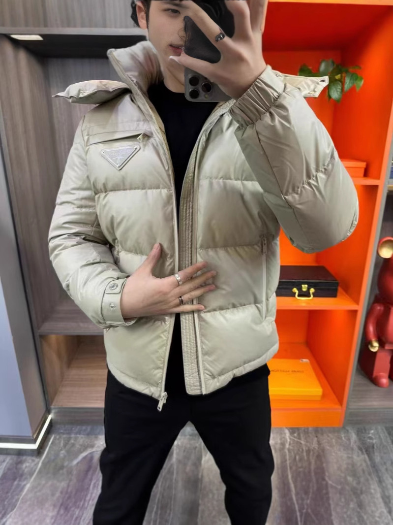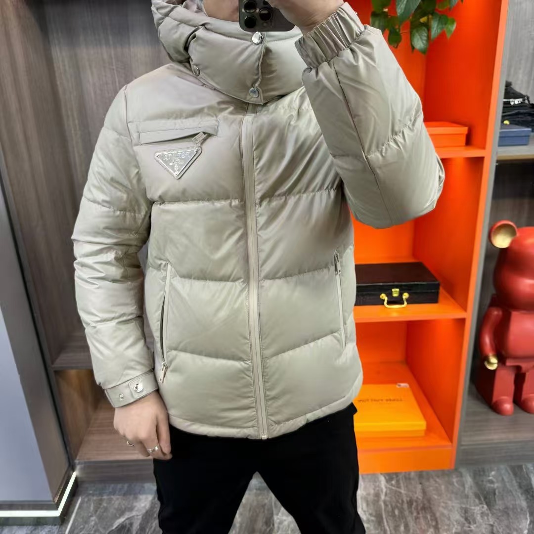 하이 엔드 클래식 다운 재킷 트렌디 브랜드 삼각형 로고 겨울 새 후드 남성 한국 스타일 따뜻한 재킷 2024 두꺼운