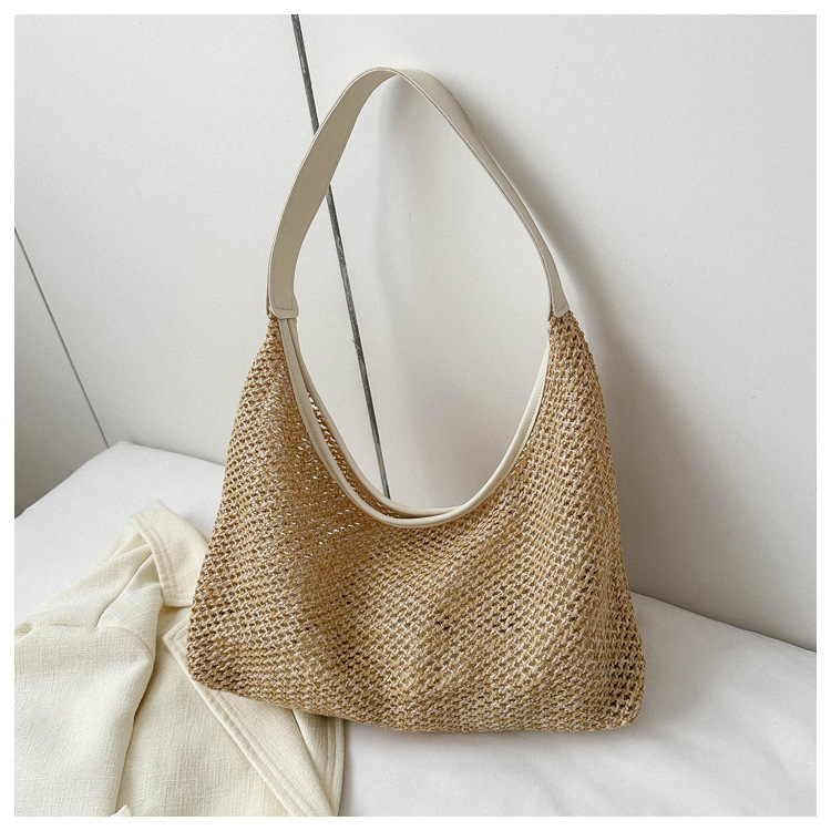 밀짚 대용량 패션 캐주얼 가방 2024 여름 인기있는 한국 스타일 짠 어깨 언더암 가방 토트 백