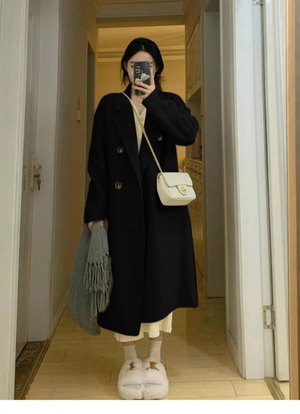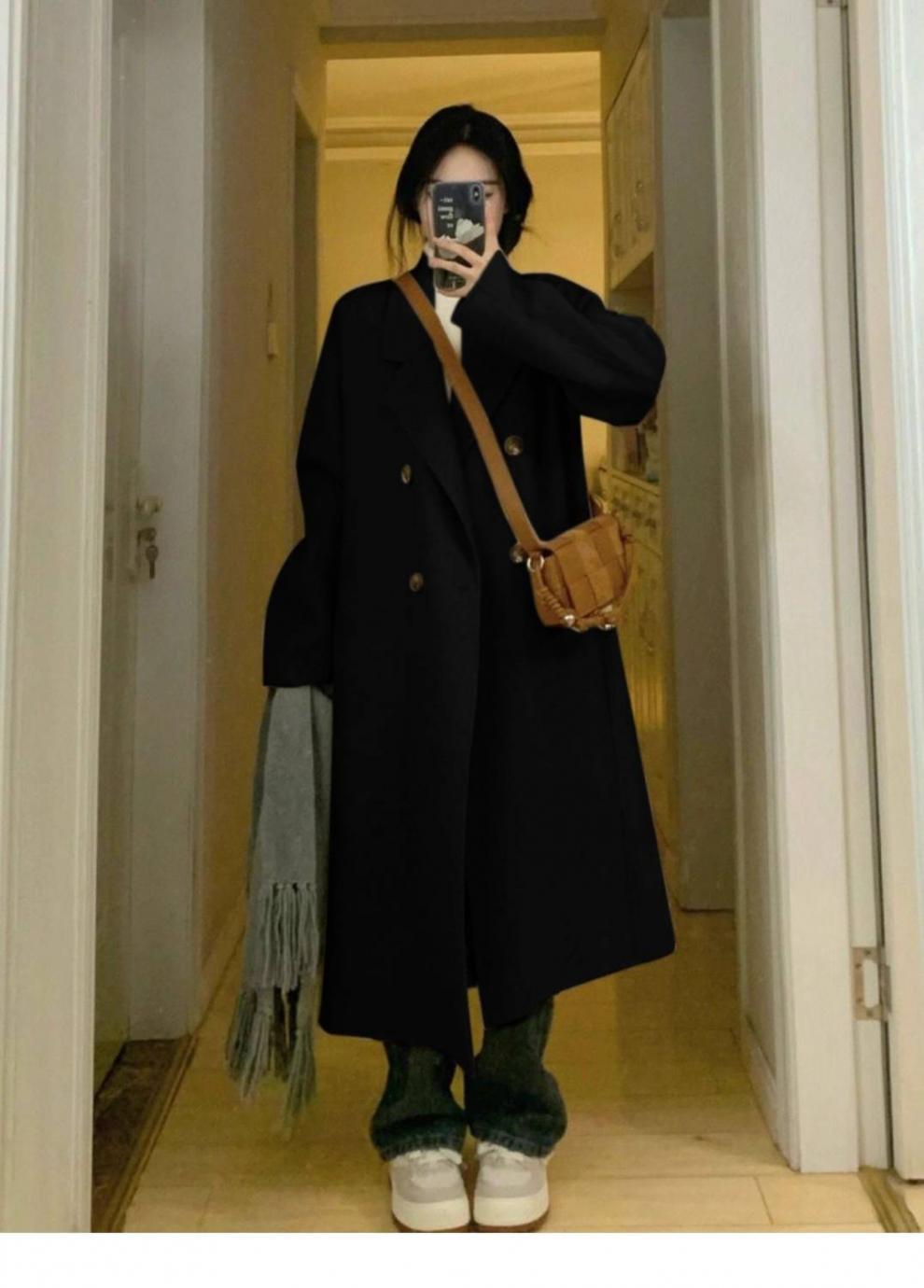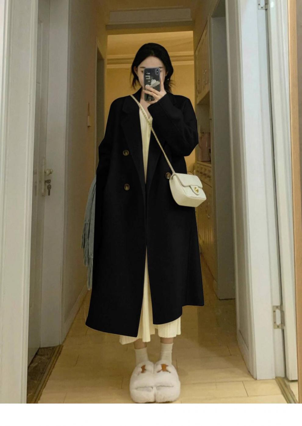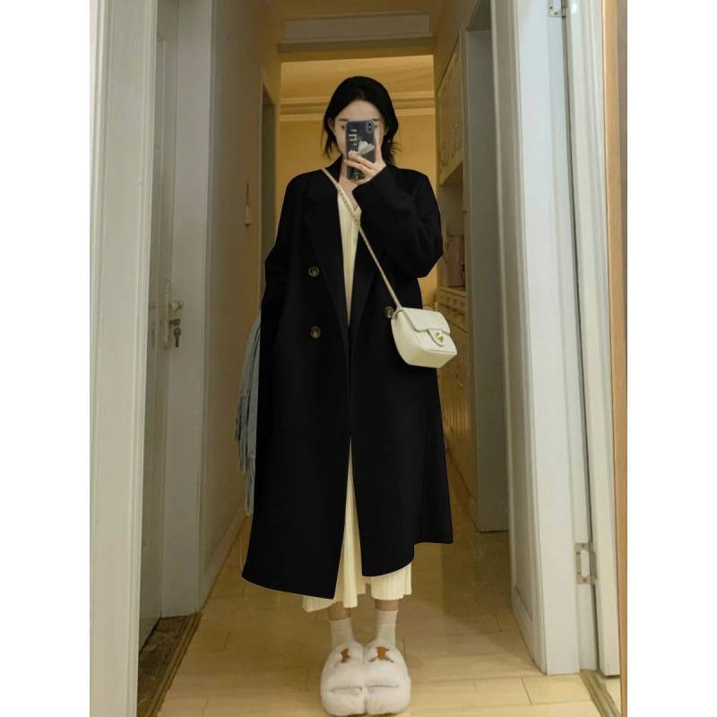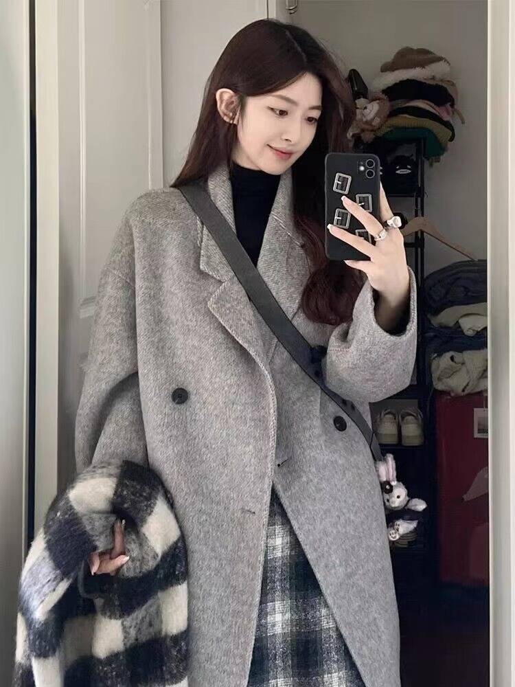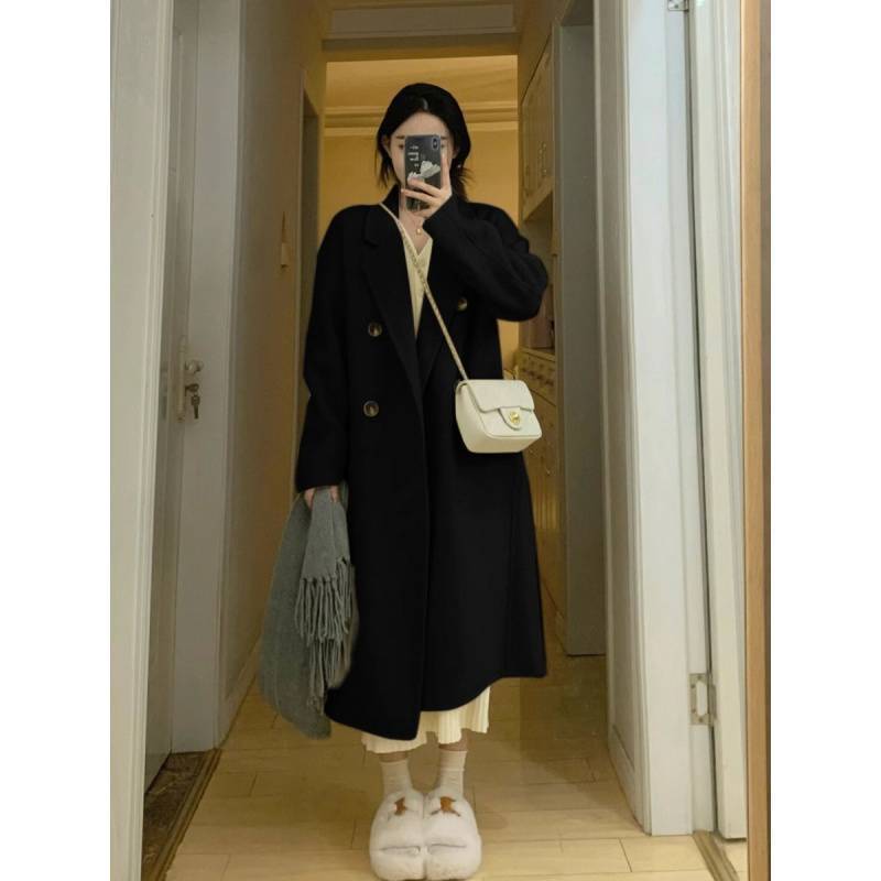 다운 재킷 안감 울 코트 여성용 중간 길이 2025 가을 겨울 신상 롱 울 코트 소형 여성용
