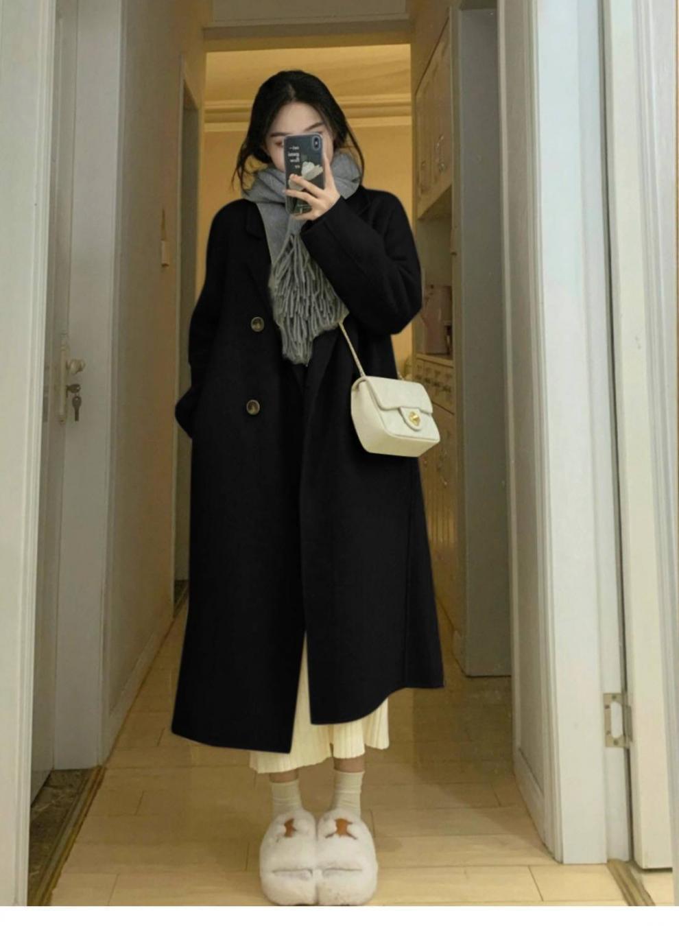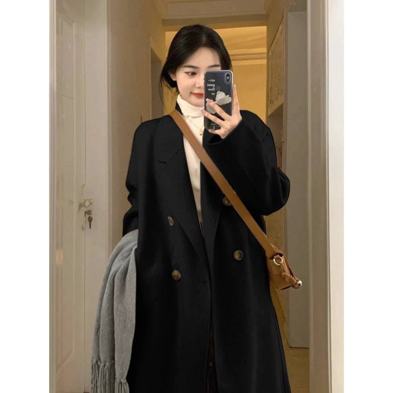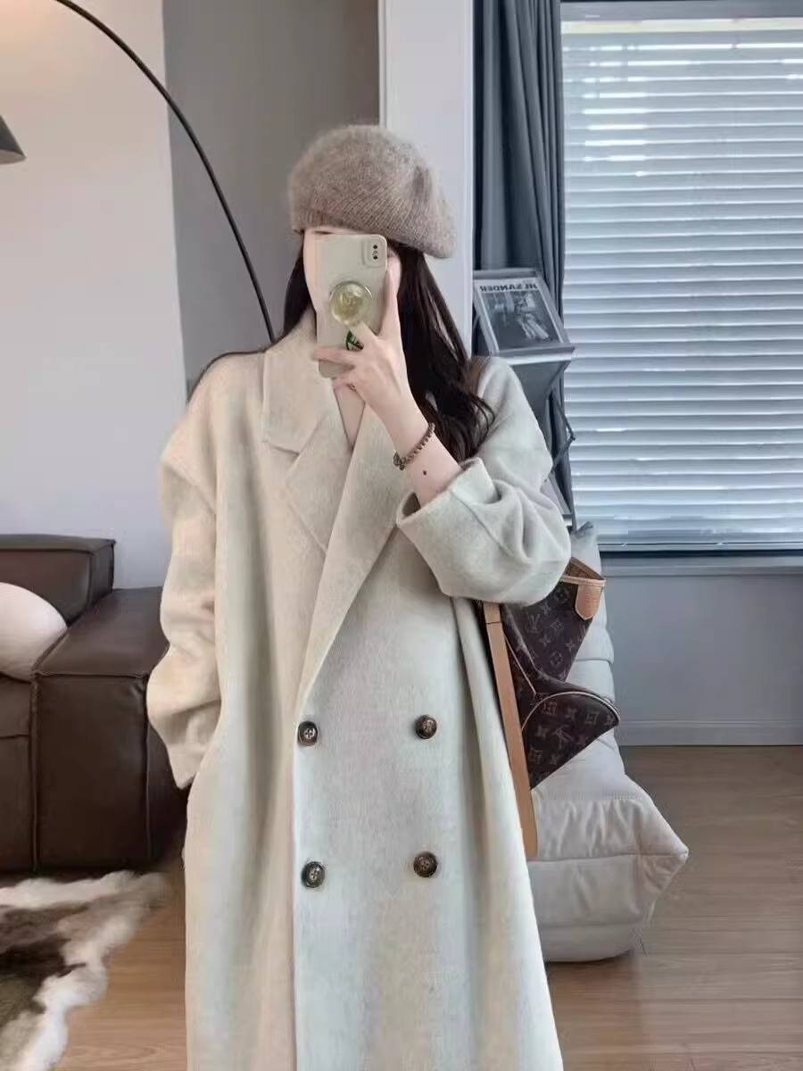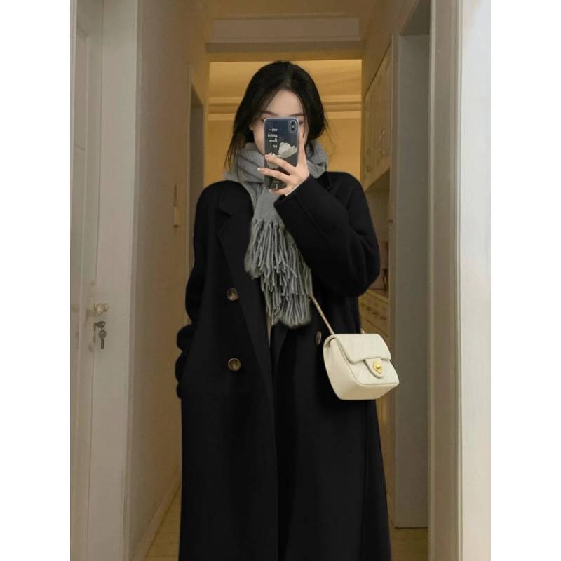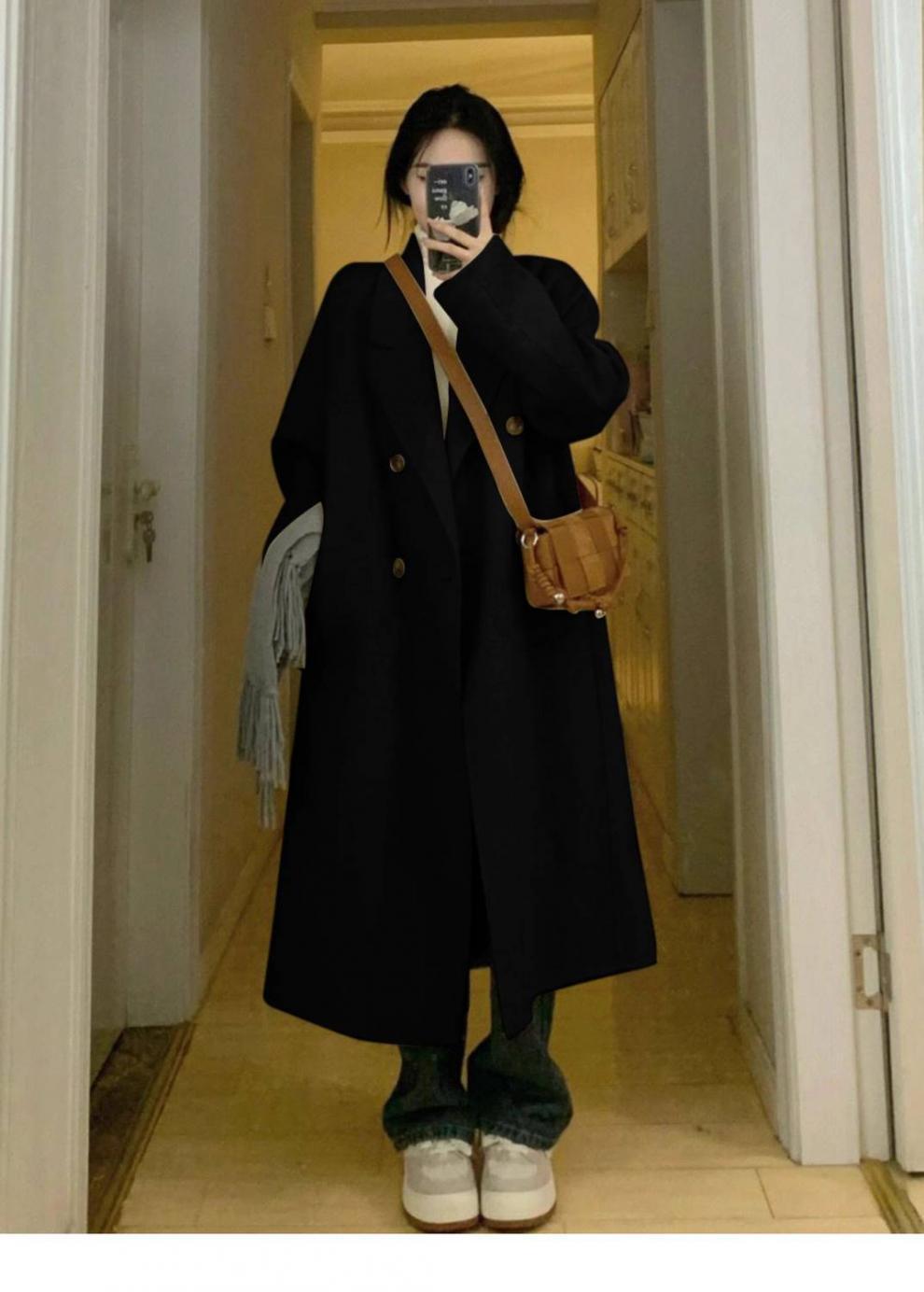 다운 재킷 안감 울 코트 여성용 중간 길이 2025 가을 겨울 신상 롱 울 코트 소형 여성용