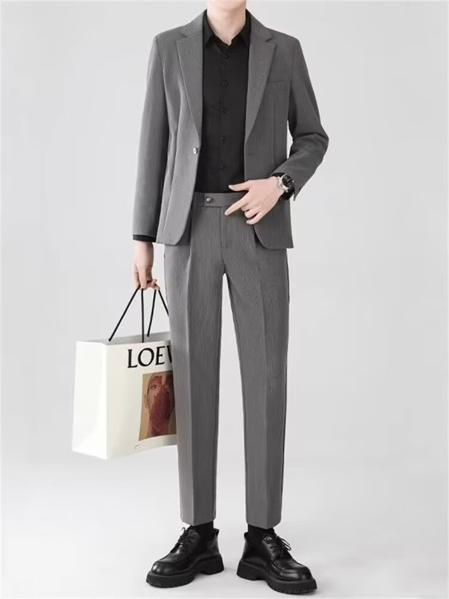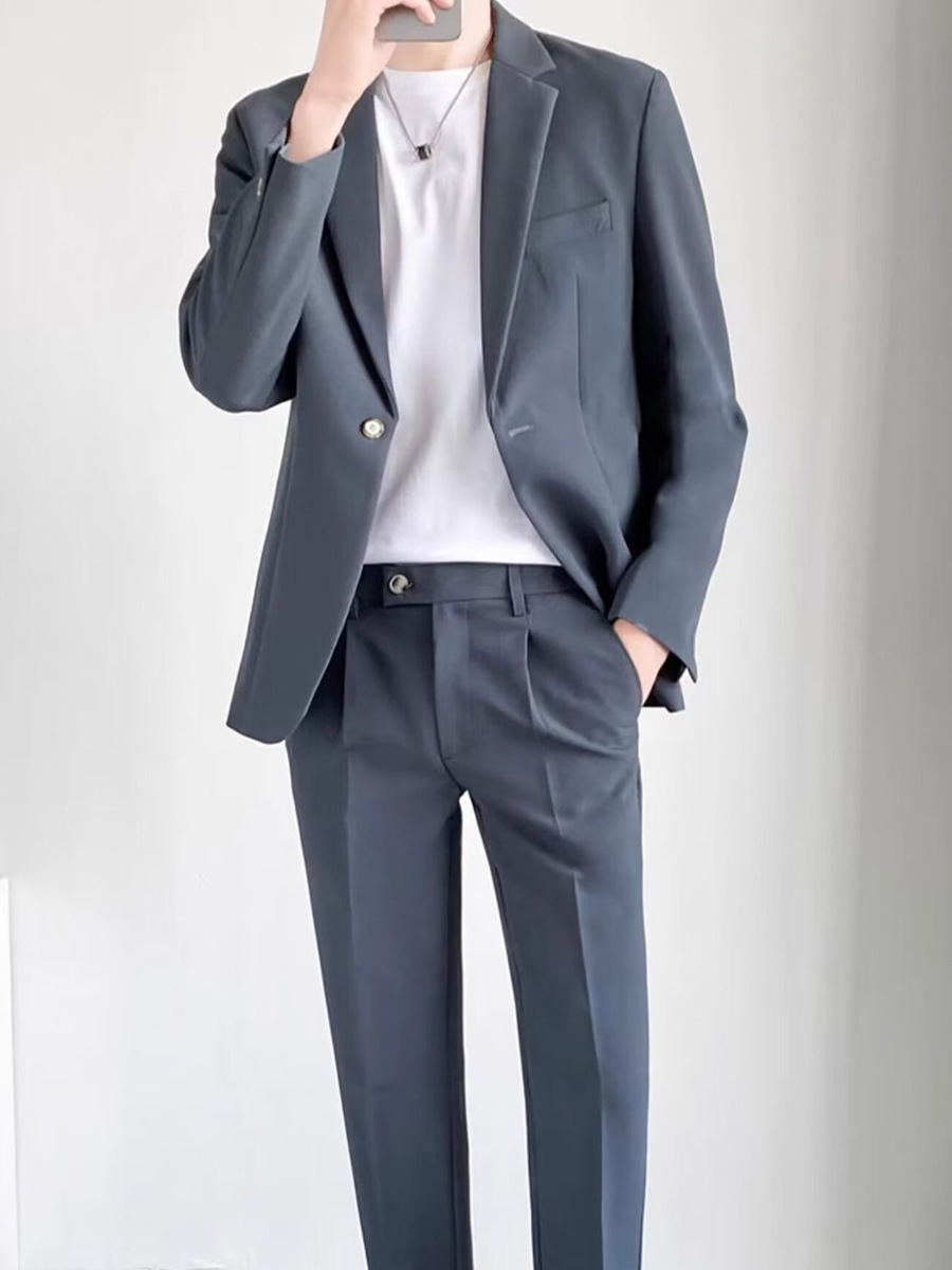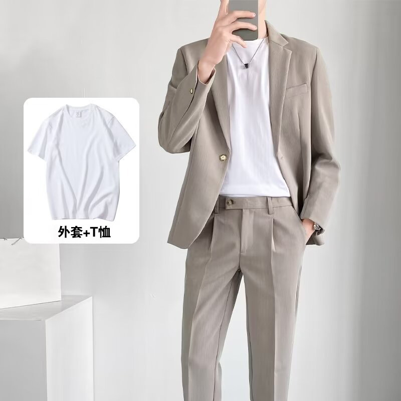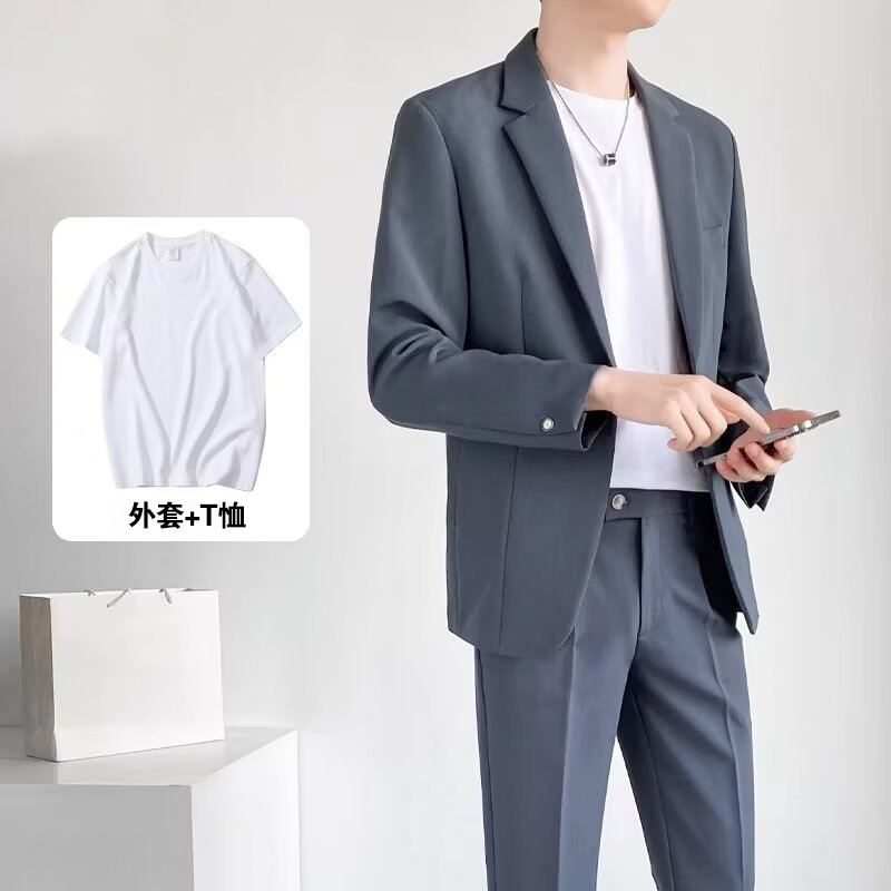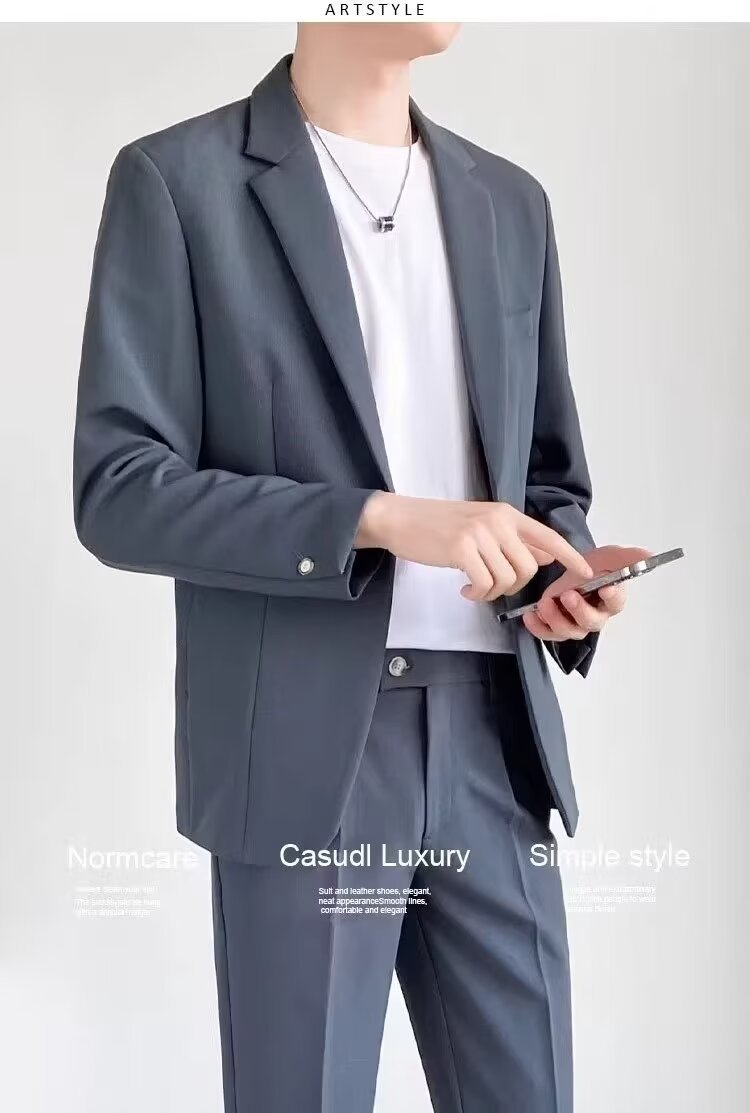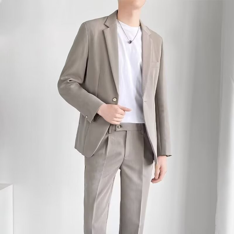 경량의 성숙한 스타일 루즈핏 남성 정장 재킷 캐주얼 정장 세트 비즈니스 한국 스타일 트렌디 투피스 세트 경량 정장