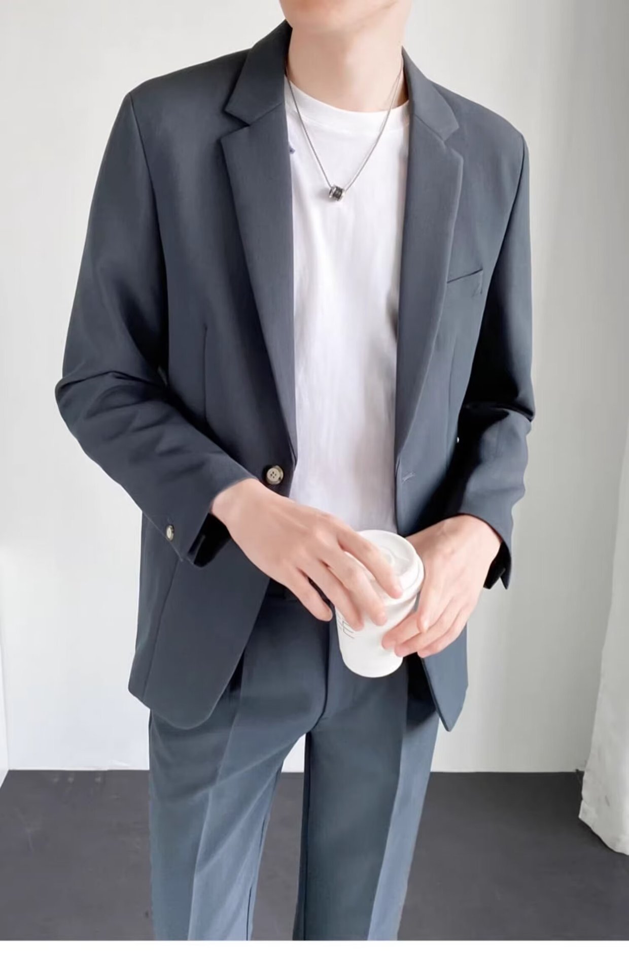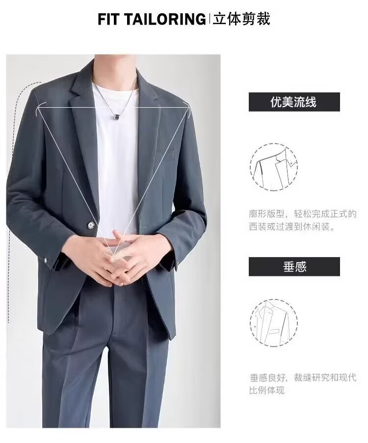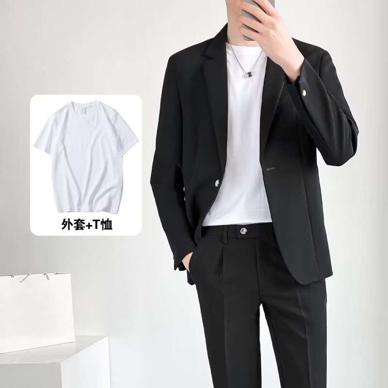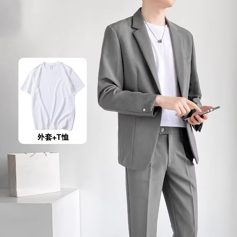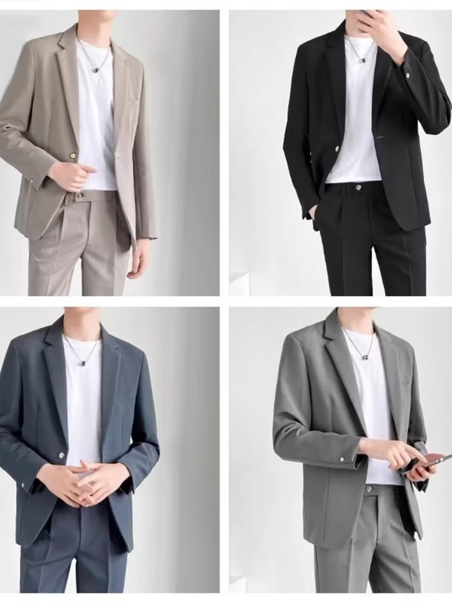 경량의 성숙한 스타일 루즈핏 남성 정장 재킷 캐주얼 정장 세트 비즈니스 한국 스타일 트렌디 투피스 세트 경량 정장