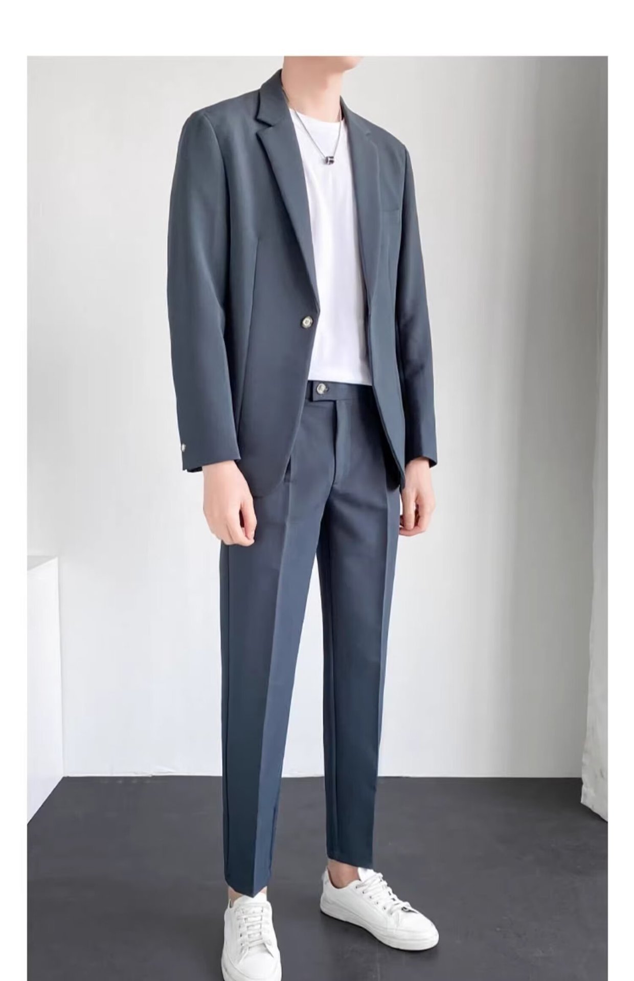 블루 앤 그레이 투피스 수트(탑+바지)