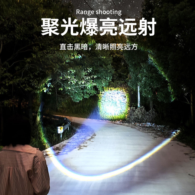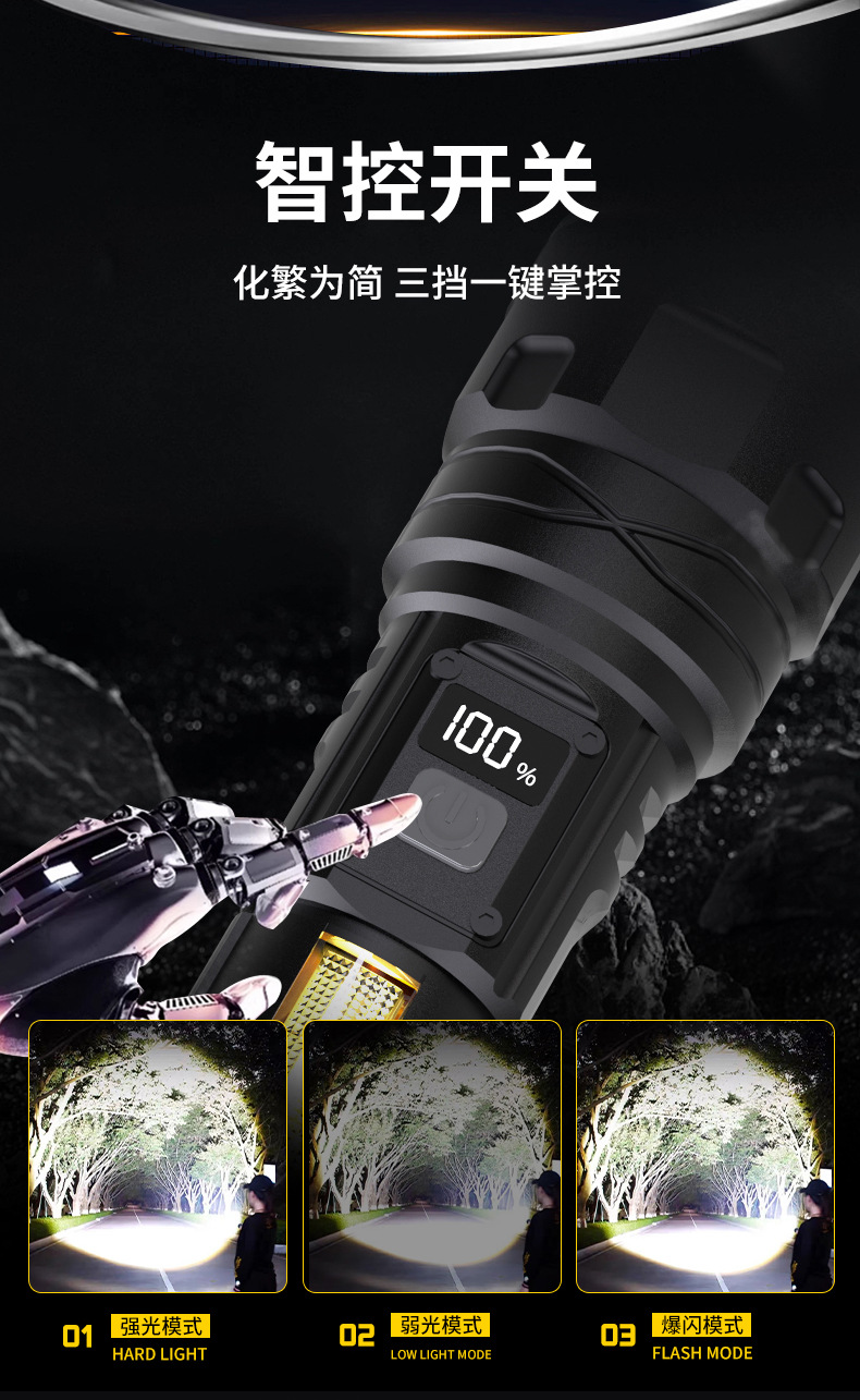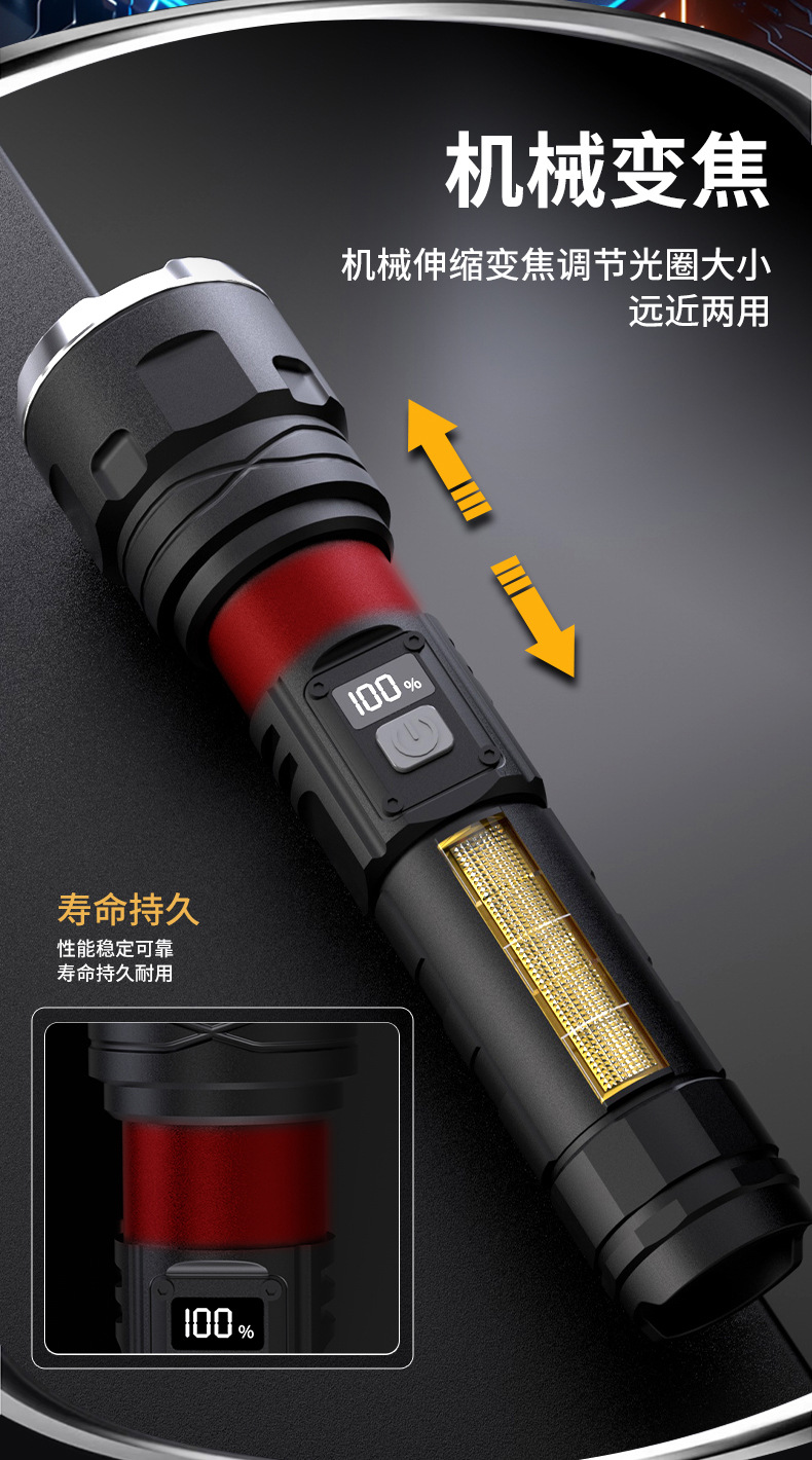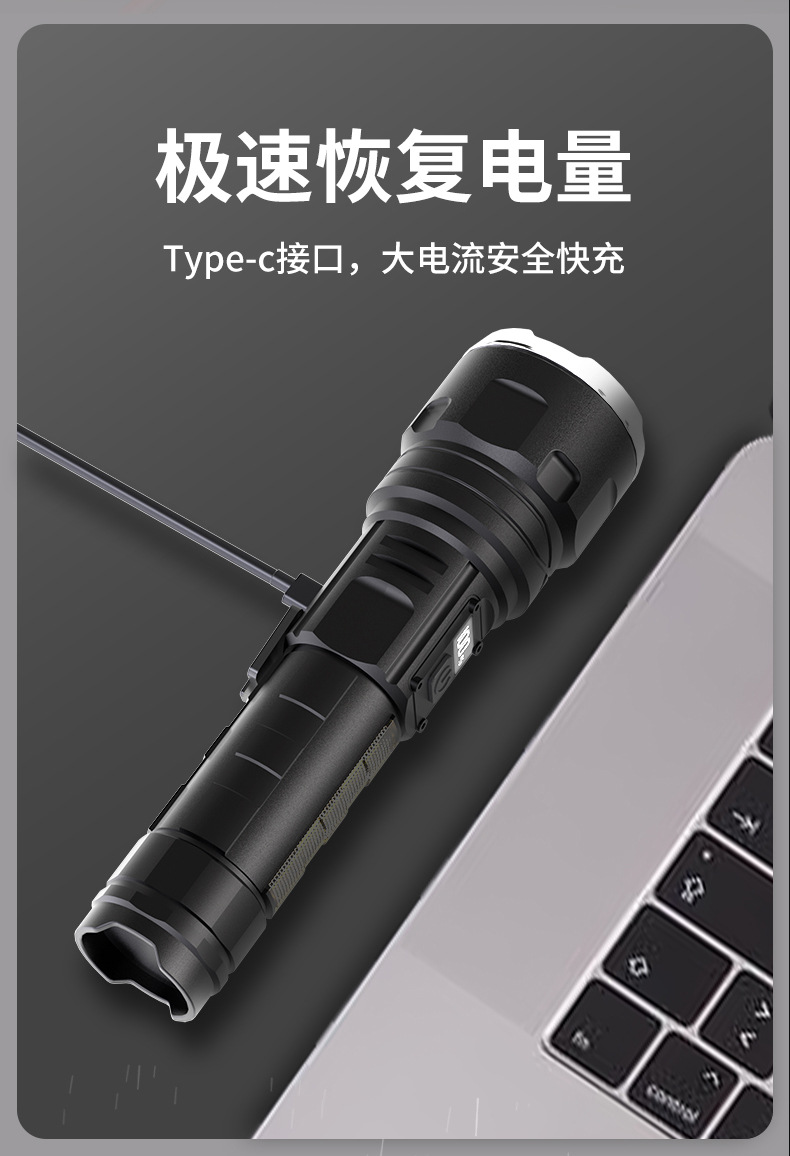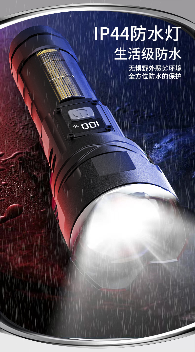 국경을 넘는 LED 초강력 장거리 야외 충전식 손전등 타입C 고속 충전 LCD 디지털 디스플레이 휴대폰 충전 가능