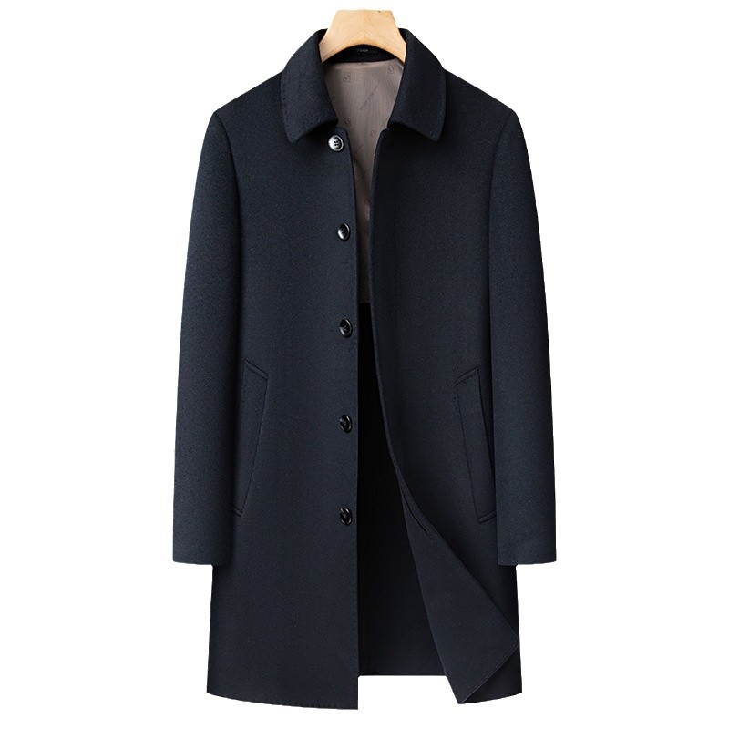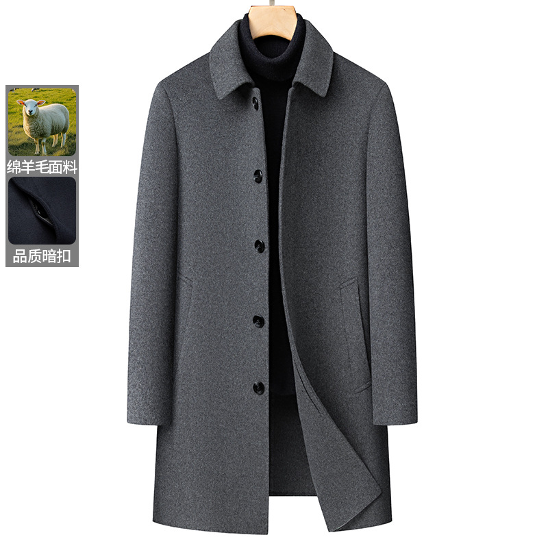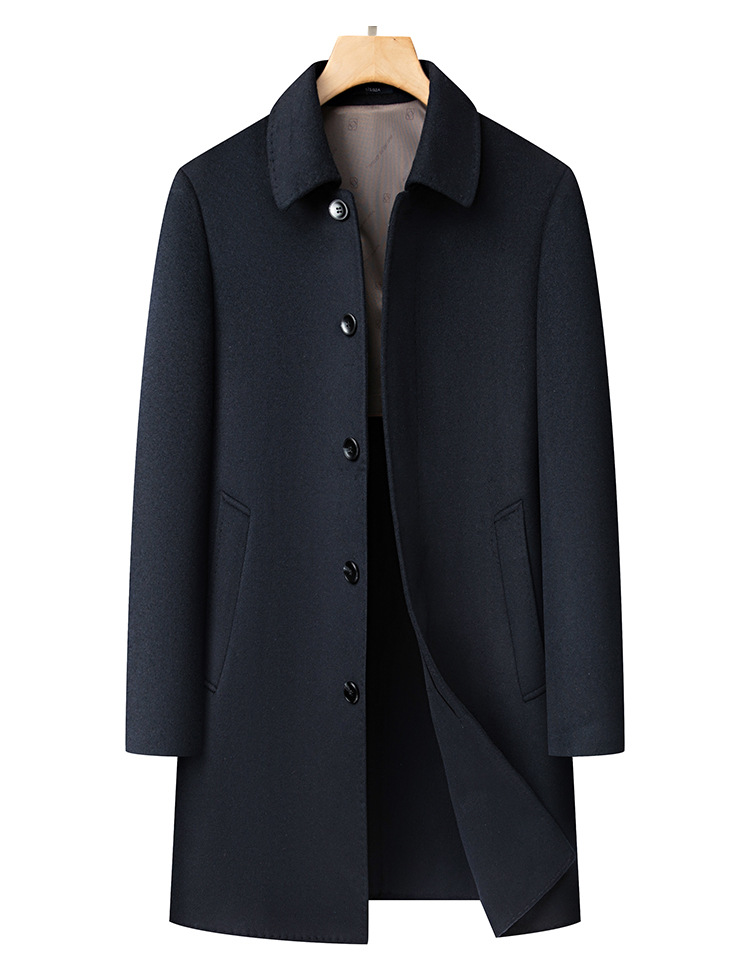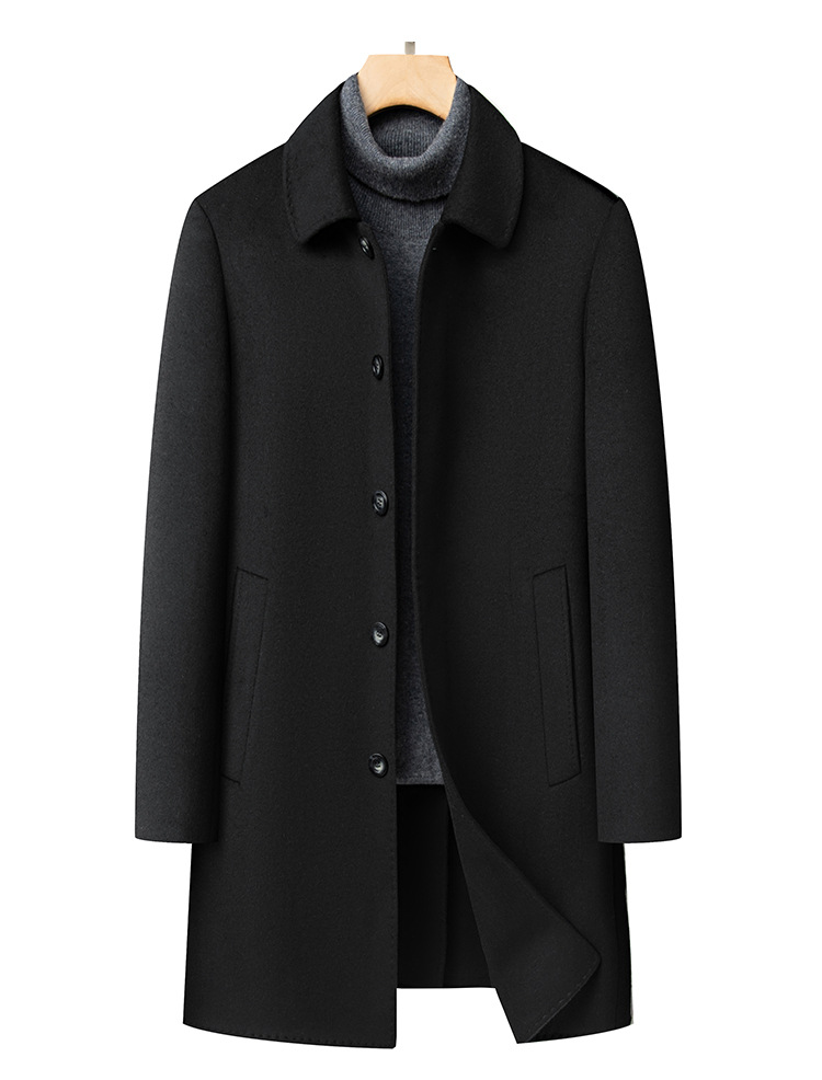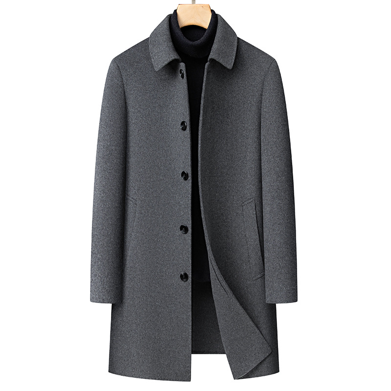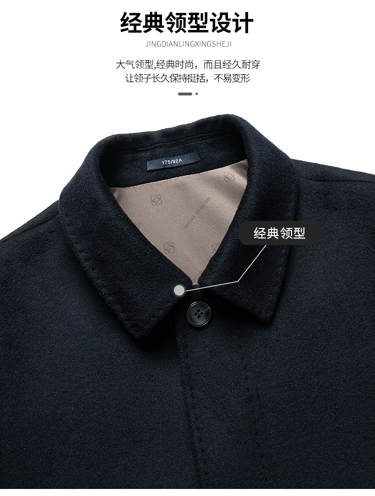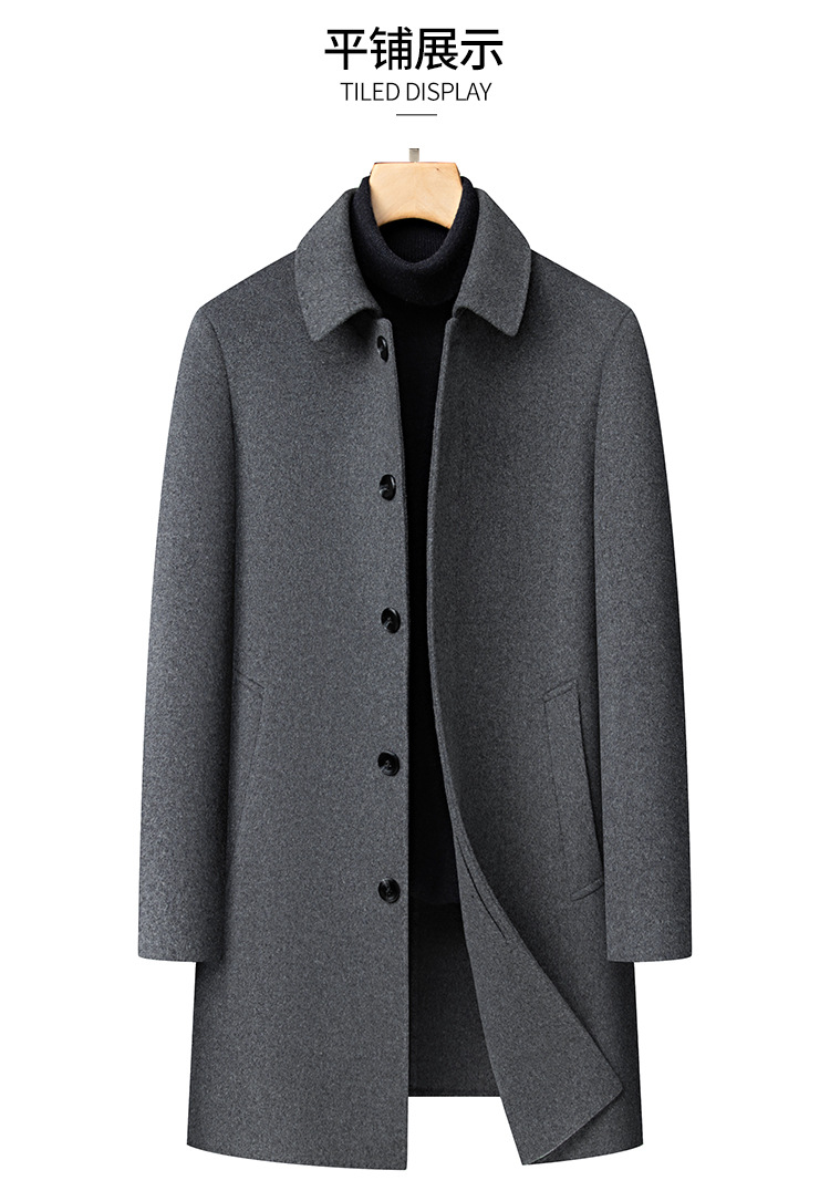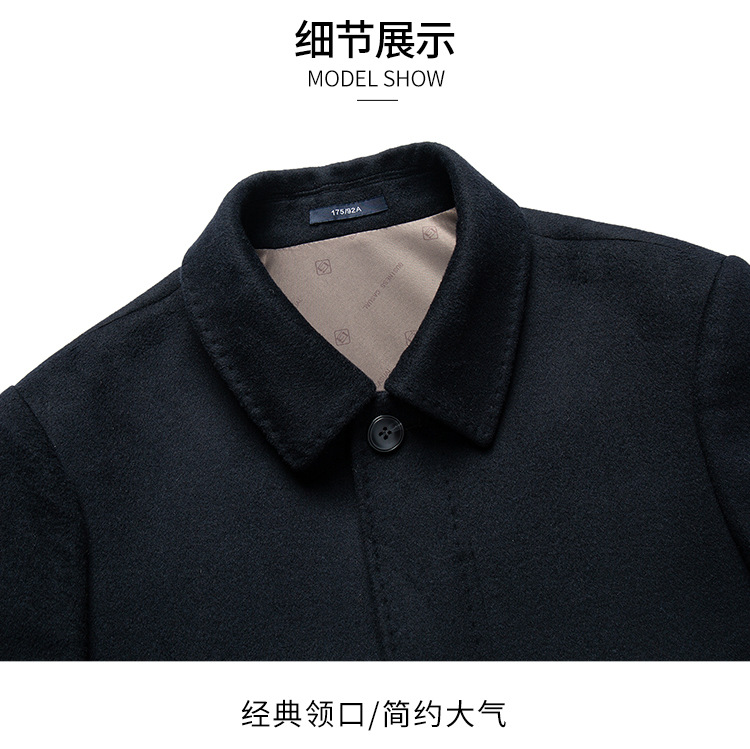 남자 양모 양면 트위드 코트 옷깃 중견 중년 비즈니스 캐주얼 트위드 코트 솔리드 컬러 올 매치 탑