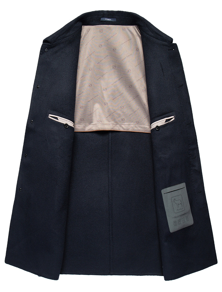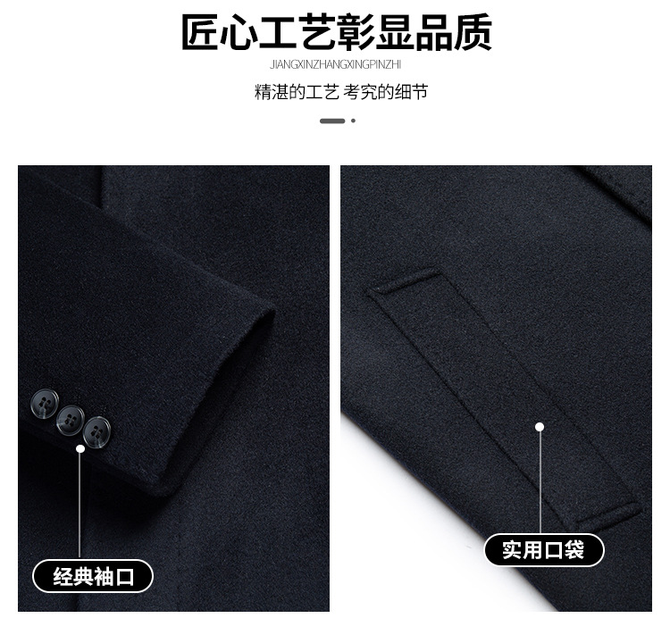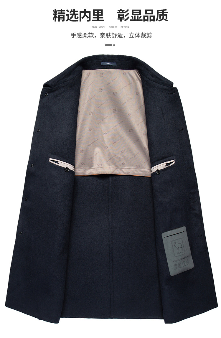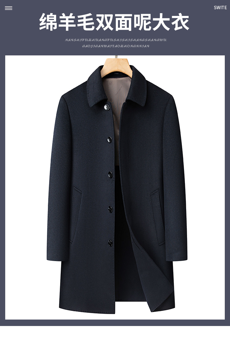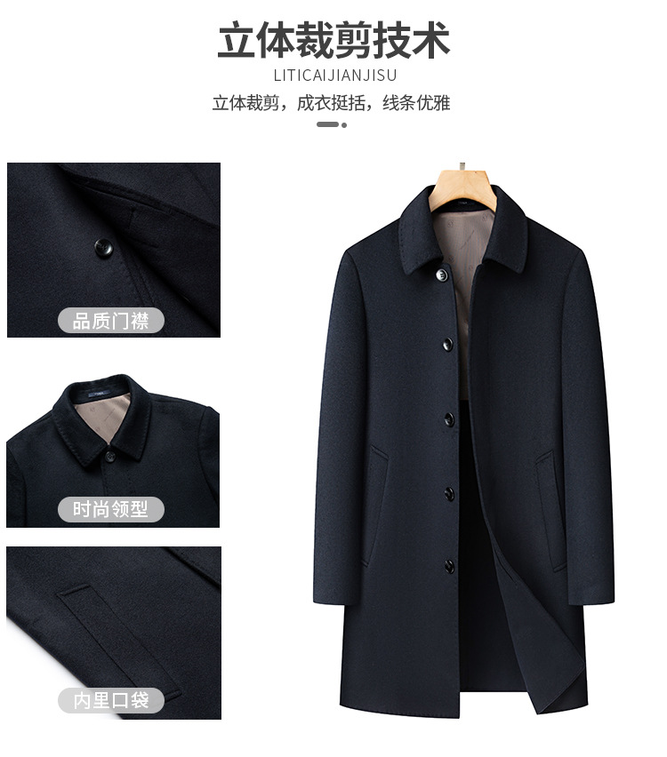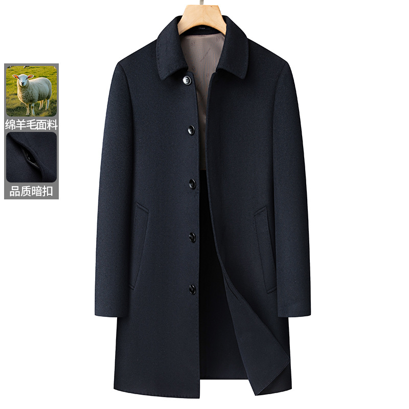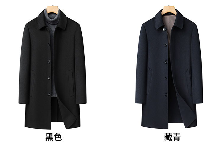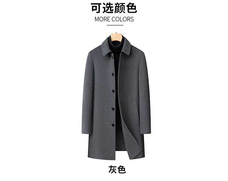 남자 양모 양면 트위드 코트 옷깃 중견 중년 비즈니스 캐주얼 트위드 코트 솔리드 컬러 올 매치 탑