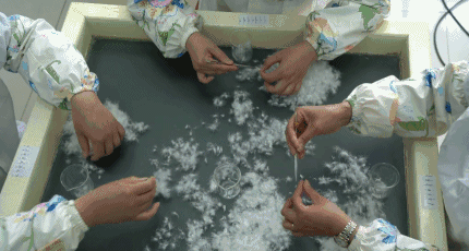 筛选、分级、多次水洗,消毒后的鹅绒
