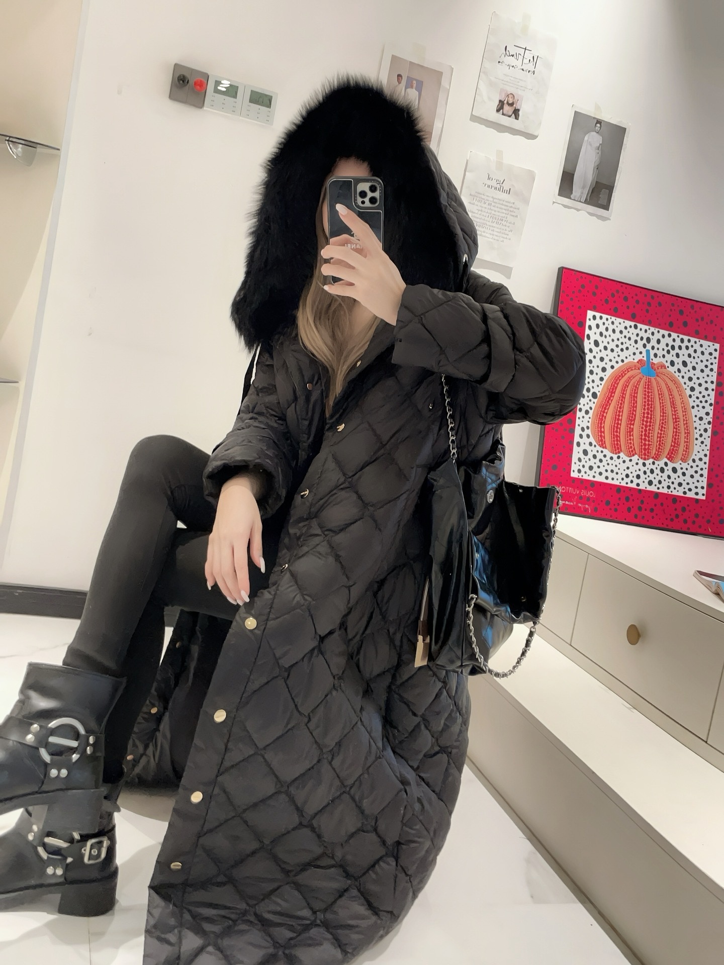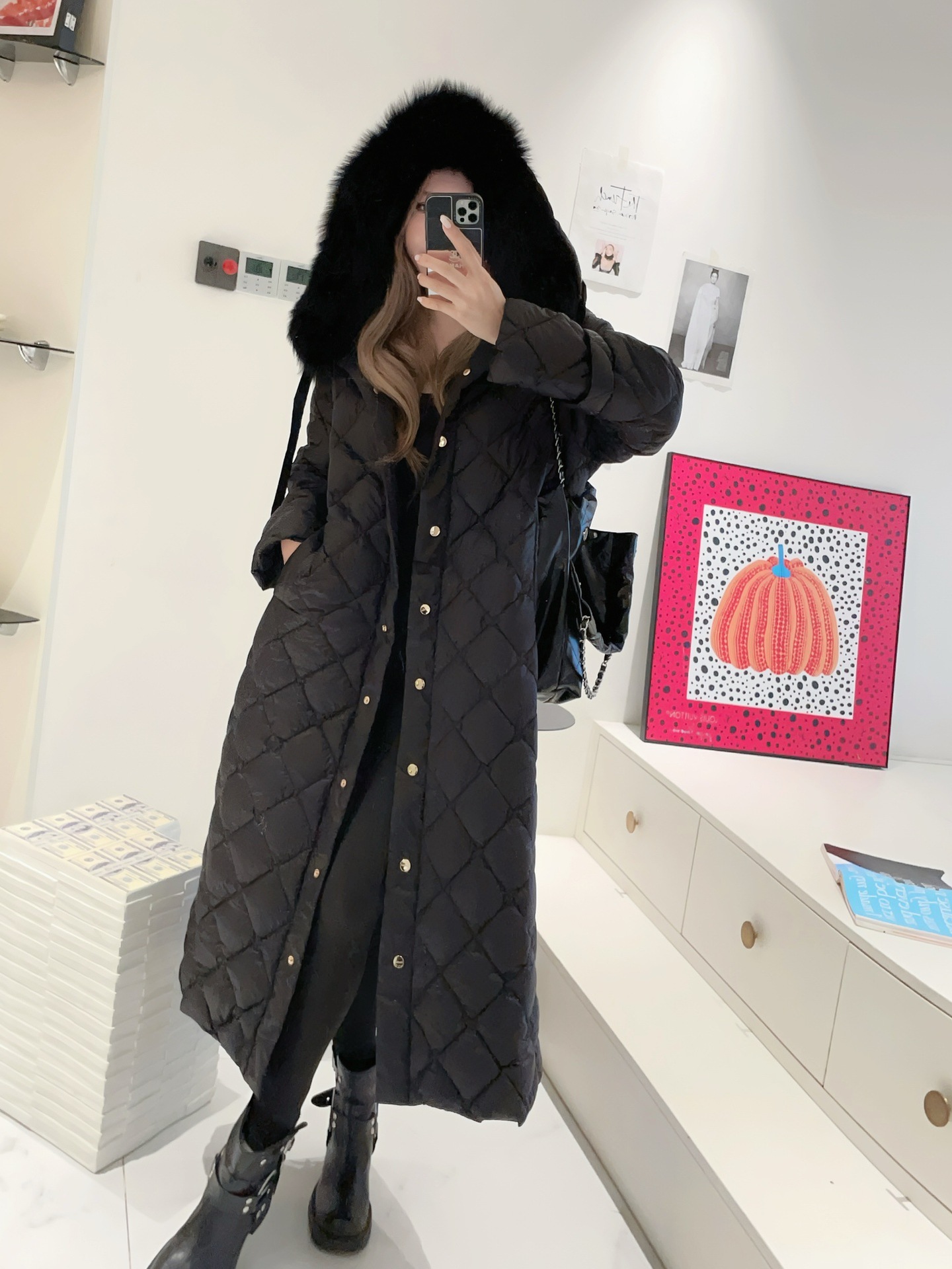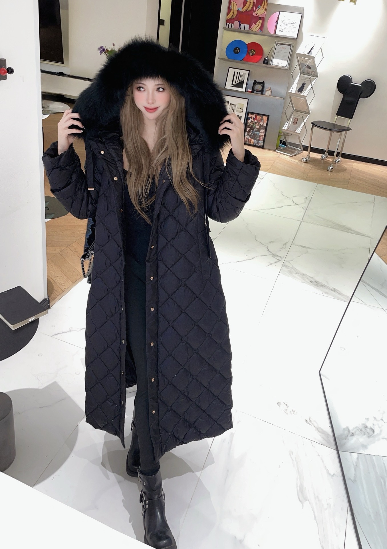 모피 칼라가 있는 검정색