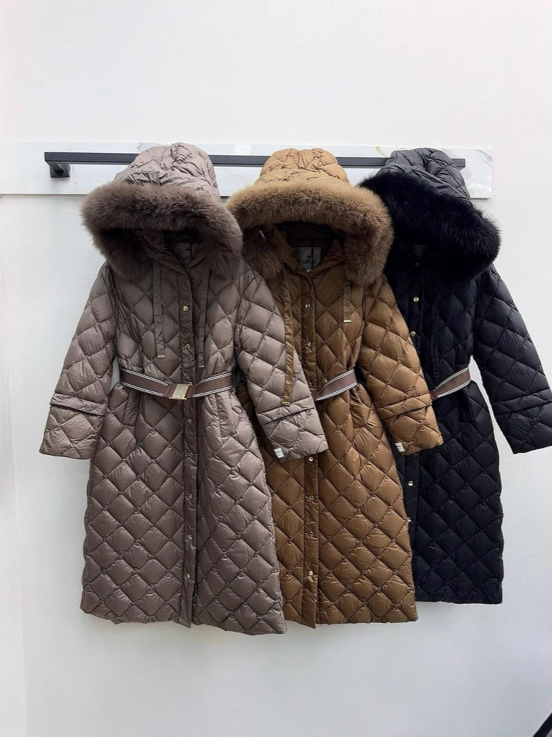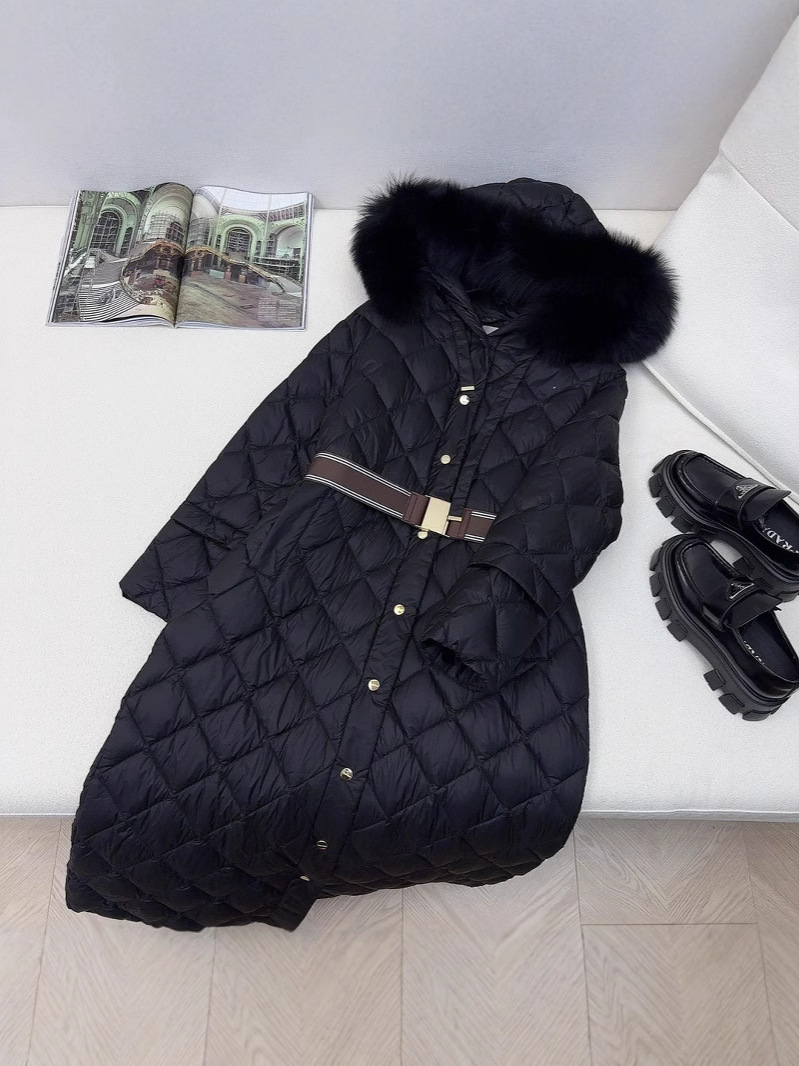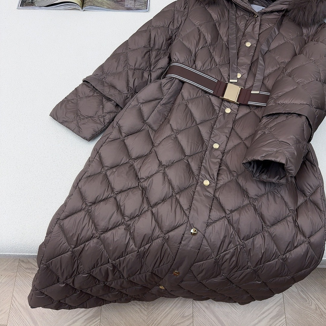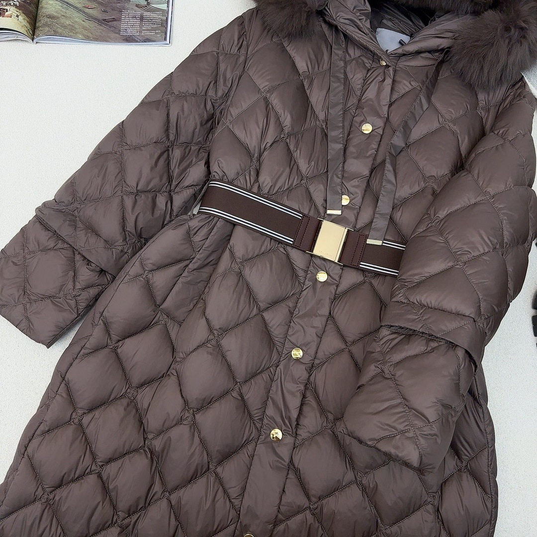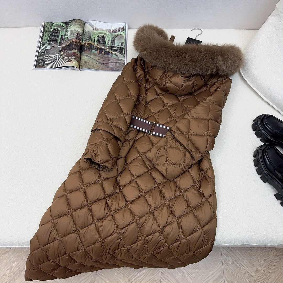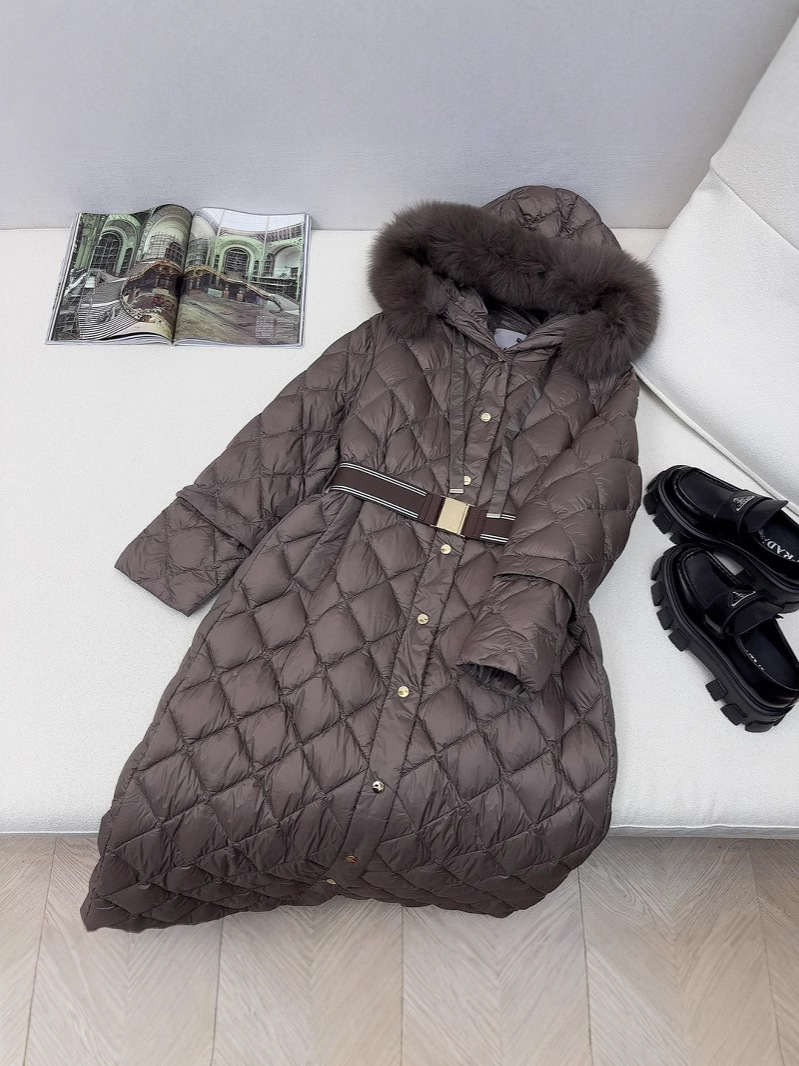 유럽과 미국의 MAX 홈 대외 무역 품질 하이 엔드 유럽 패션 벨트 마름모 롱 화이트 구스 다운 재킷