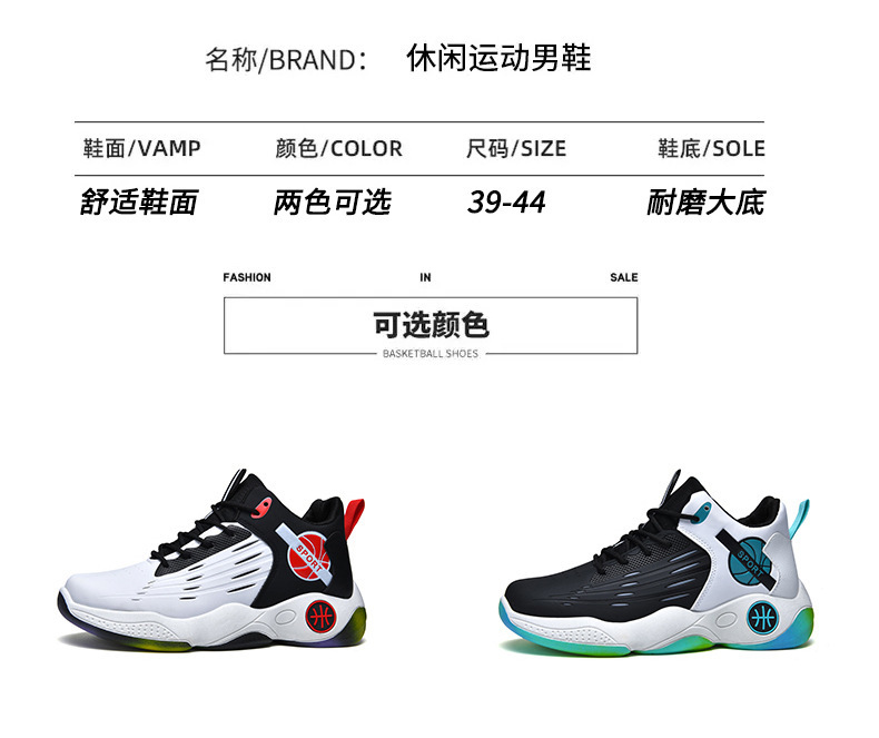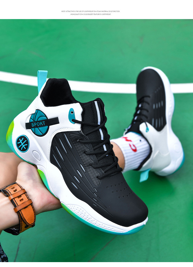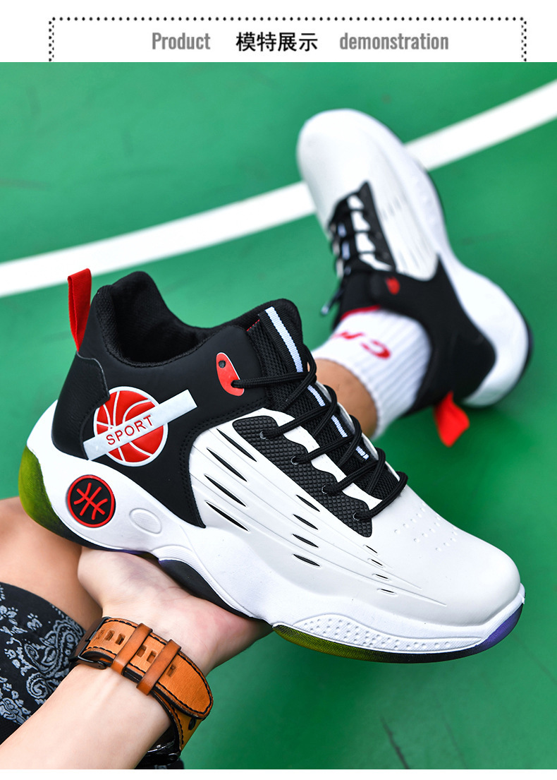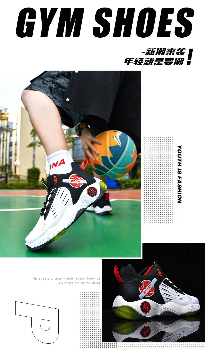 2026년 신형 미드탑 레이스업 운동화, 야외 청소년 농구화, 남성 통기성 트렌디 두꺼운 밑창 남성화
