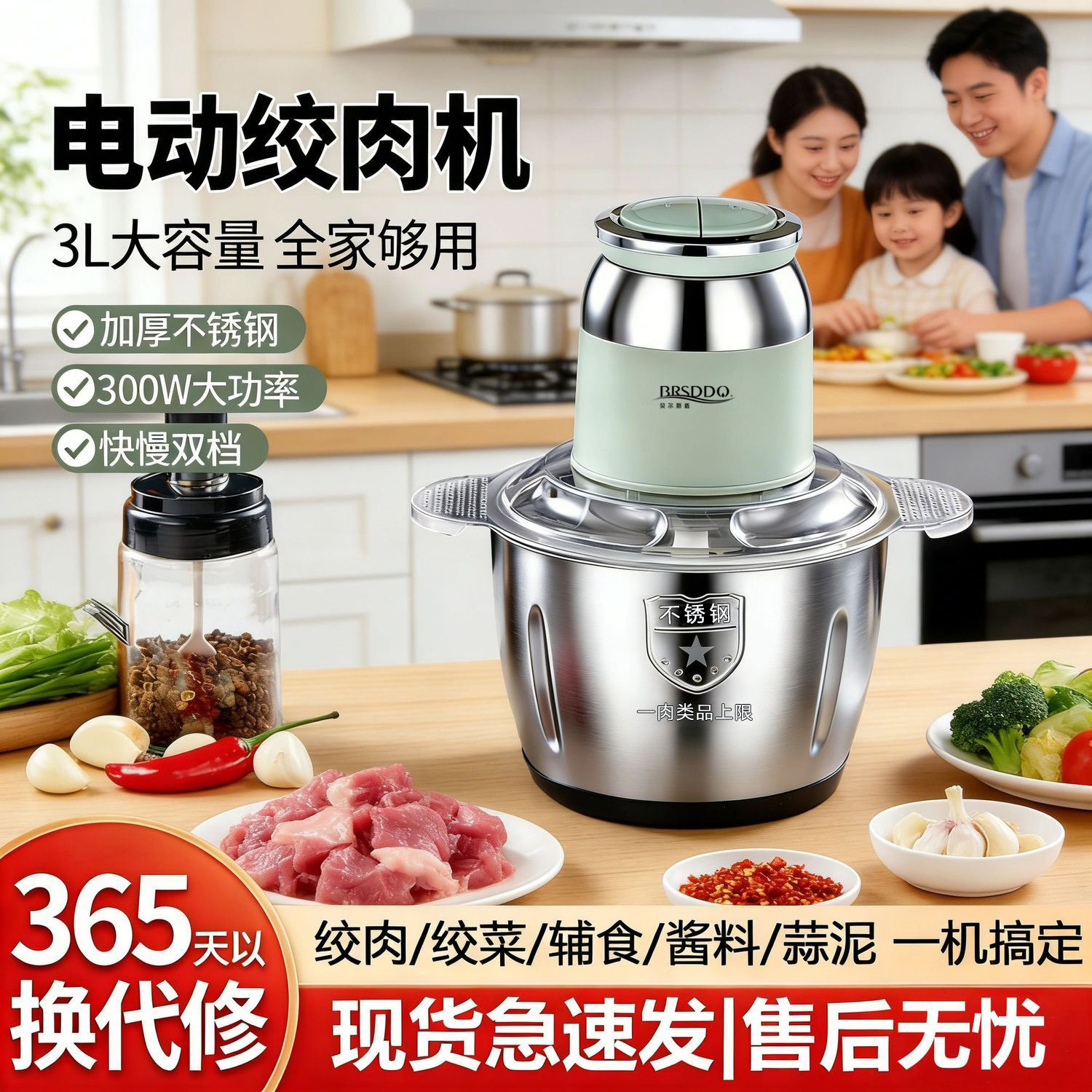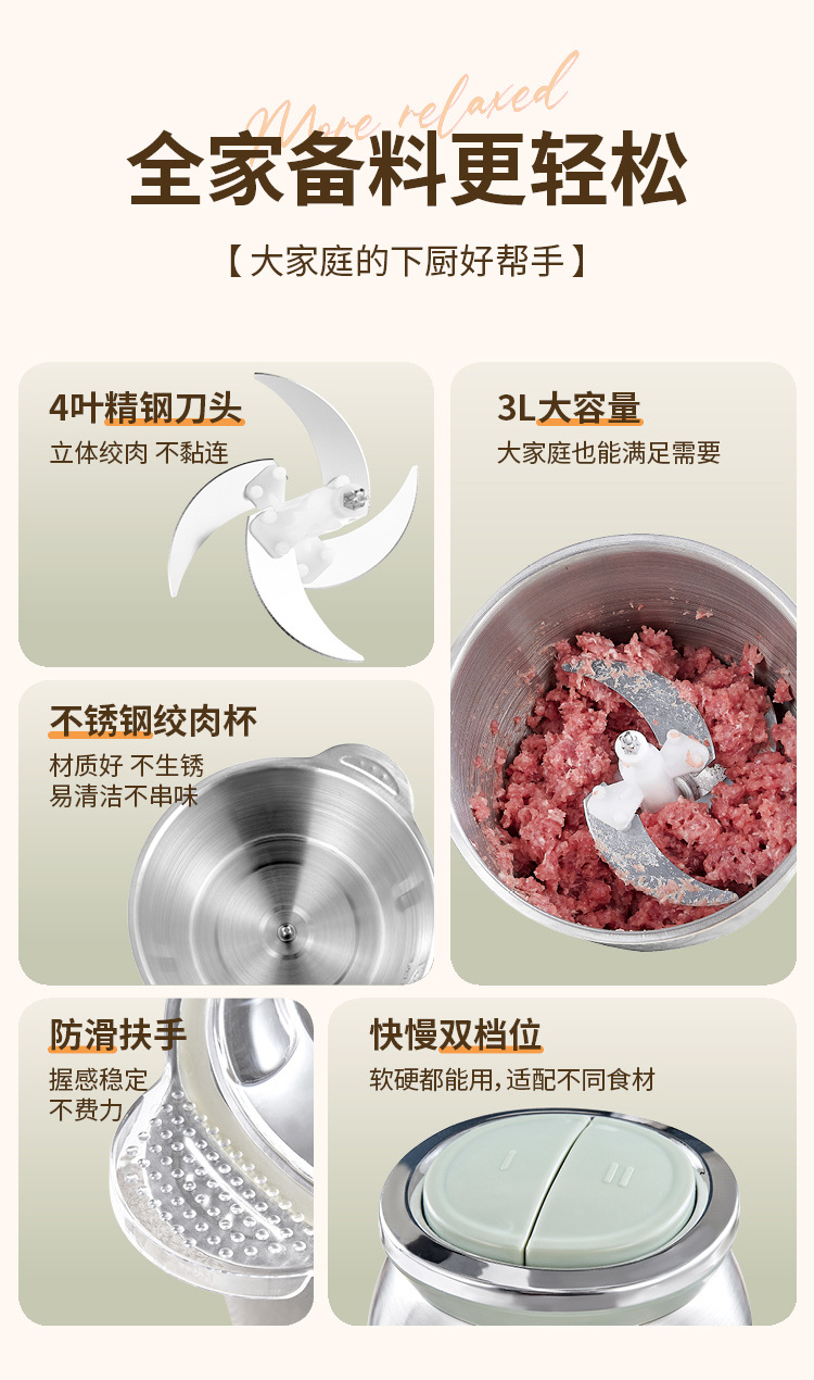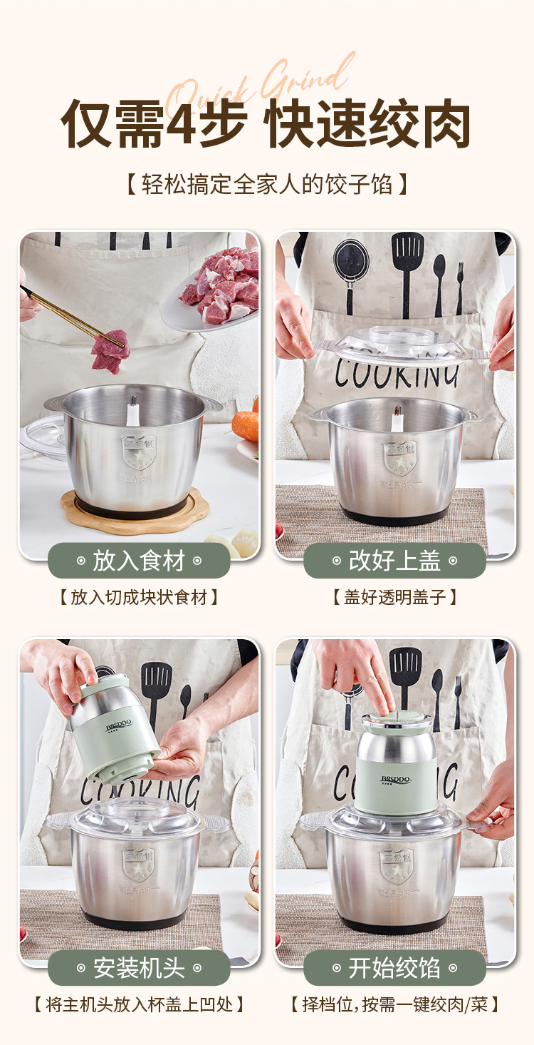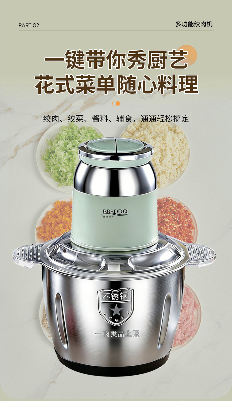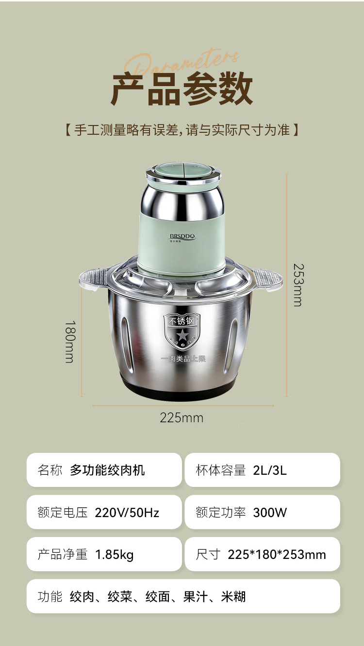 국경 간 주방 가정용 전기 고기 분쇄기 다기능 고기 분쇄기 2L 고출력 4 날 고기 믹서