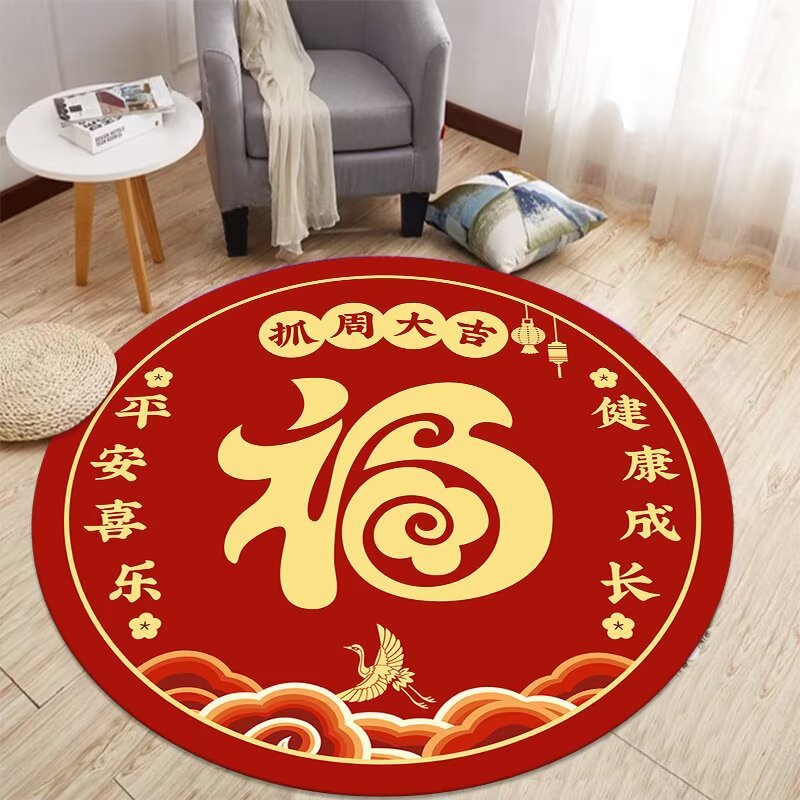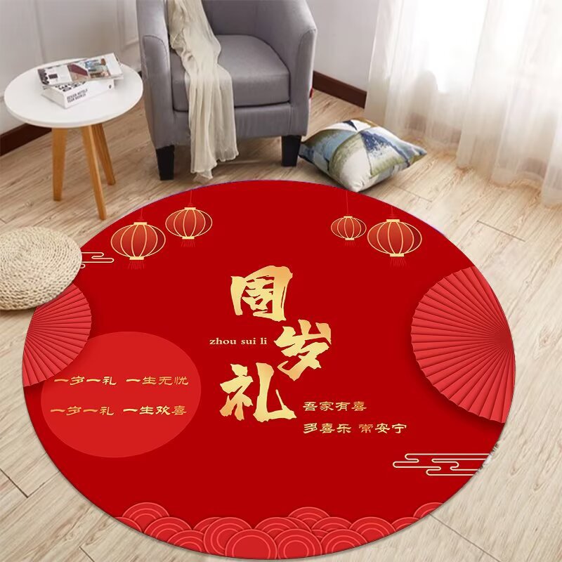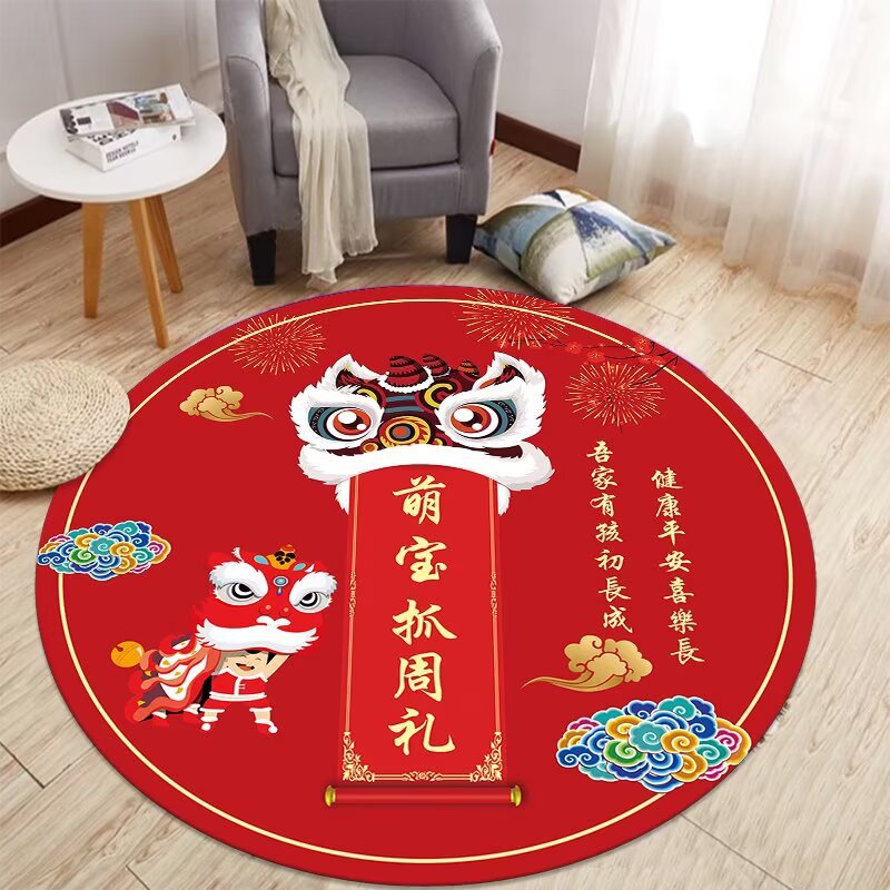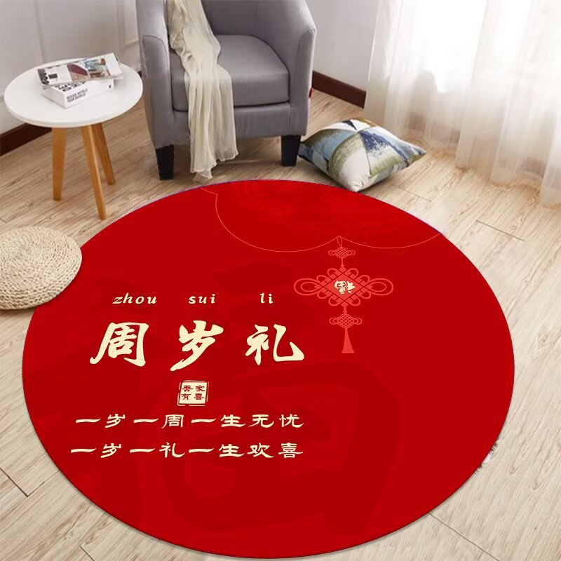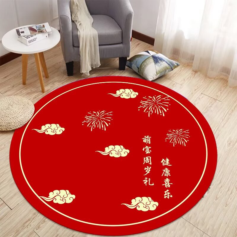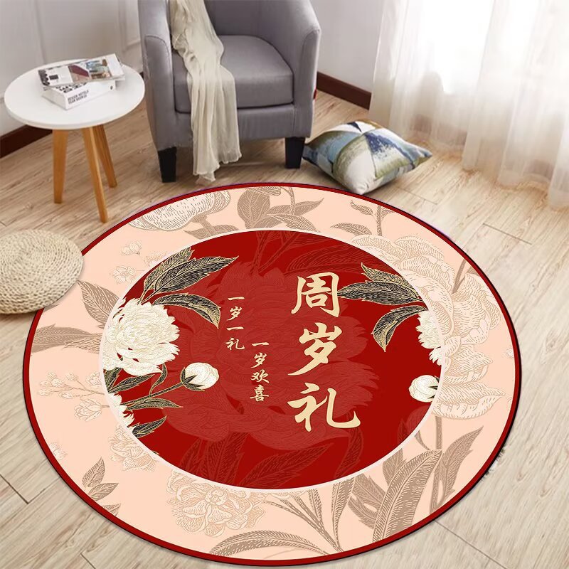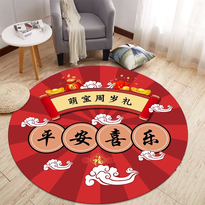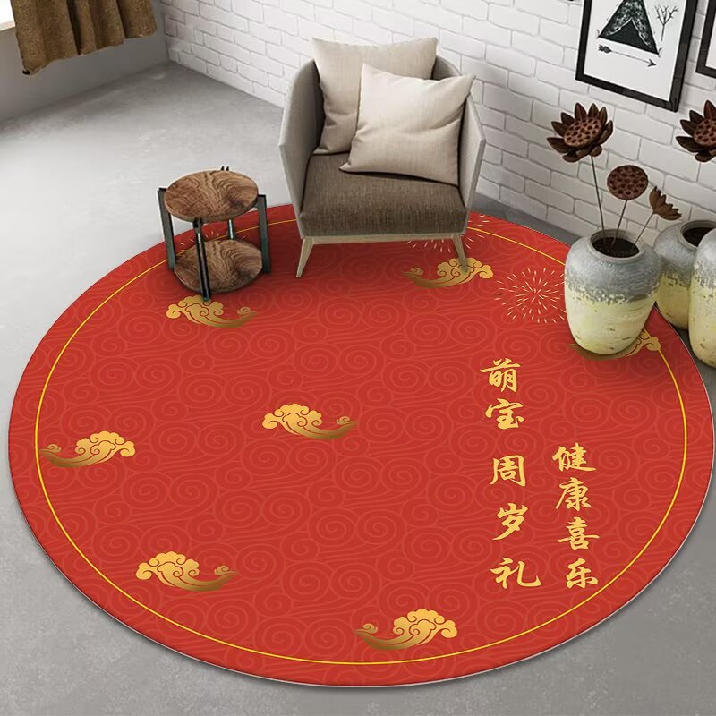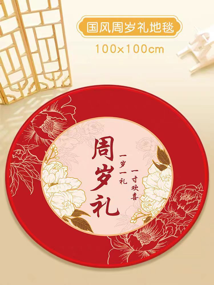 중국식 아기 첫 생일 카펫, 아기 한 살 선물, 보름달 선물, 100일 원형 레드 카펫, 새로운 중국식 바닥 매트
