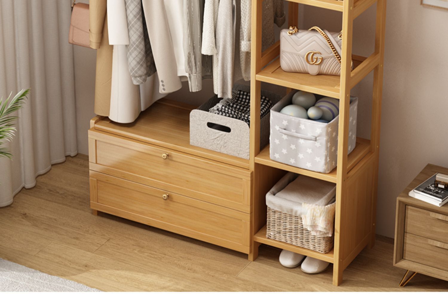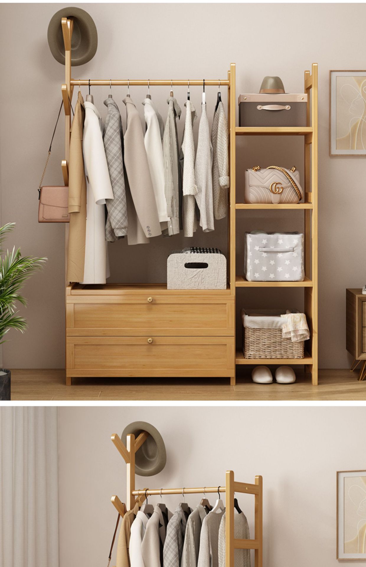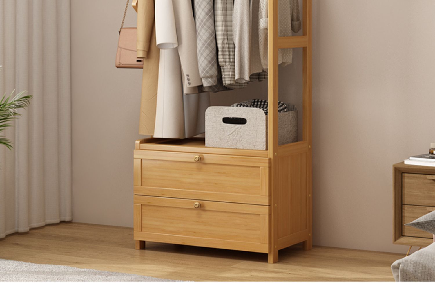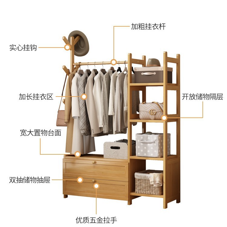 보관 캐비닛이있는 옷걸이 가정용 침실 코트 랙 간단한 방 옷 랙 보관 랙