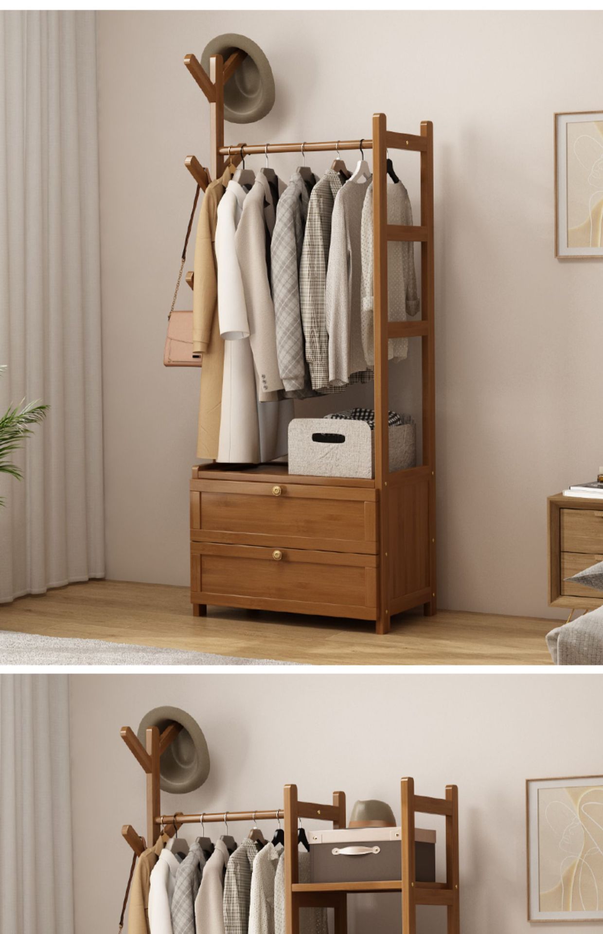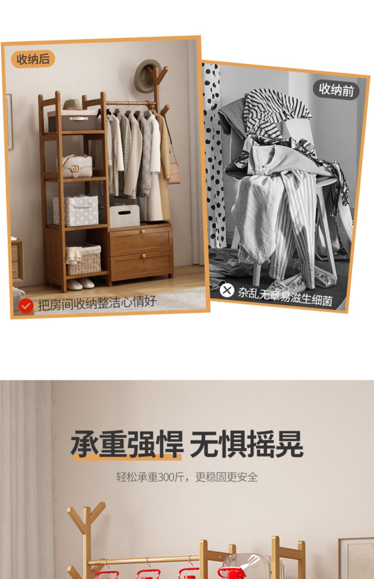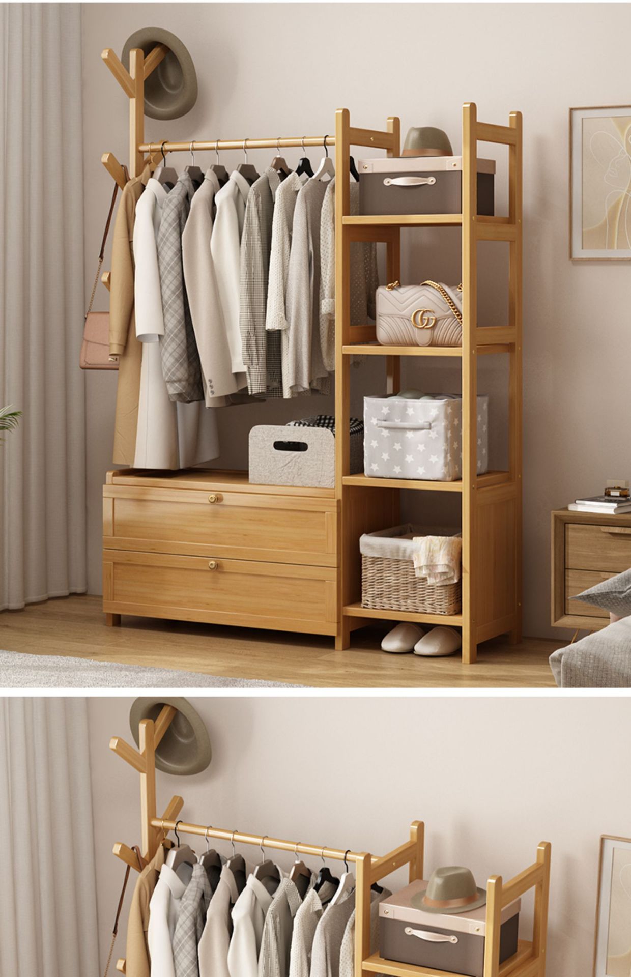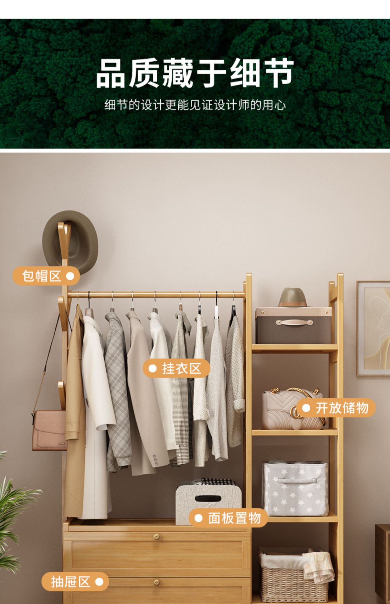 보관 캐비닛이있는 옷걸이 가정용 침실 코트 랙 간단한 방 옷 랙 보관 랙