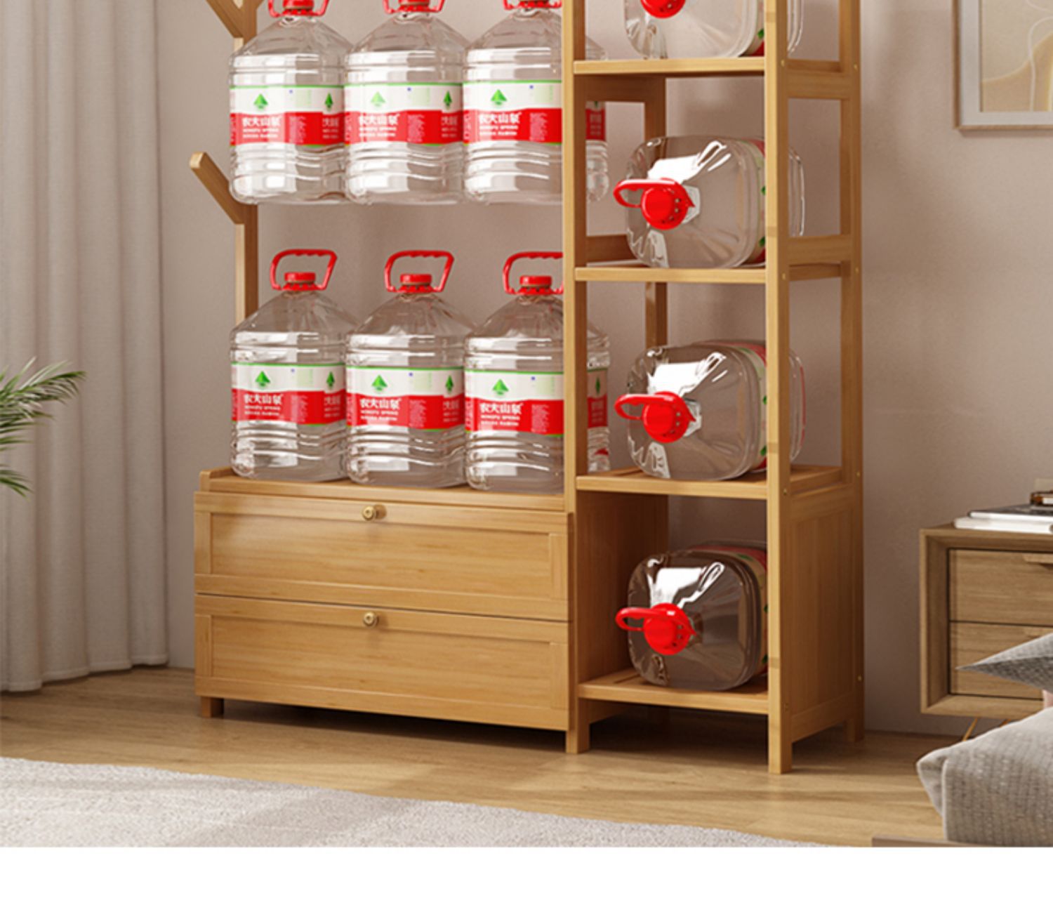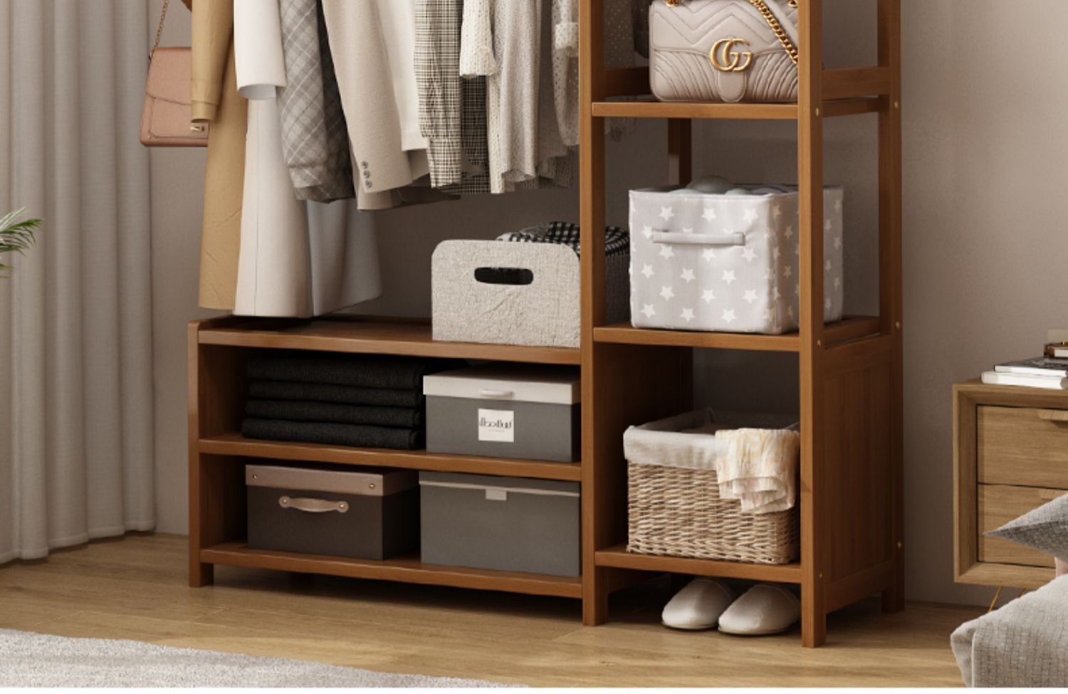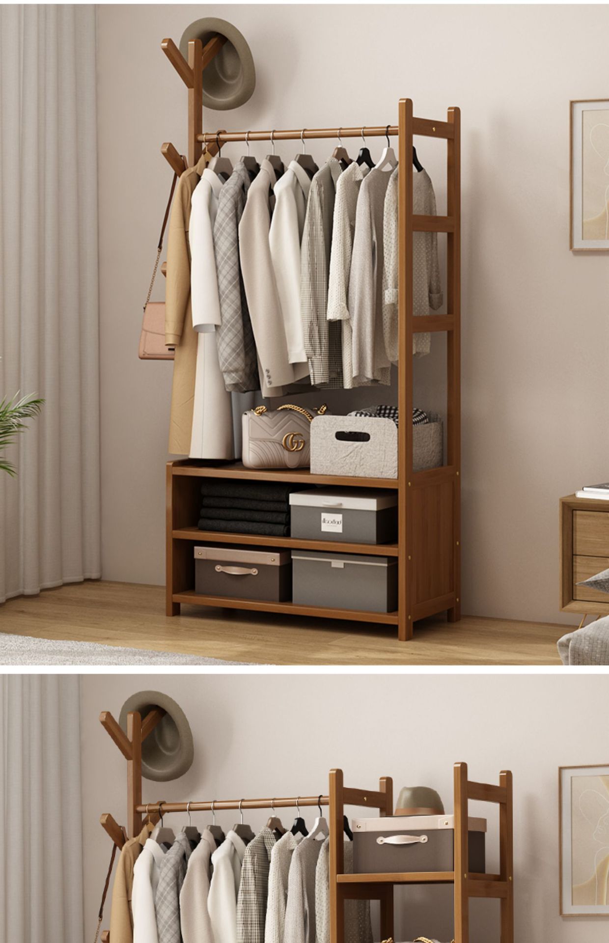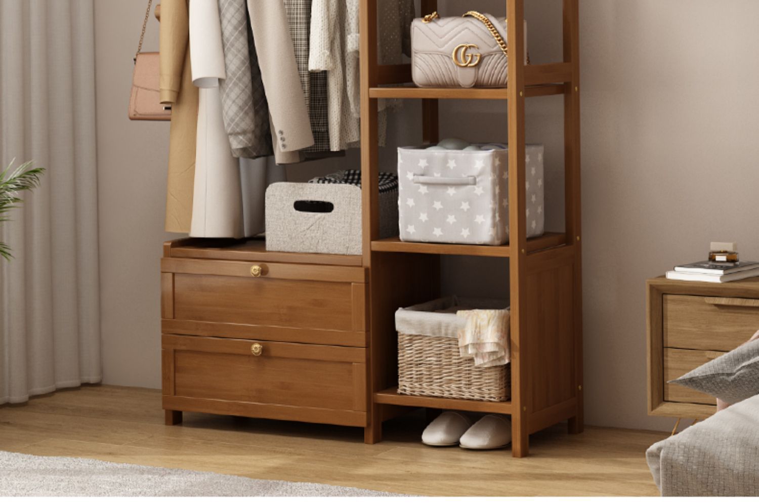 보관 캐비닛이있는 옷걸이 가정용 침실 코트 랙 간단한 방 옷 랙 보관 랙