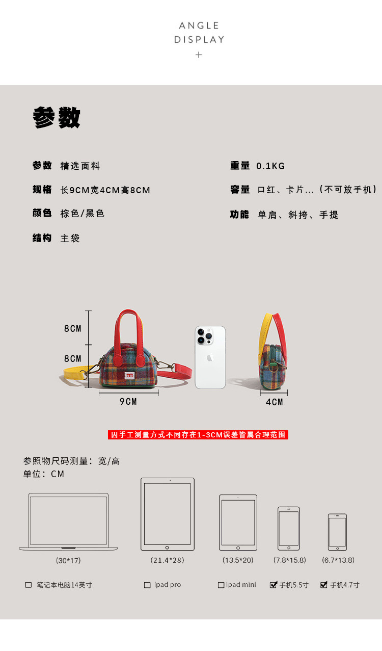 크리스마스 체크무늬 핸드백 2024 신상 샤오홍슈 동일 스타일 미니 이어폰 가방 동전 지갑 화장품 가방 핸드백