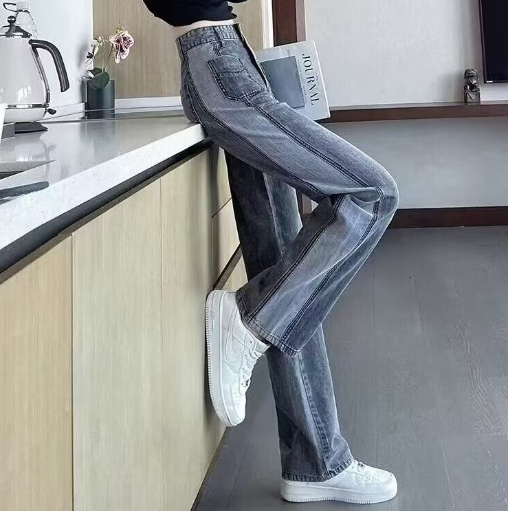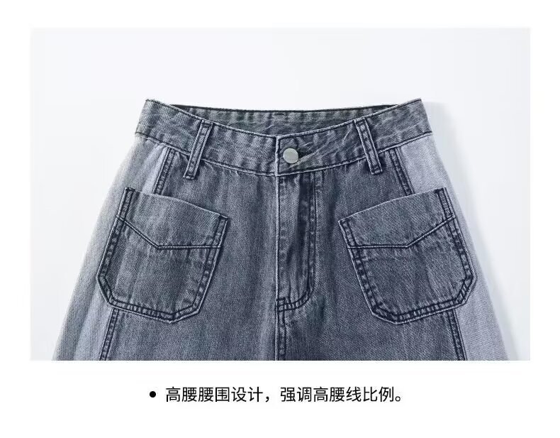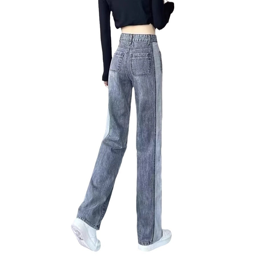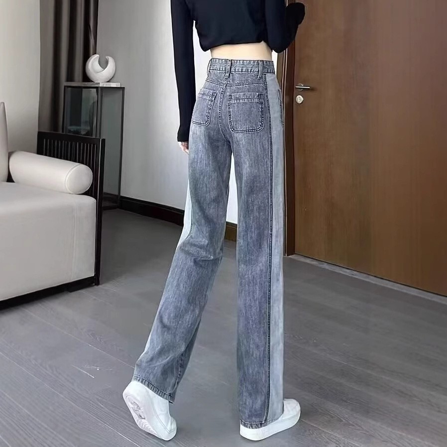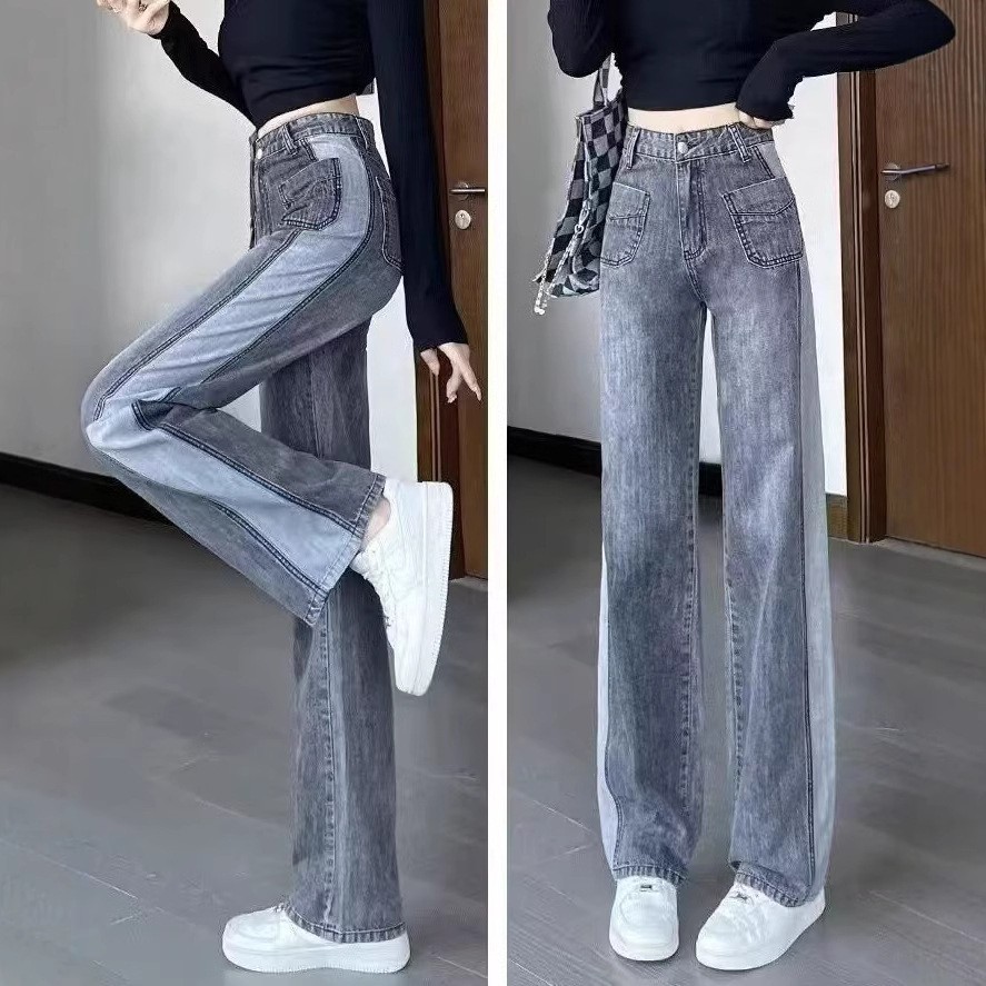 콘트라스트 컬러 레트로 하이 웨이스트 스트레이트 청바지 여성의 가을과 겨울 새로운 슬리밍 좁은 넓은 다리 플러스 사이즈 여성 의류