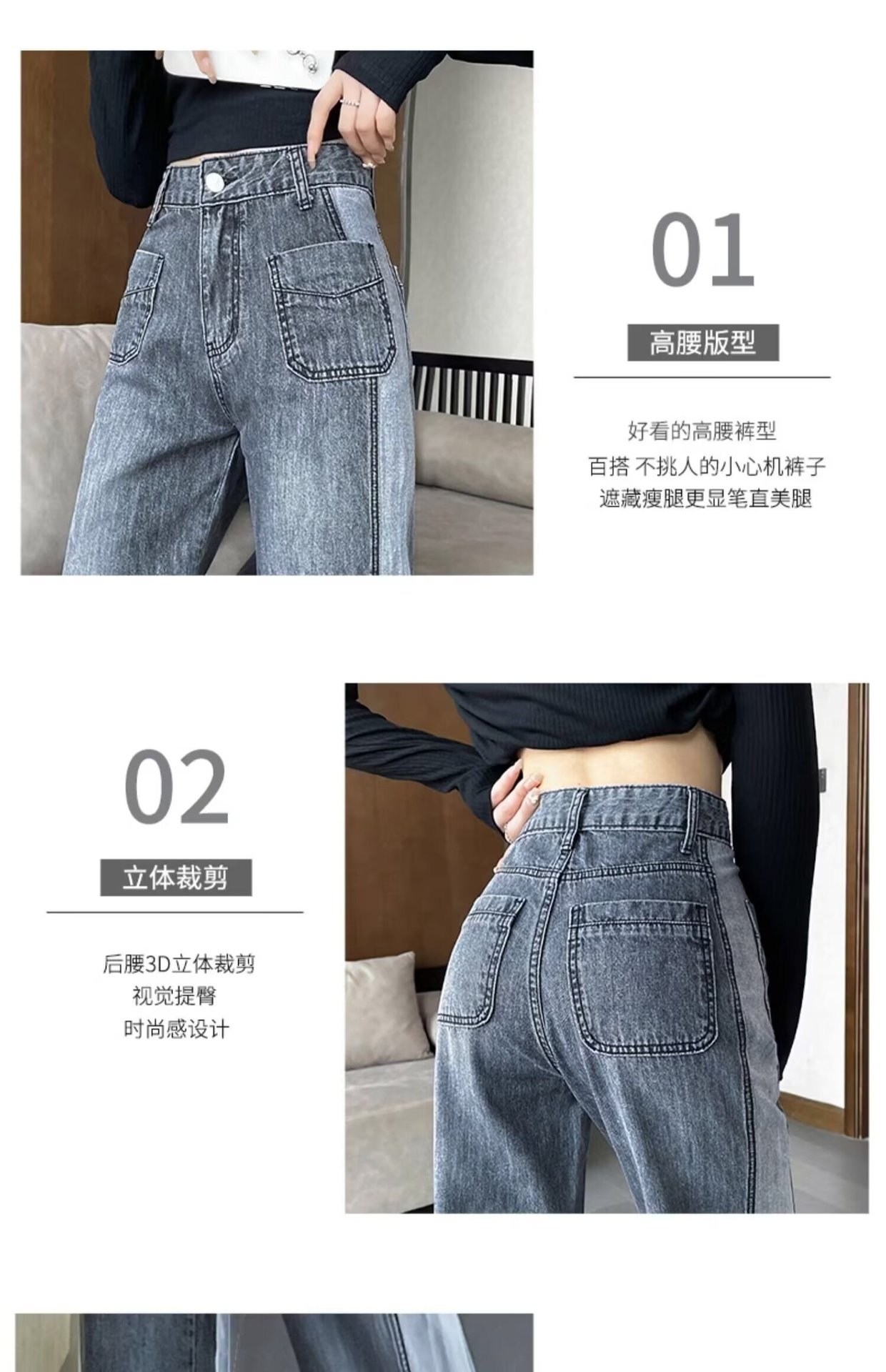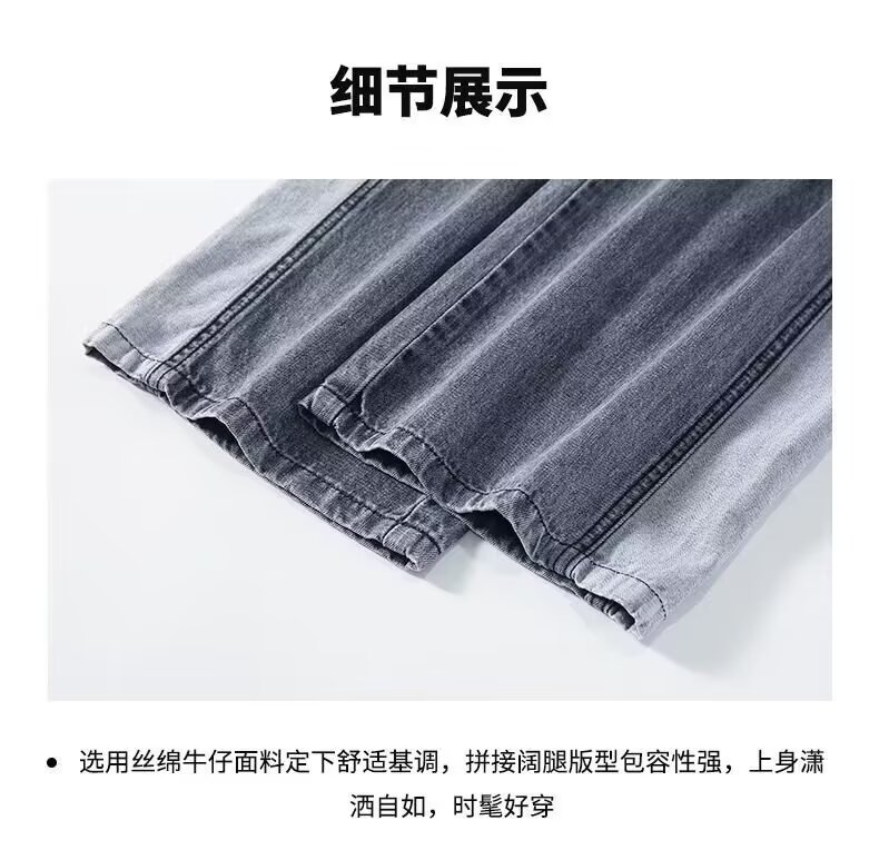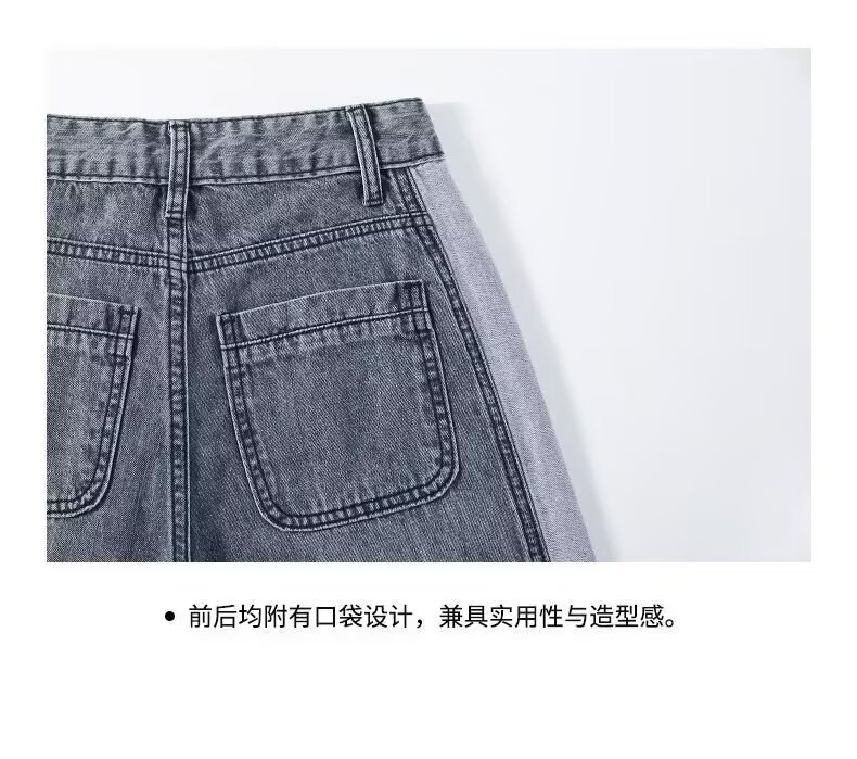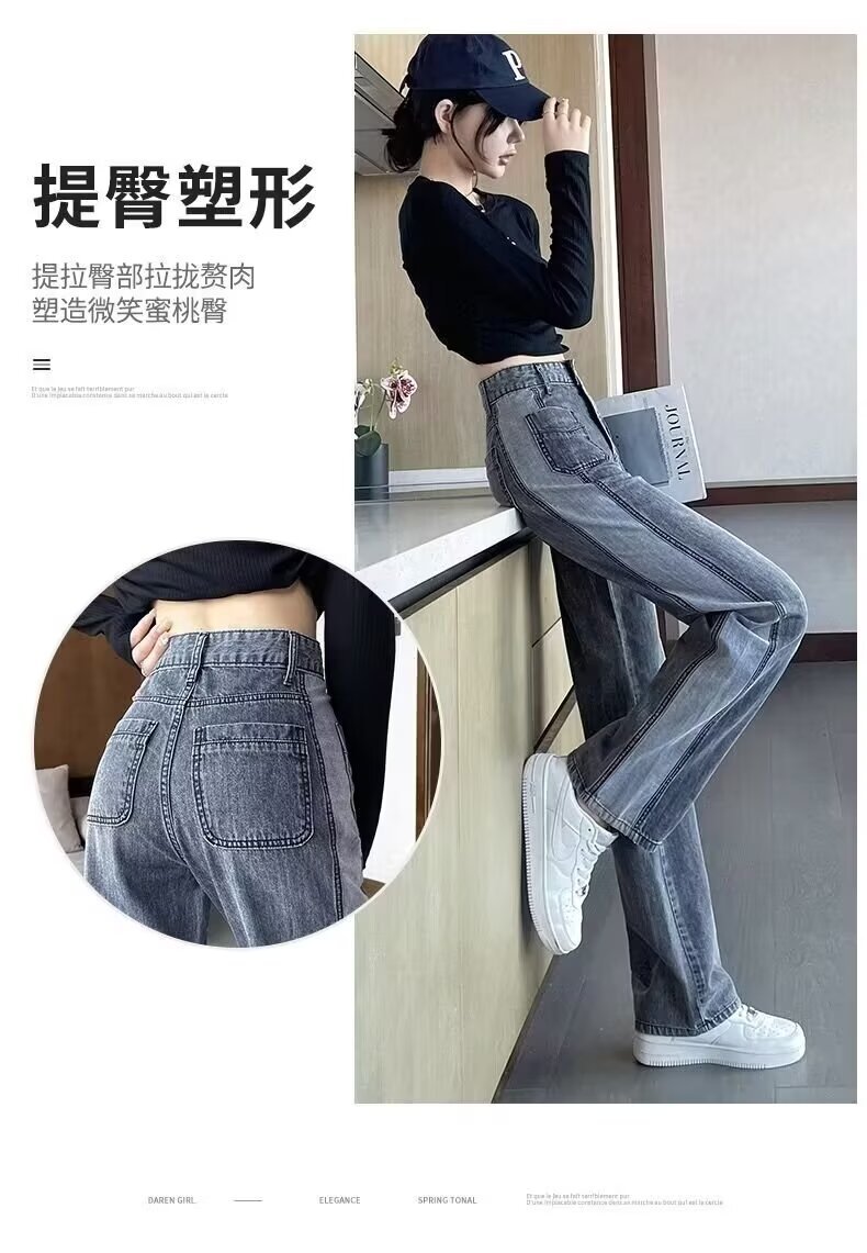 콘트라스트 컬러 레트로 하이 웨이스트 스트레이트 청바지 여성의 가을과 겨울 새로운 슬리밍 좁은 넓은 다리 플러스 사이즈 여성 의류
