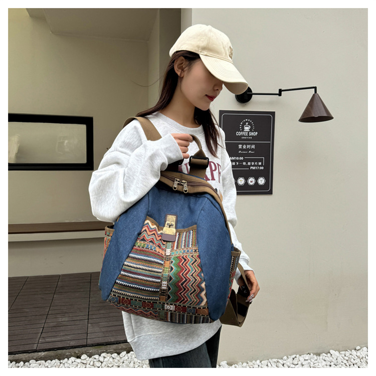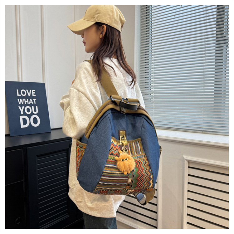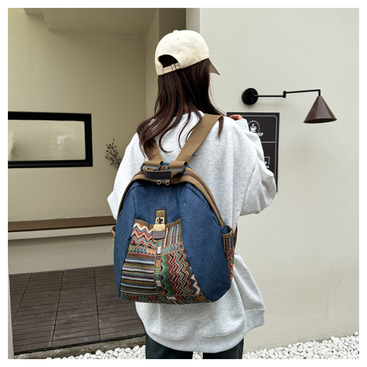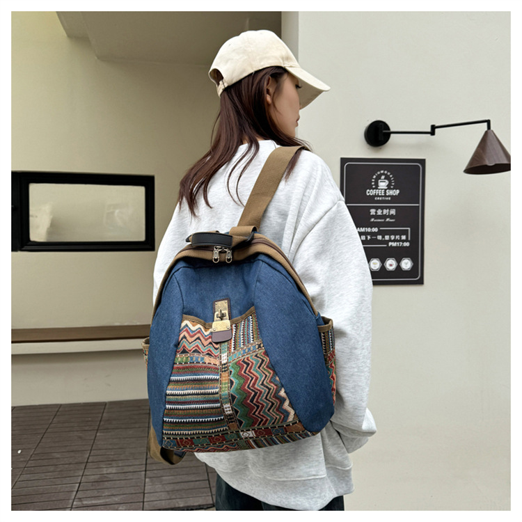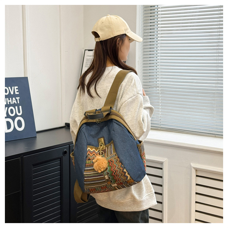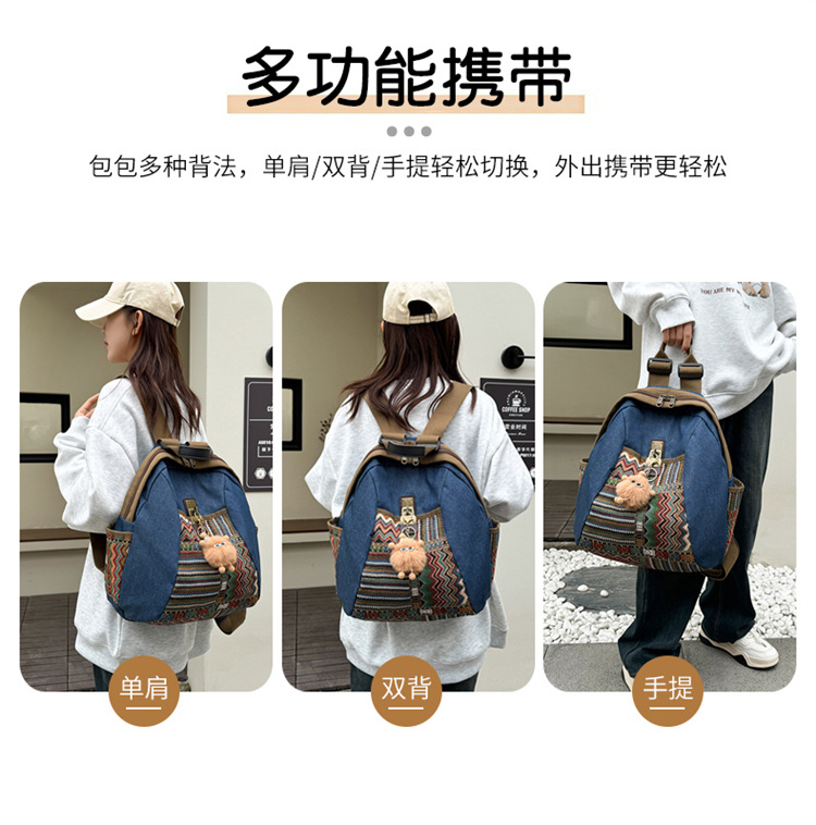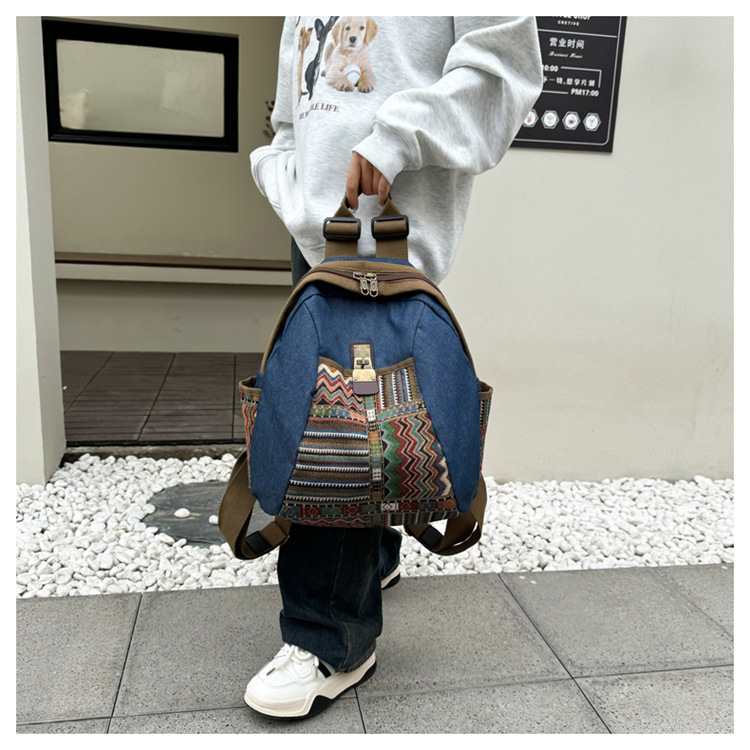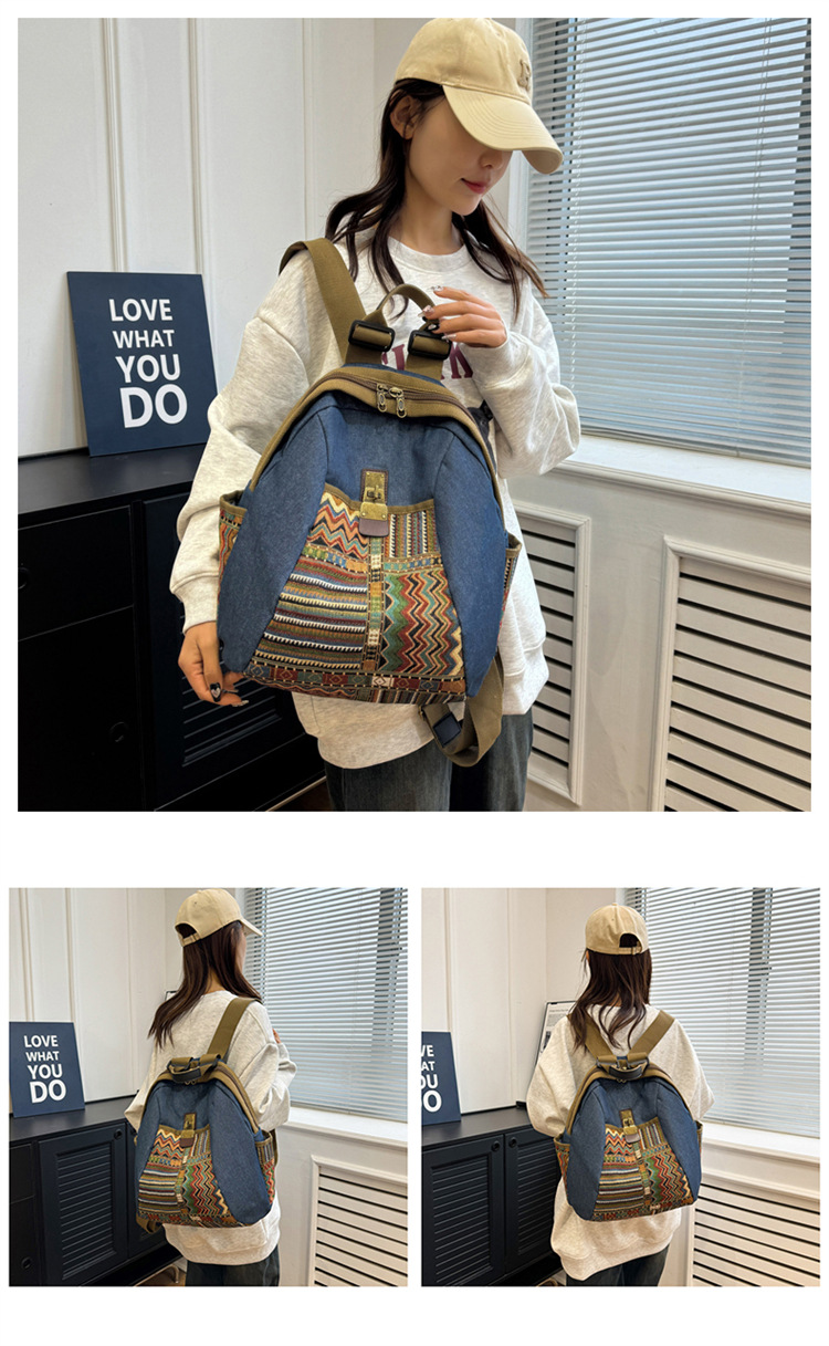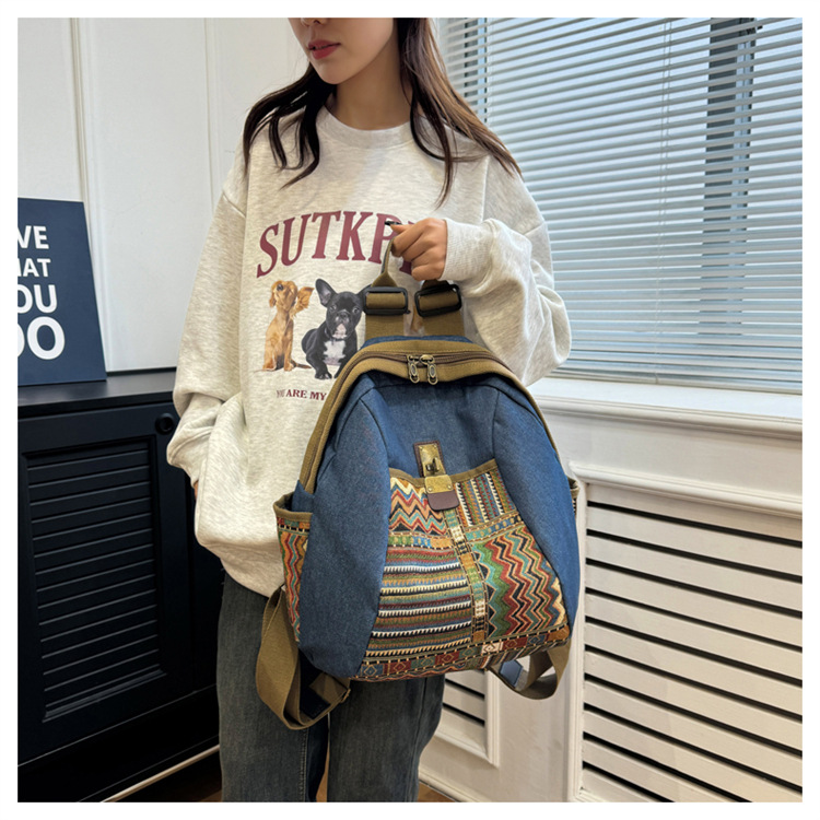 2025년 신상 민족풍 패션 데님 백팩 레트로 자수 대용량 여행 출퇴근용 백팩 여성용
