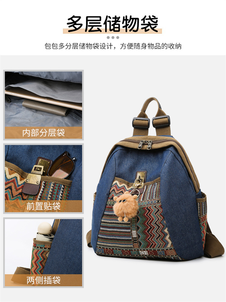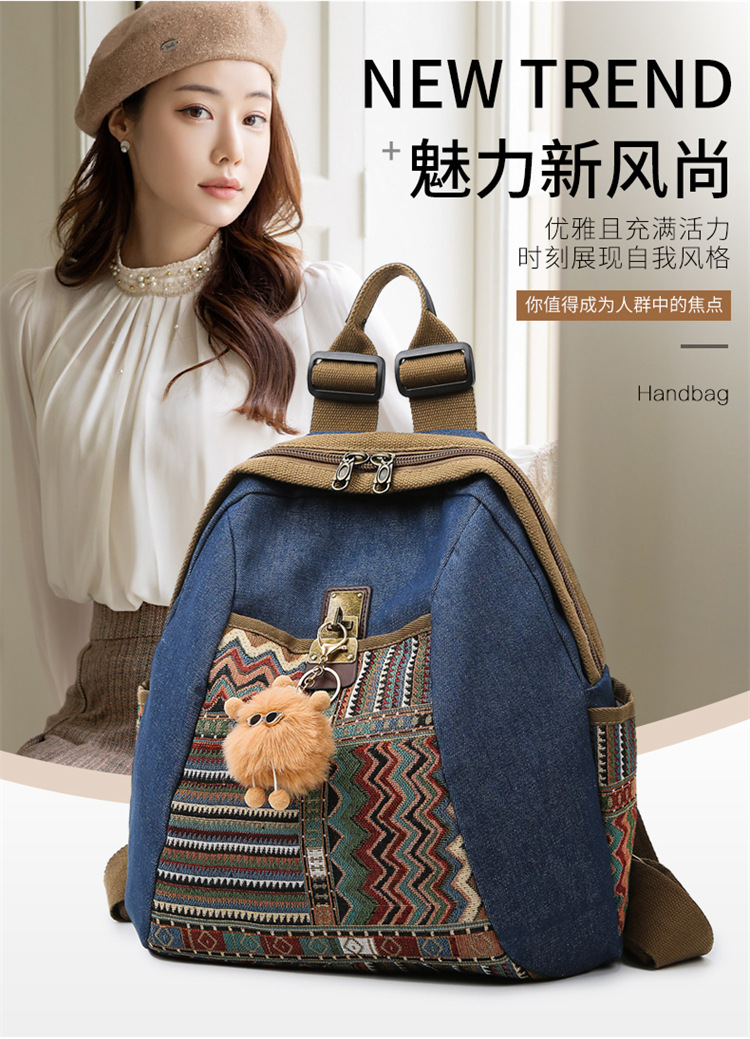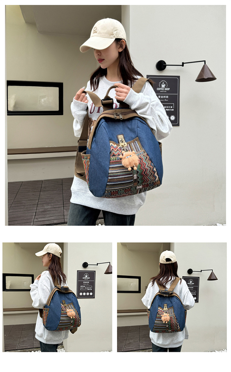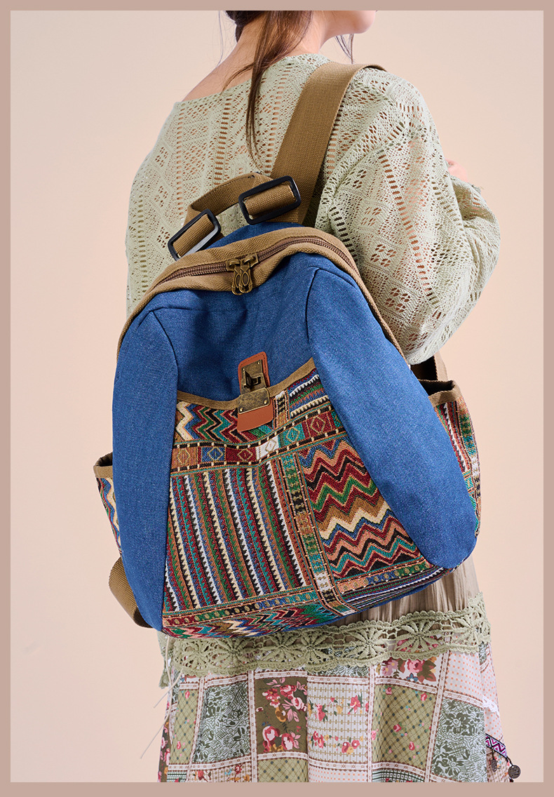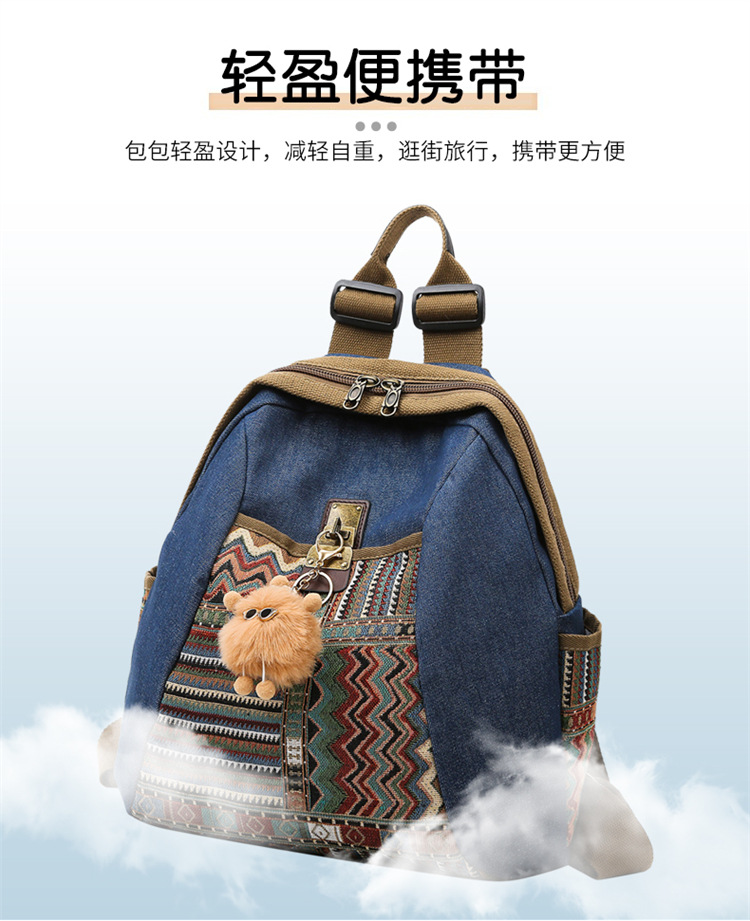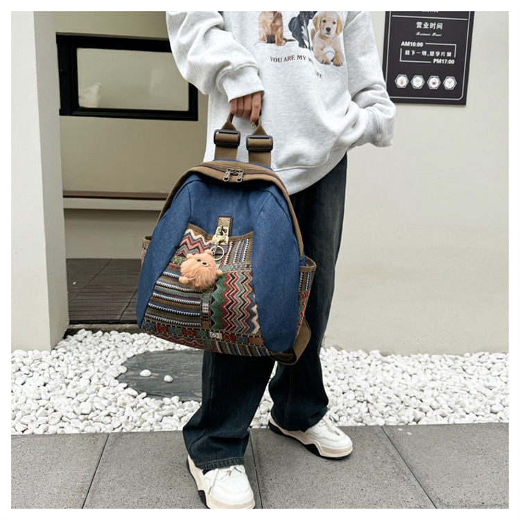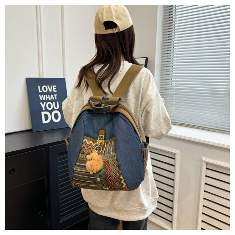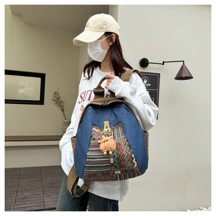 2025년 신상 민족풍 패션 데님 백팩 레트로 자수 대용량 여행 출퇴근용 백팩 여성용