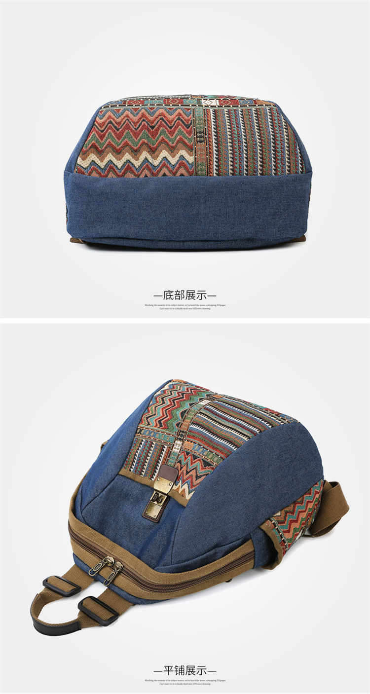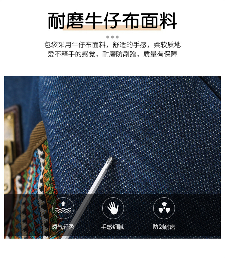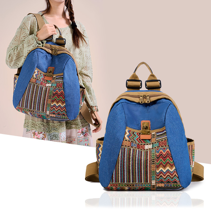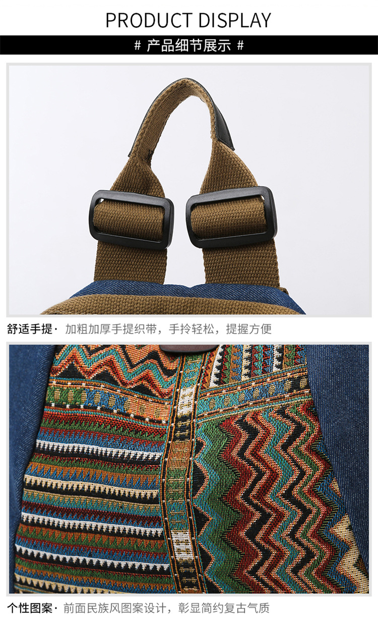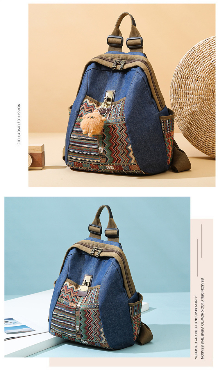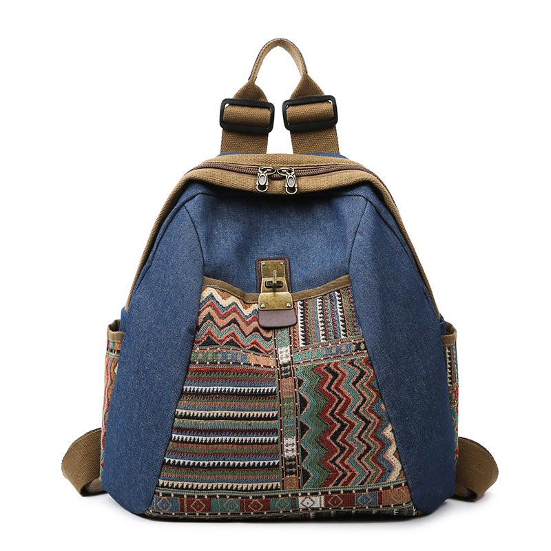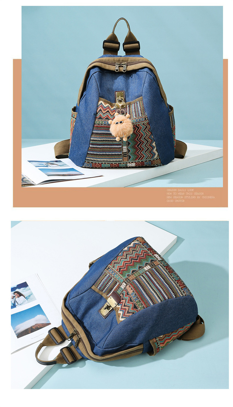 2025년 신상 민족풍 패션 데님 백팩 레트로 자수 대용량 여행 출퇴근용 백팩 여성용