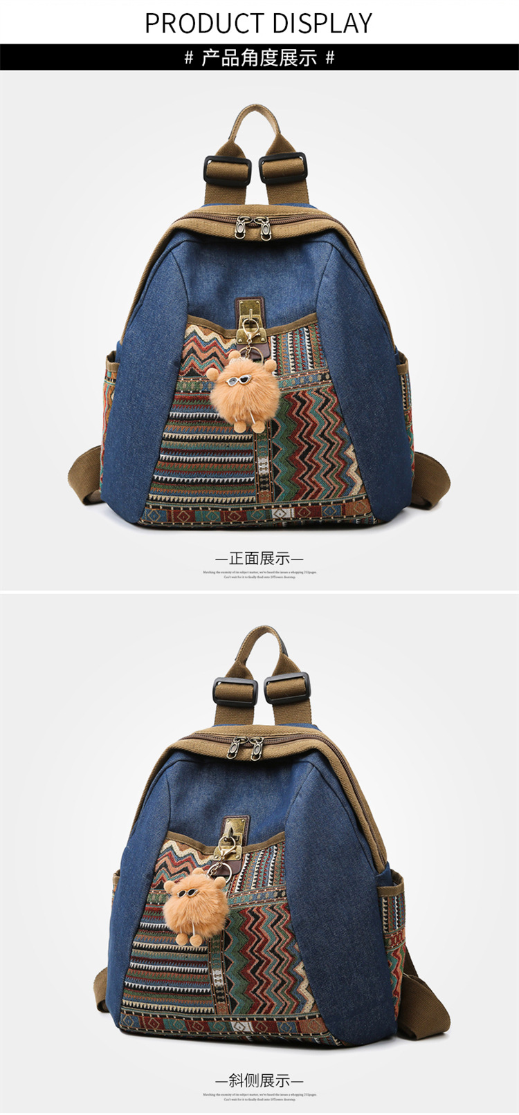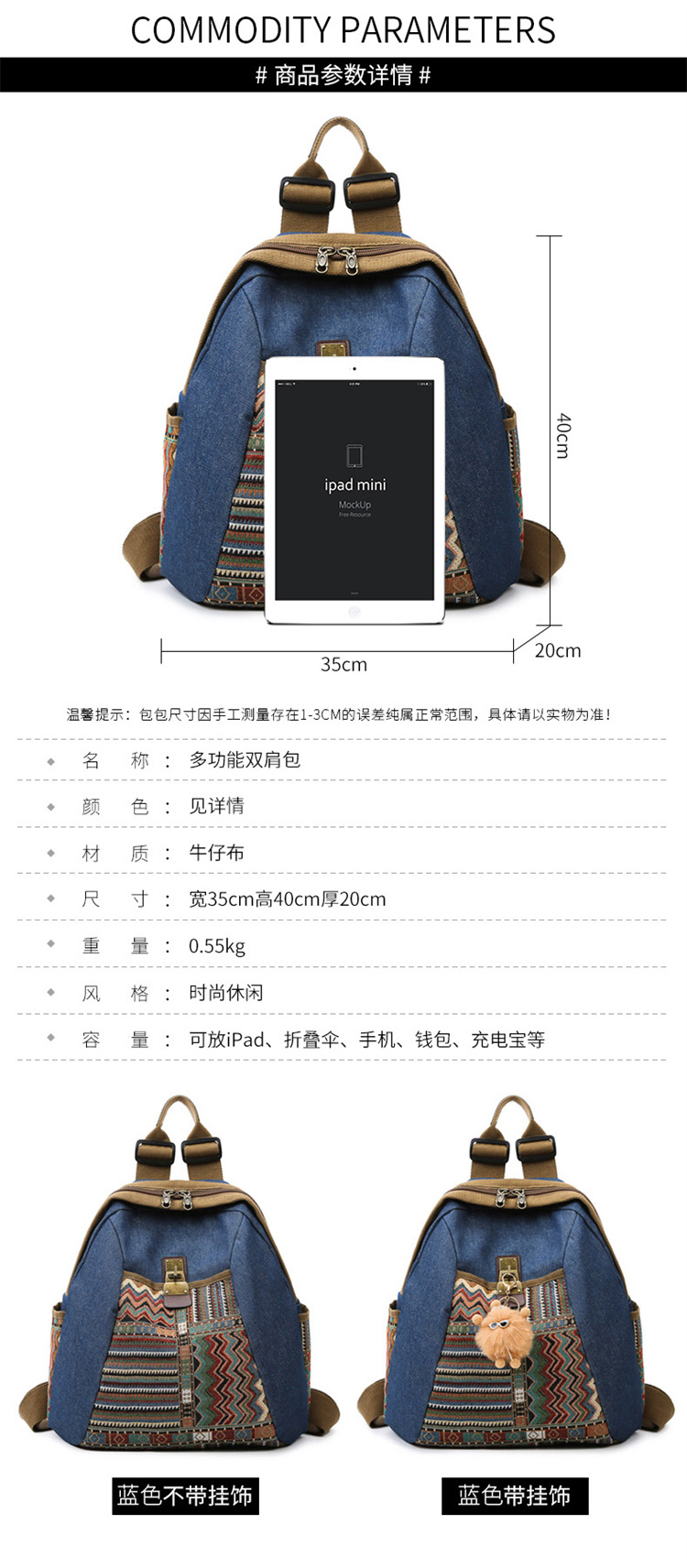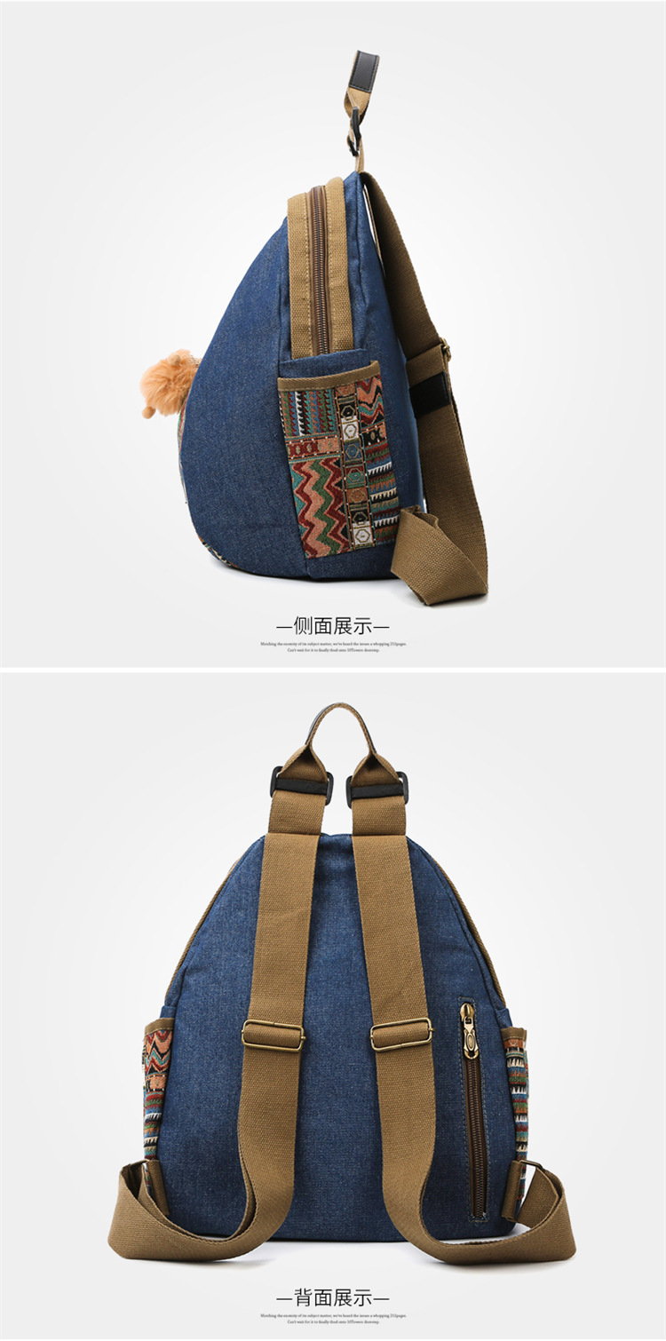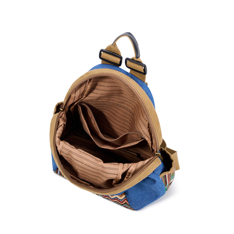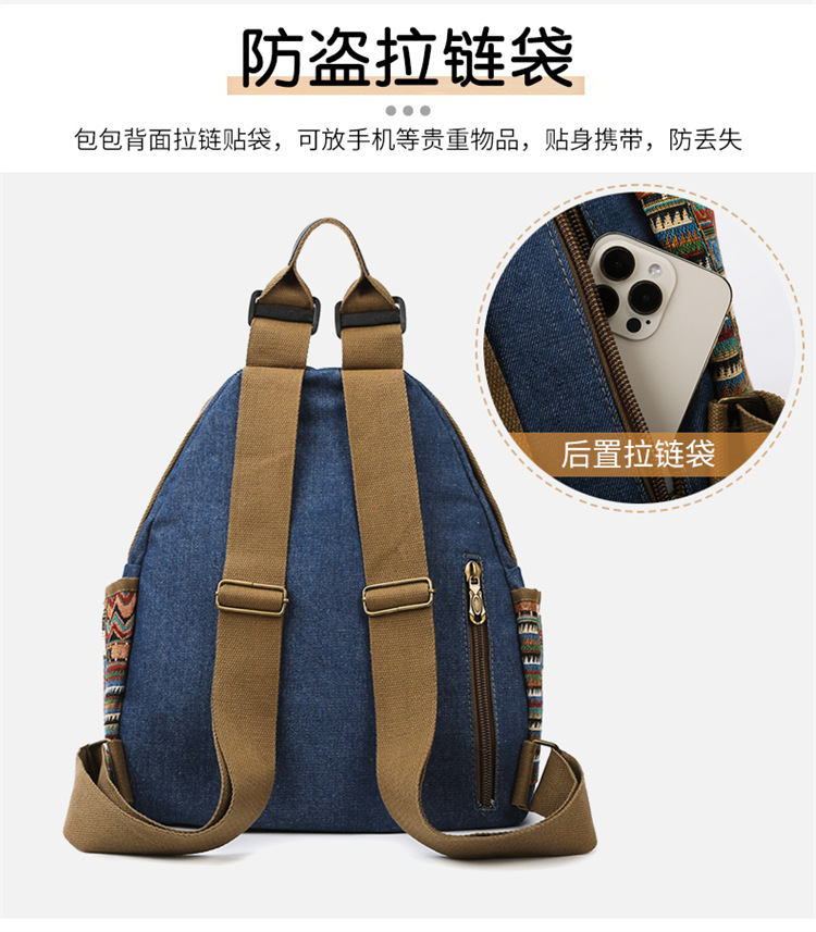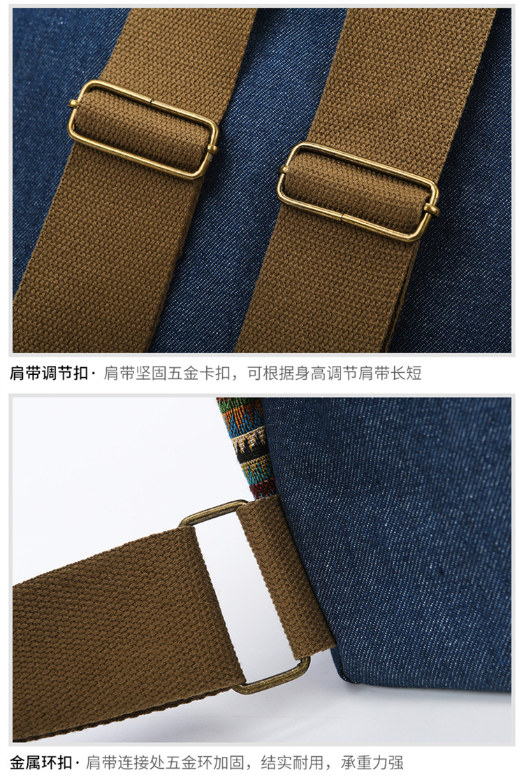 2025년 신상 민족풍 패션 데님 백팩 레트로 자수 대용량 여행 출퇴근용 백팩 여성용