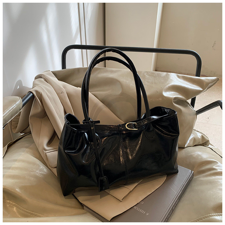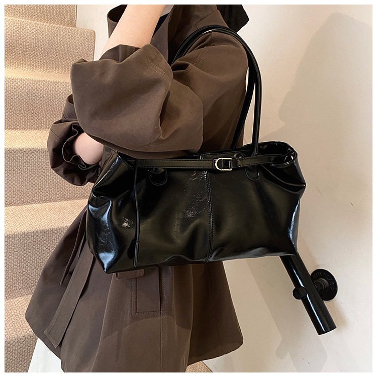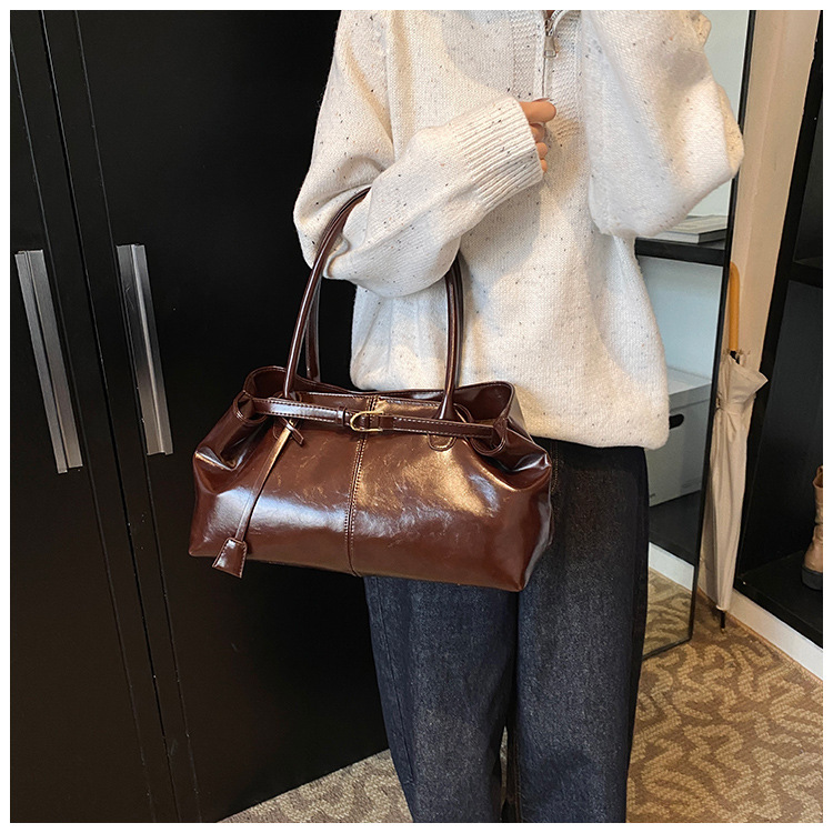 2024 새로운 보스턴 바게트 백 레트로 오토바이 스타일 헤드 레이어 오일 왁스 가죽 여성 가방 캐주얼 크로스 바디 숄더 백