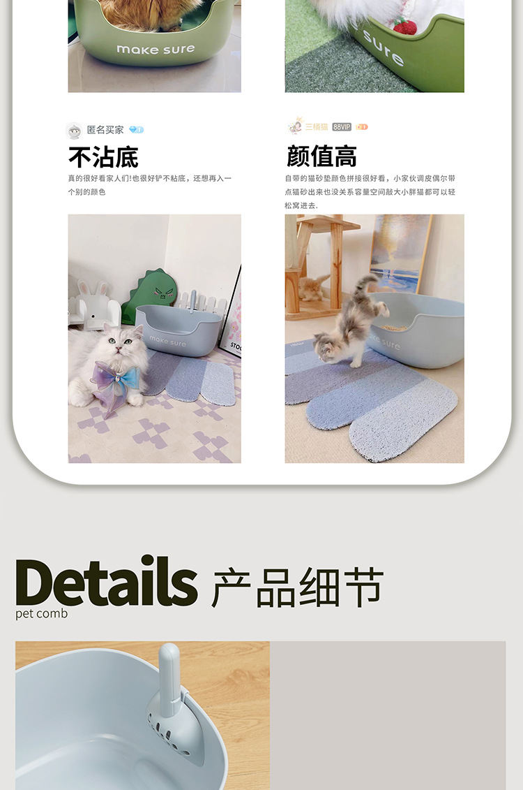마시멜로 고양이 화장실, 새끼 고양이용 깊은 변기, 튐 방지, 완전 개방형 특허 디자인