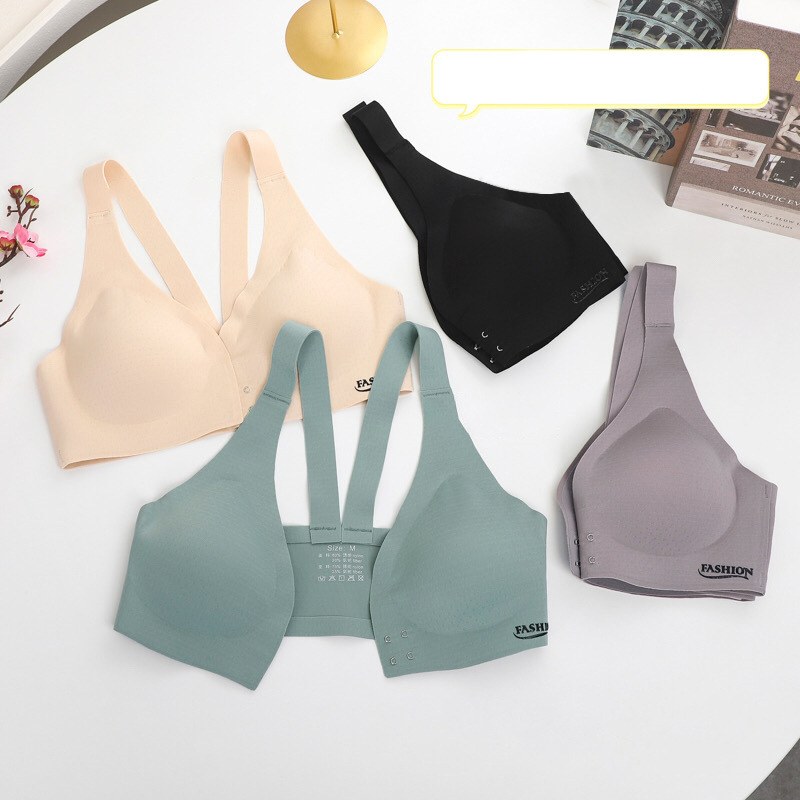 추천 프론트 오픈 버튼 아이스 실크 아름다운 등 속옷 여성의 작은 가슴 비 림리스 푸시 업 브래지어 얇은 조정 가능한 트레이스 브라