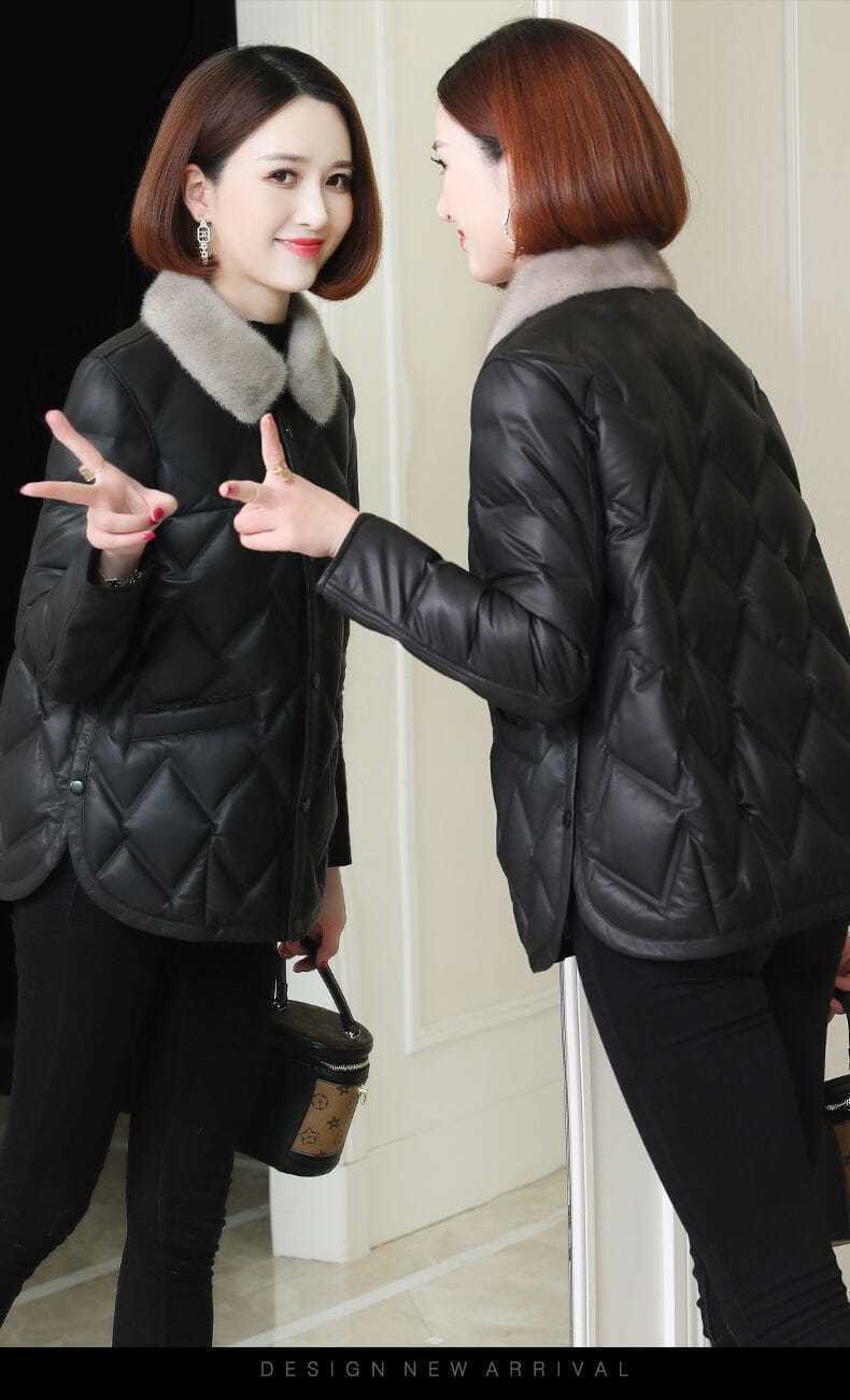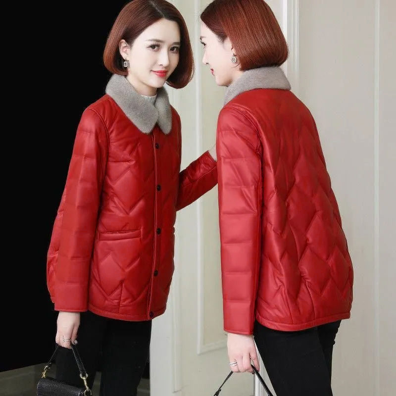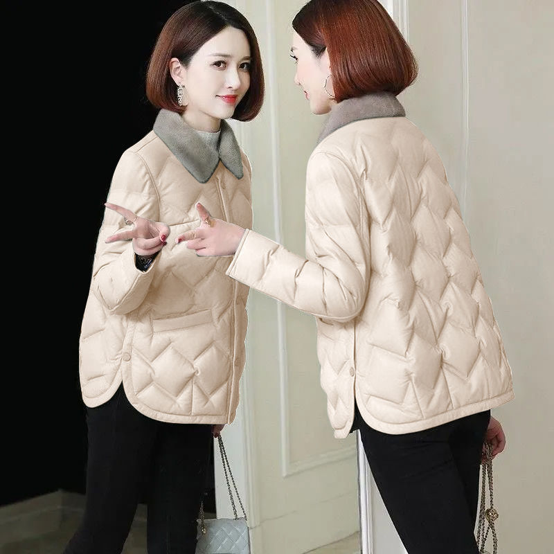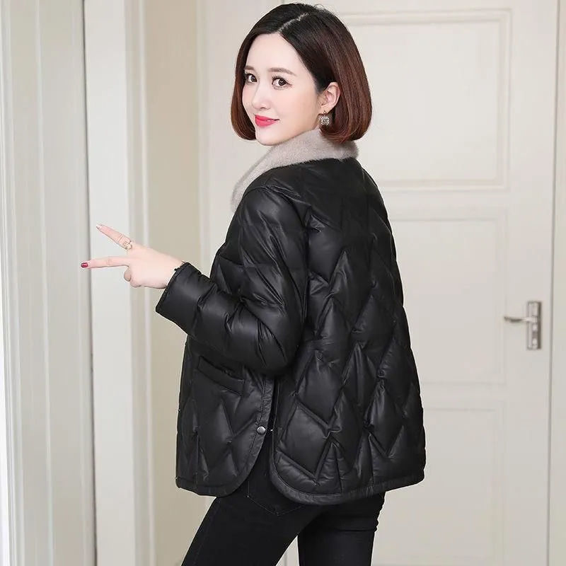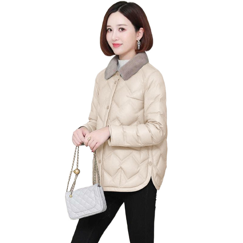 모조 밍크 모피 칼라 다운 코트 2024 가을과 겨울 새로운 경량 쇼트 코트 두꺼운 따뜻한 코튼 코트