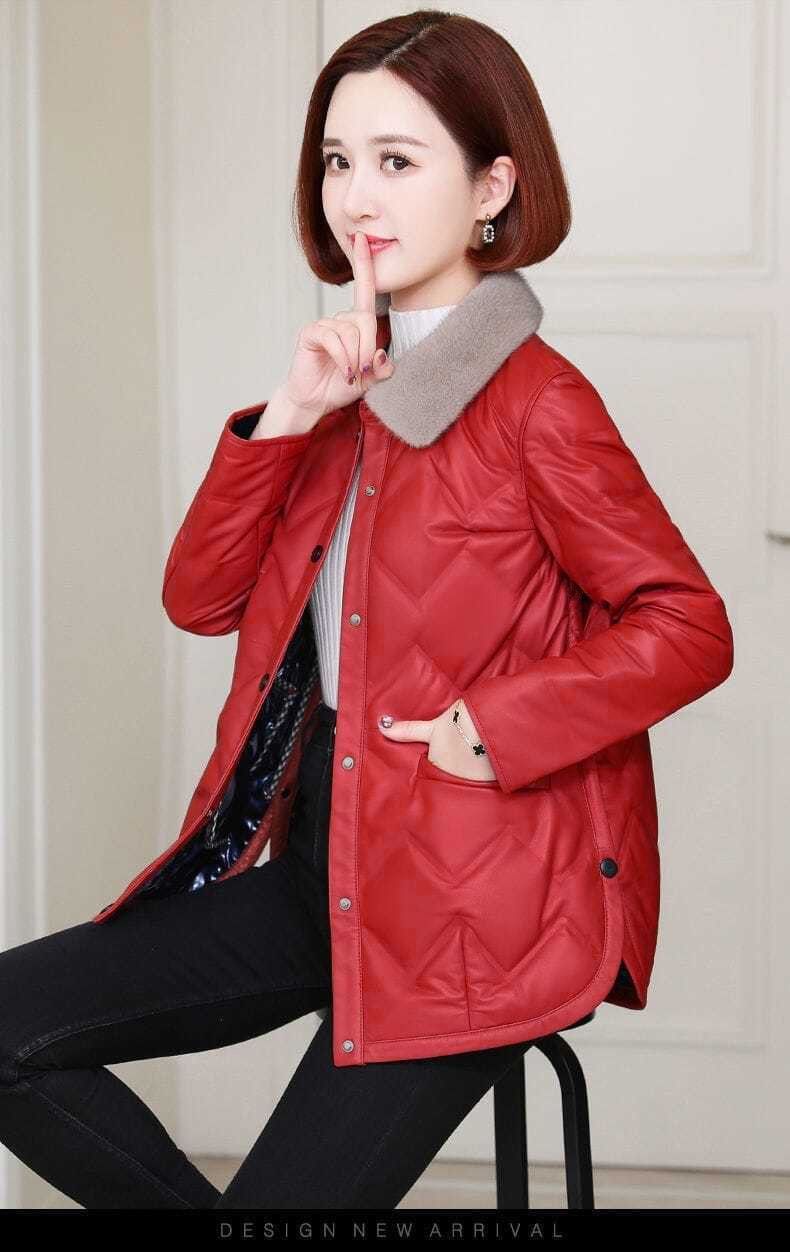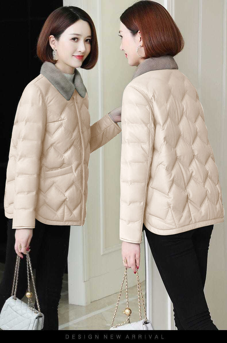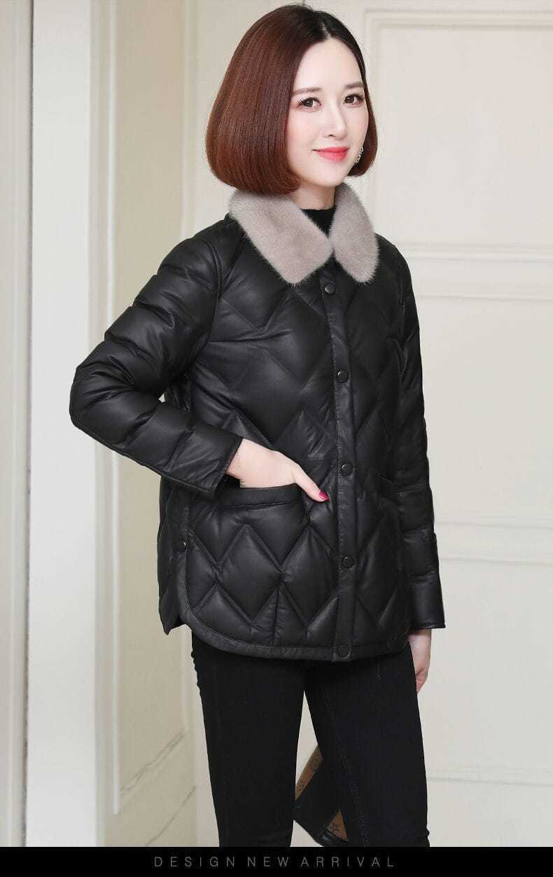 모조 밍크 모피 칼라 다운 코트 2024 가을과 겨울 새로운 경량 쇼트 코트 두꺼운 따뜻한 코튼 코트
