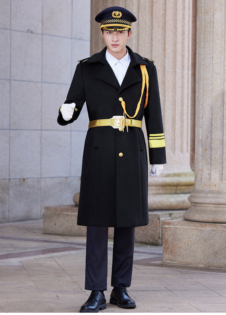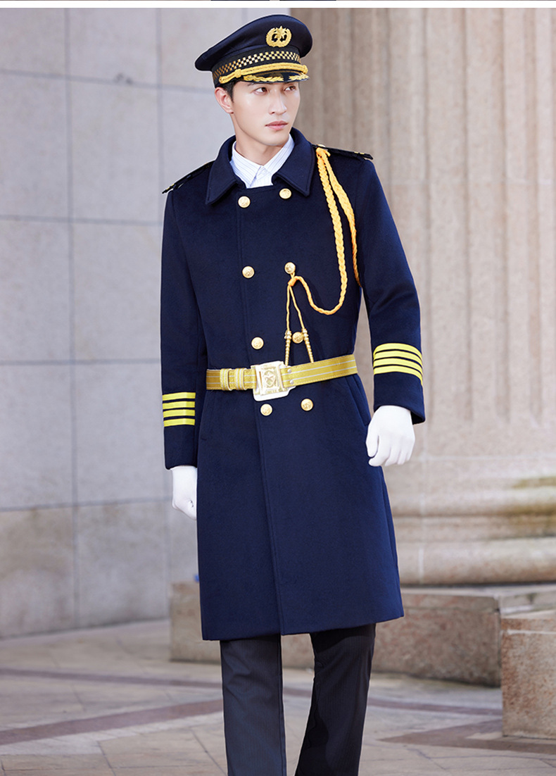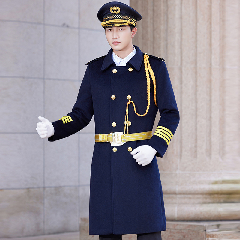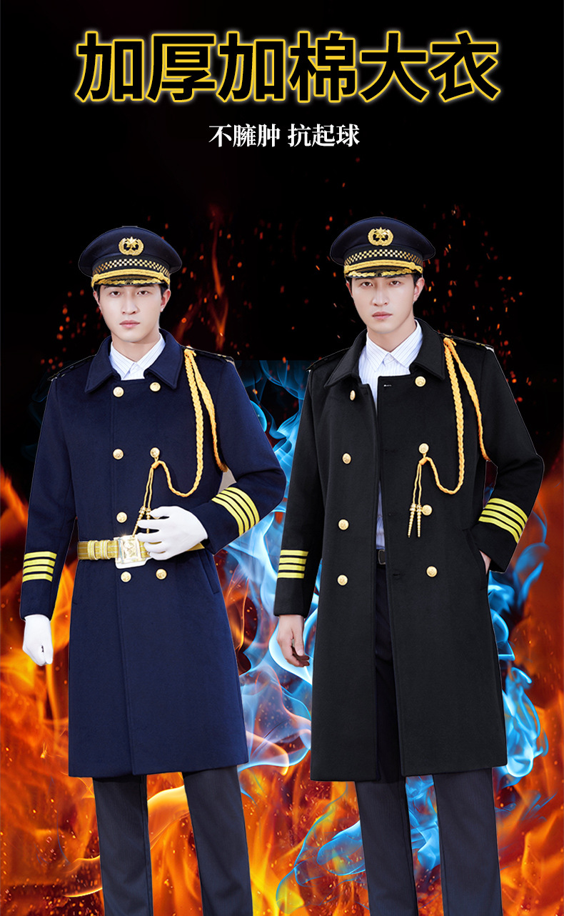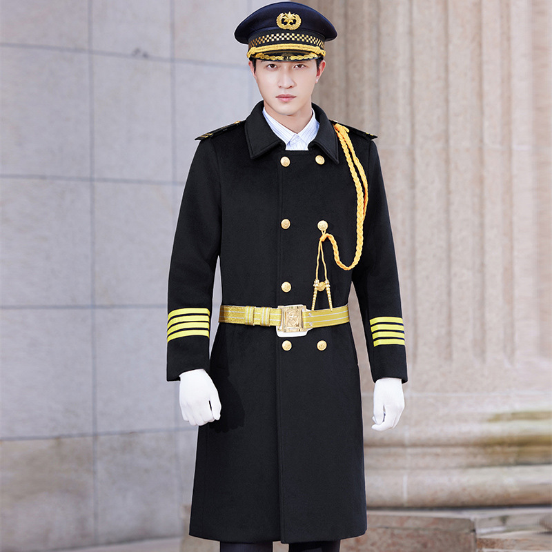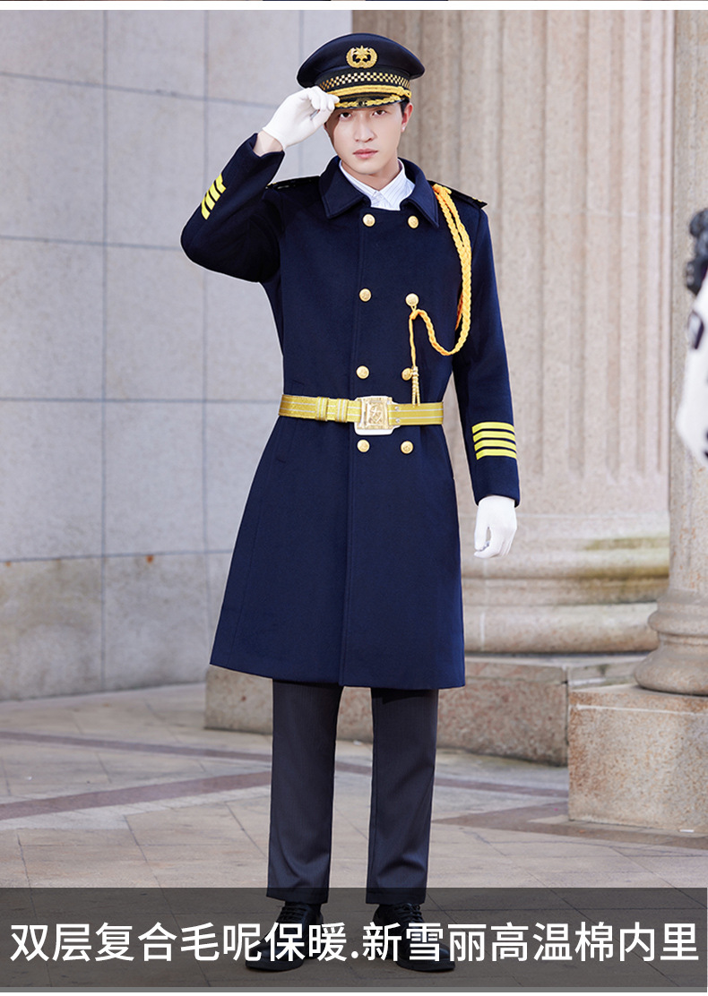 윈터 호텔 부동산 이미지 포스트 보안 작업 유니폼 재킷 코튼 두꺼운 더블 브레스트 남성용 모직 코트
