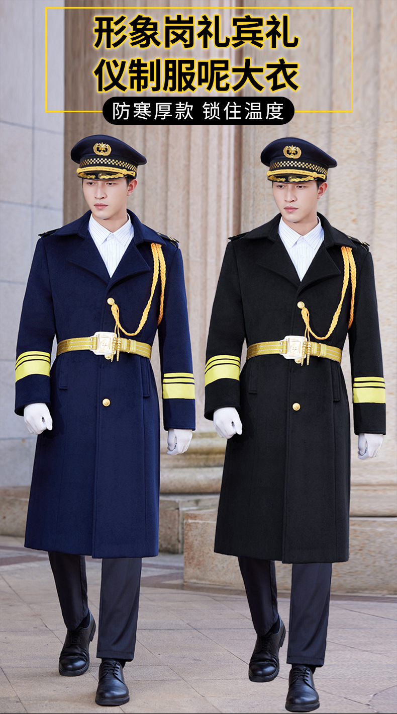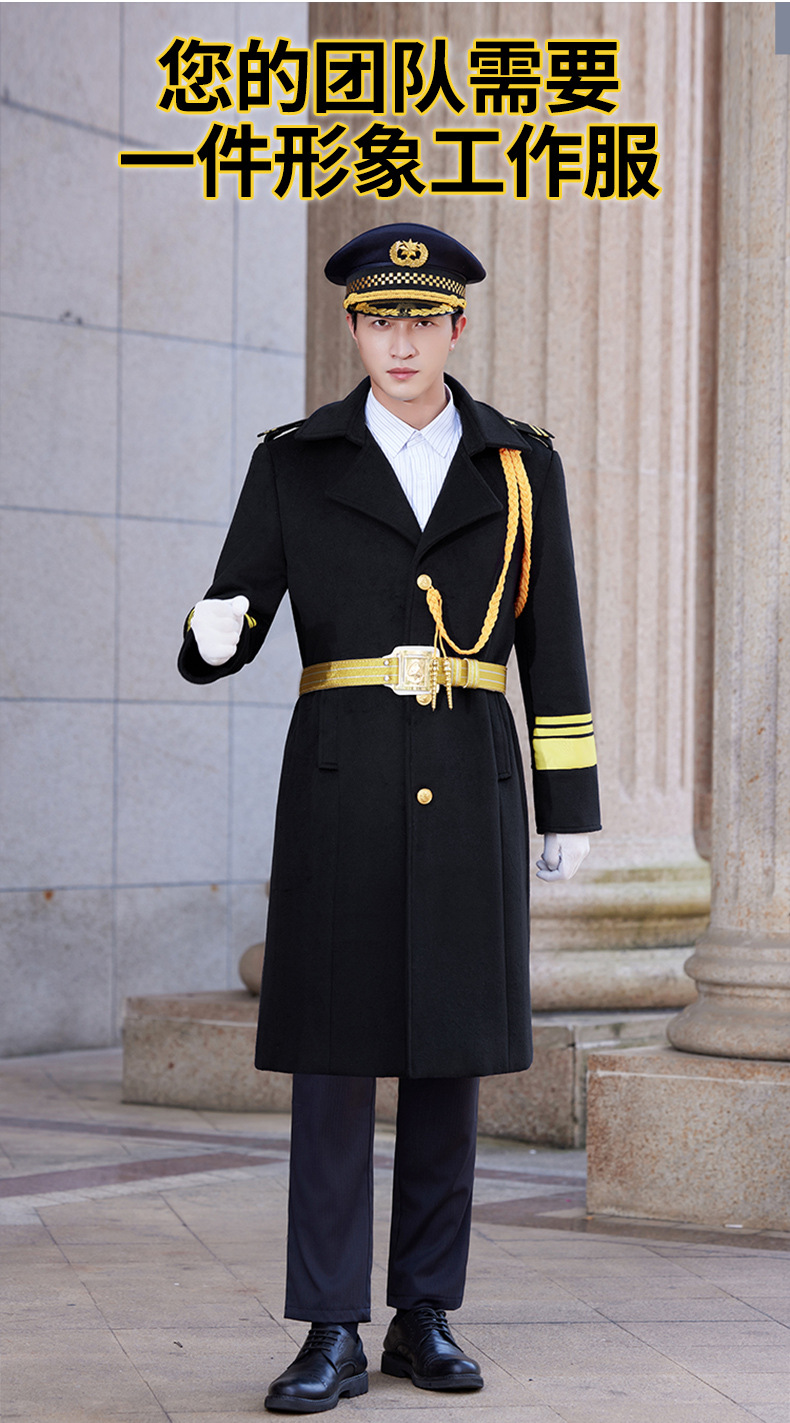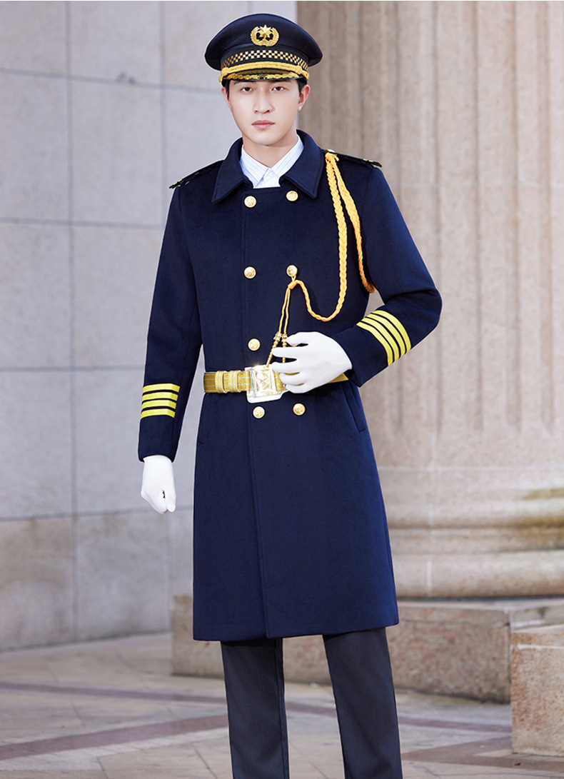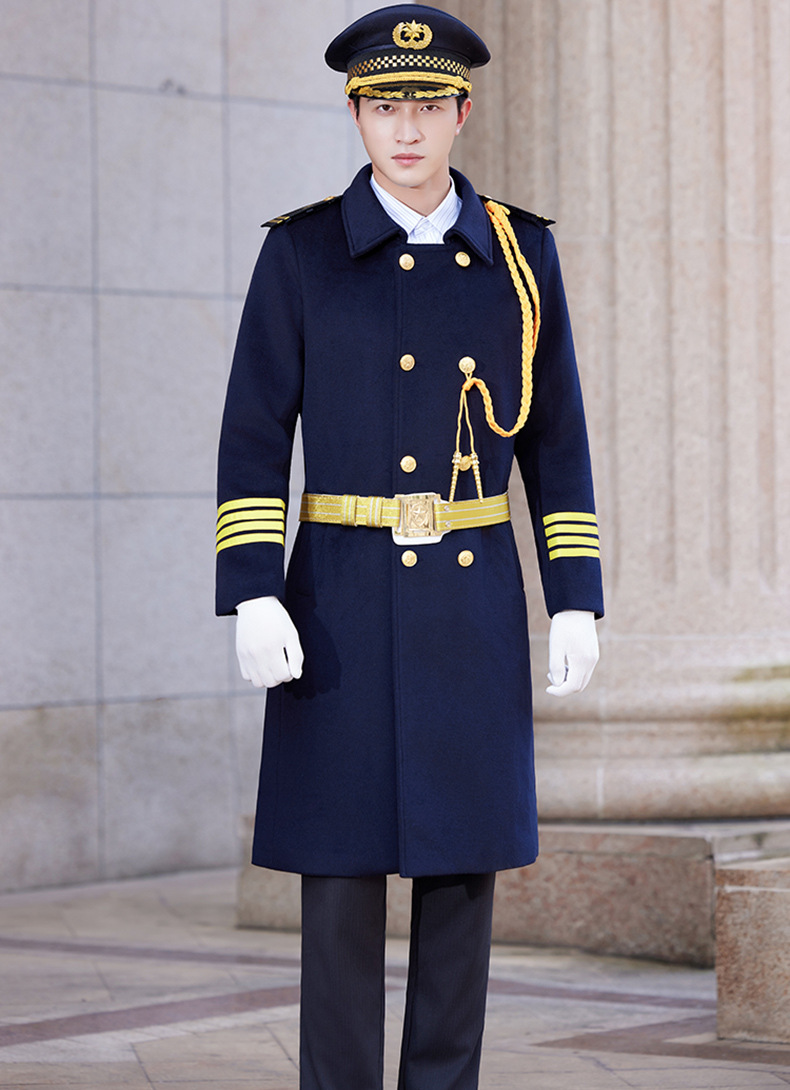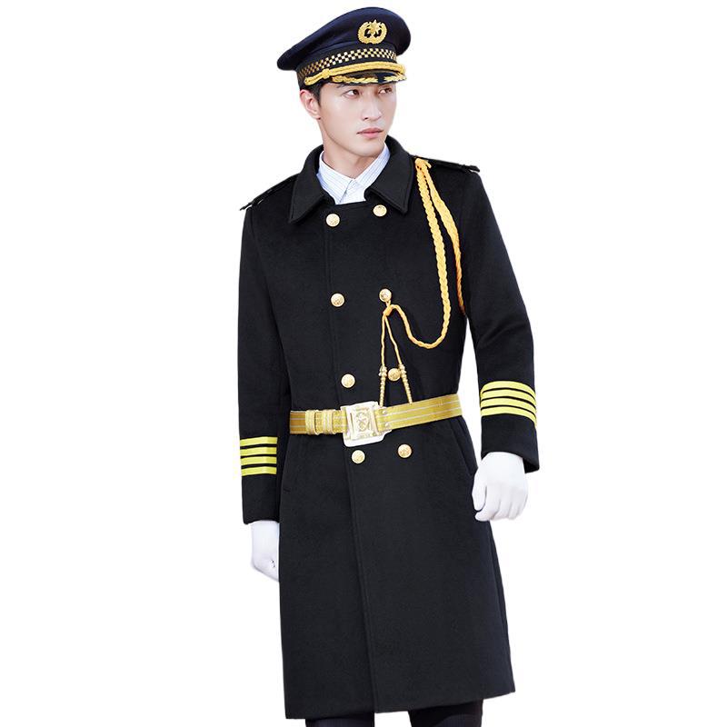 윈터 호텔 부동산 이미지 포스트 보안 작업 유니폼 재킷 코튼 두꺼운 더블 브레스트 남성용 모직 코트