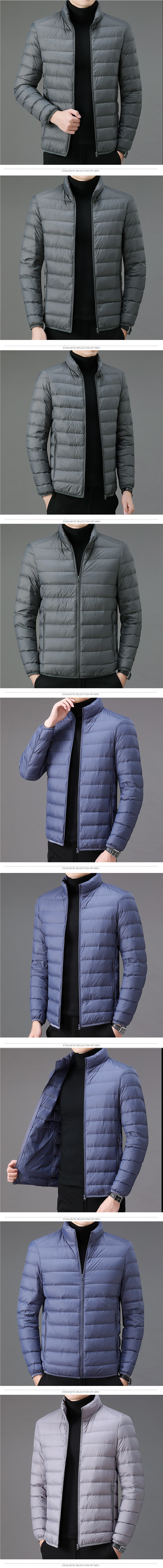 2024 겨울 새로운 빛과 얇은 다운 재킷 남자의 단색 경량 칼라 90 흰색 오리 아래 짧은 따뜻한 재킷 T