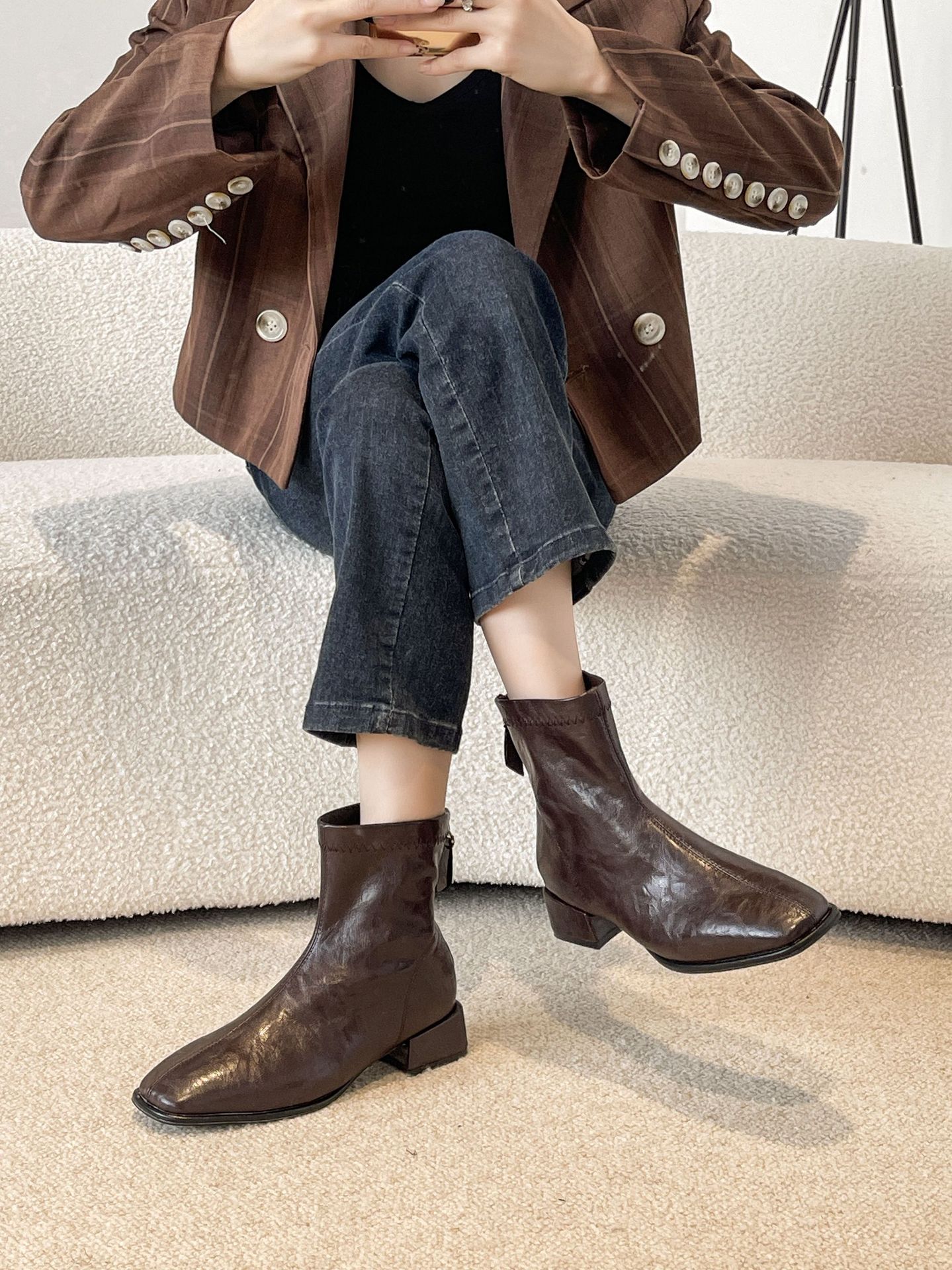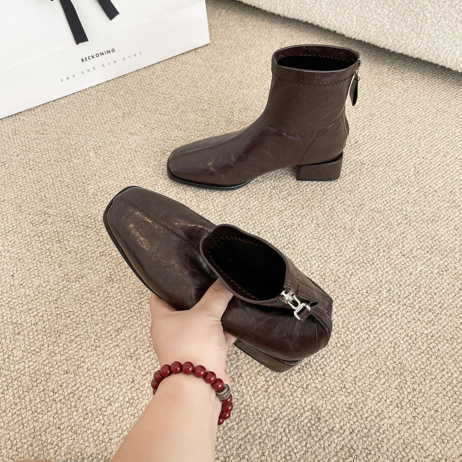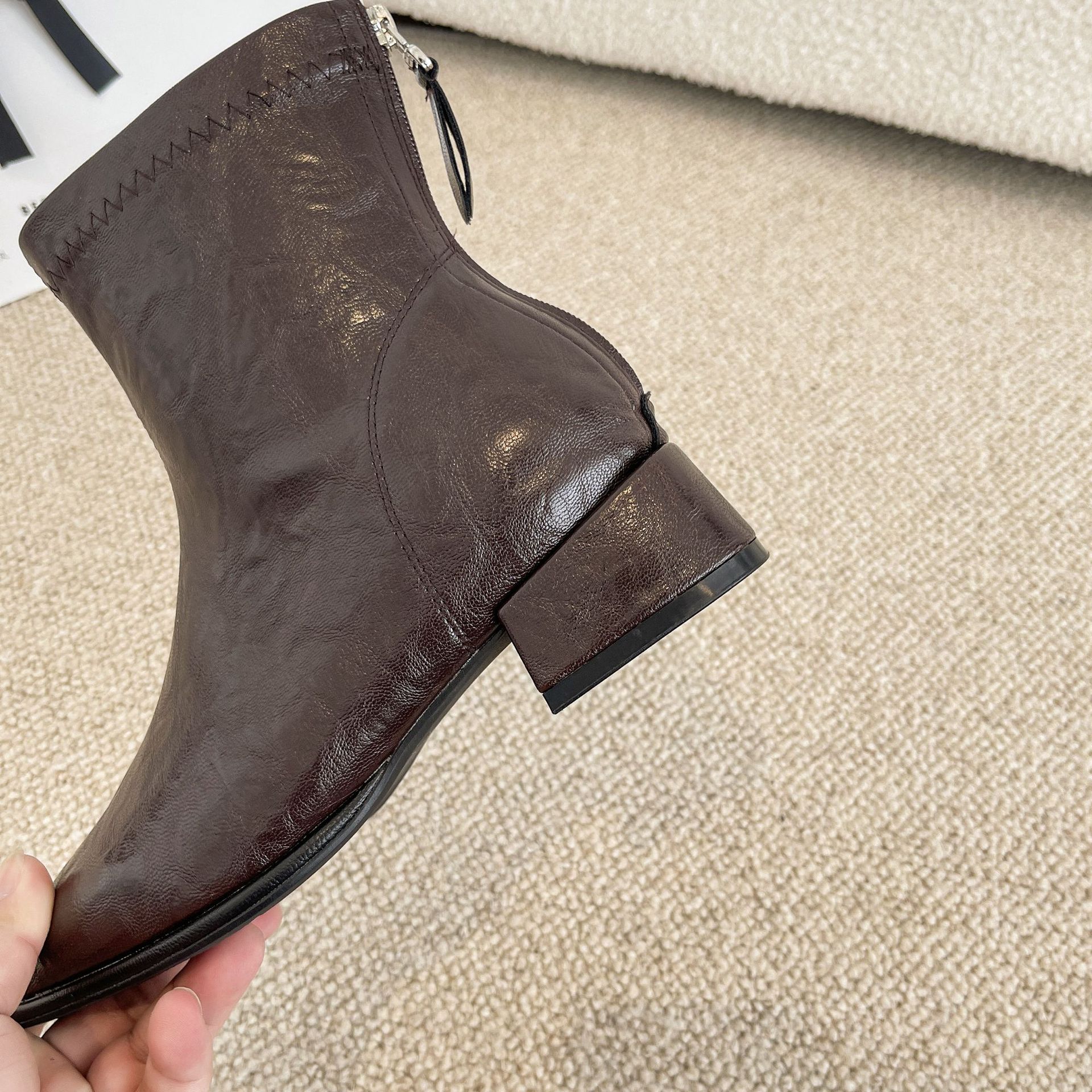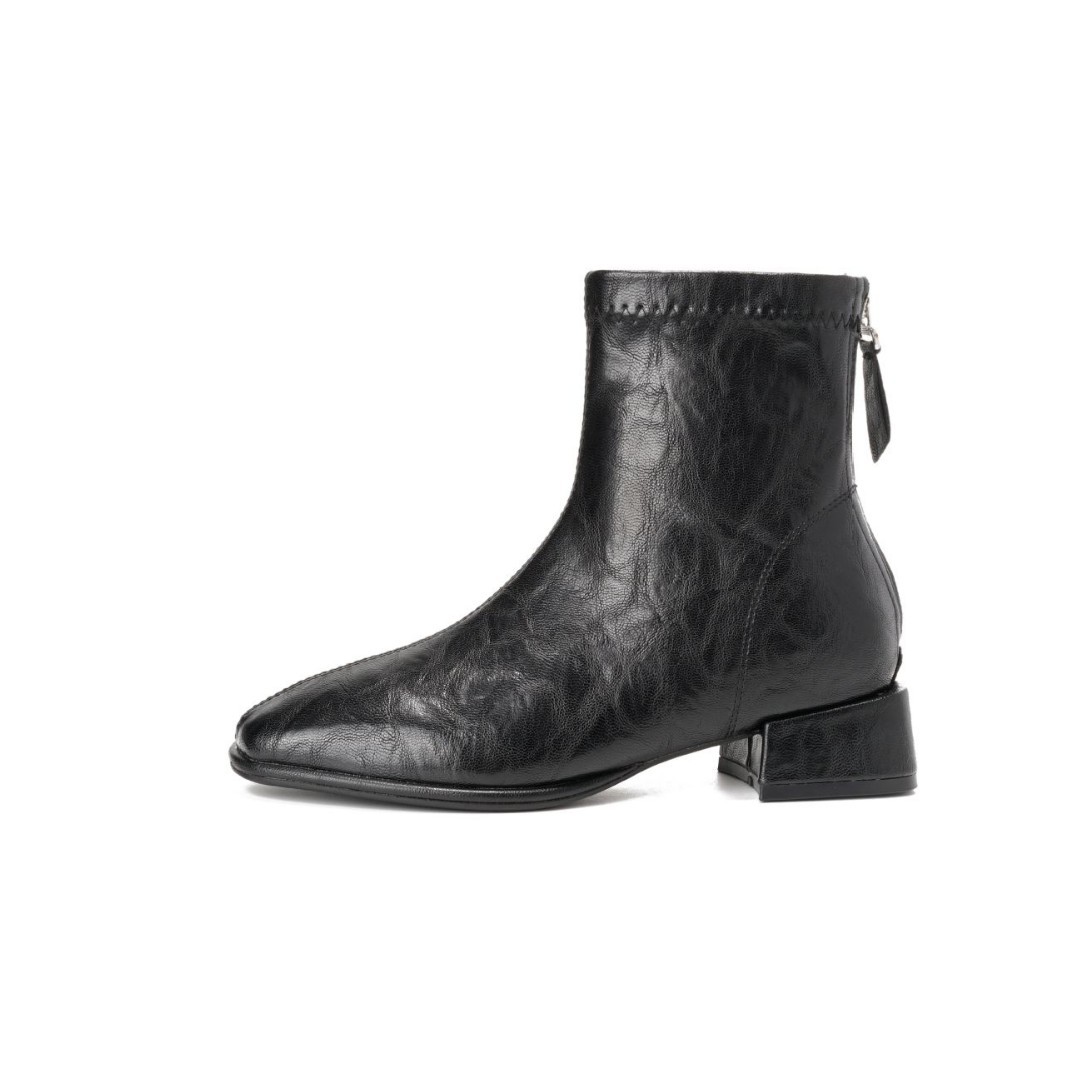 2024 가을과 겨울을위한 넓고 뚱뚱한 낮은 굽 마틴 부츠 새로운 스퀘어 헤드 두꺼운 힐 조커 여성용 핸드 헬드 플러스 사이즈 발목 부츠